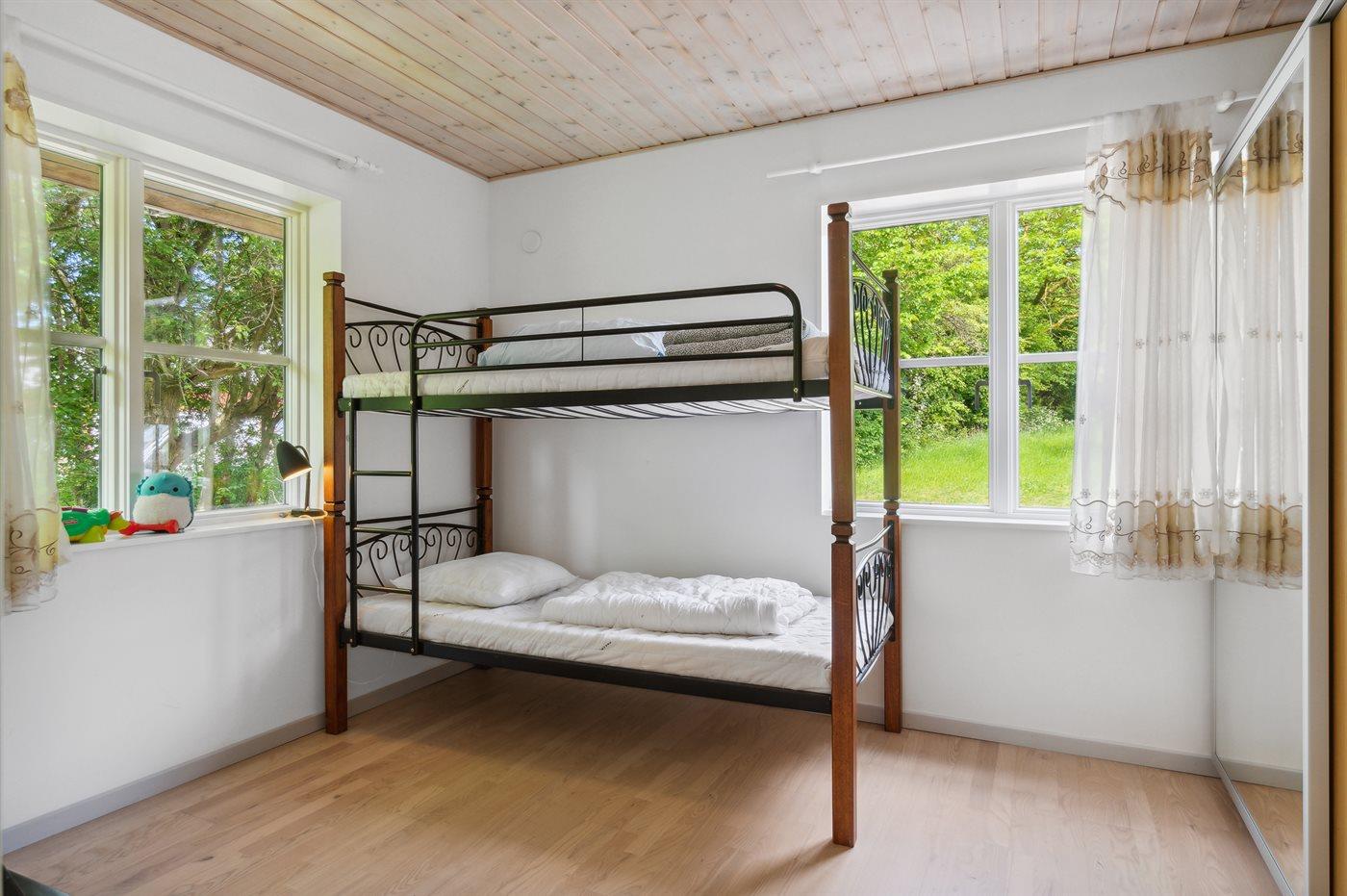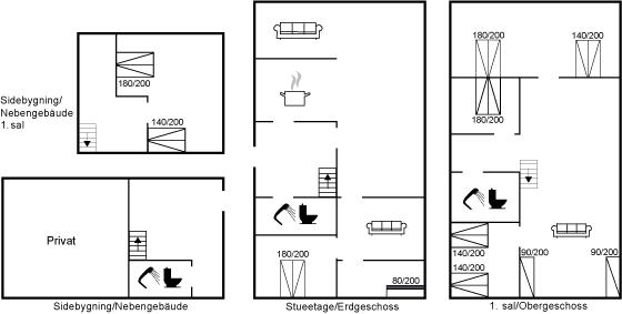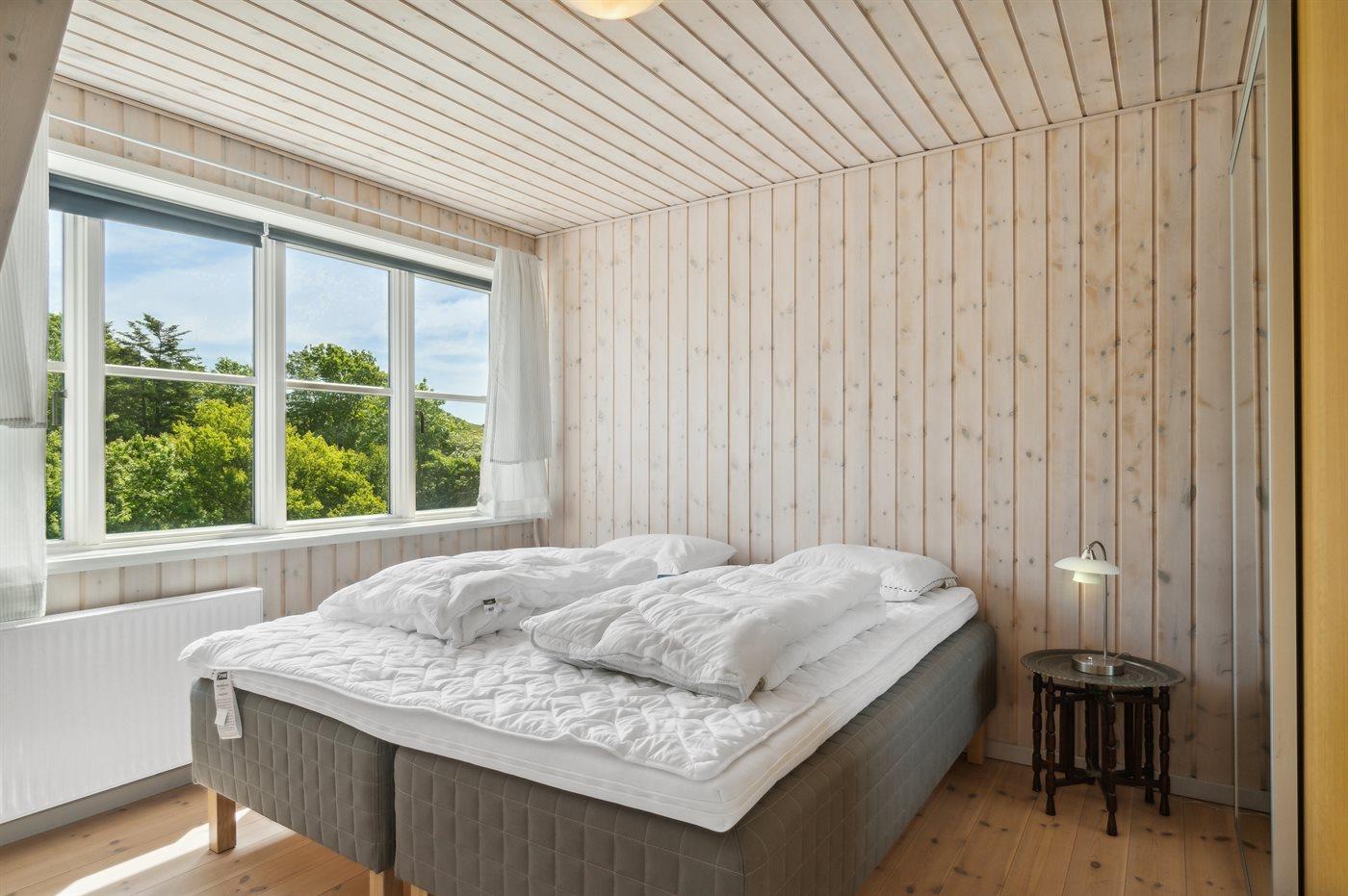 Der er i alt 6 soveværelser. Sovepladserne fordeler sig på: 16 sovepladser i dobbeltsenge. 2 sovepladser i køjeseng. Derudover er der 1 stk. barneseng.