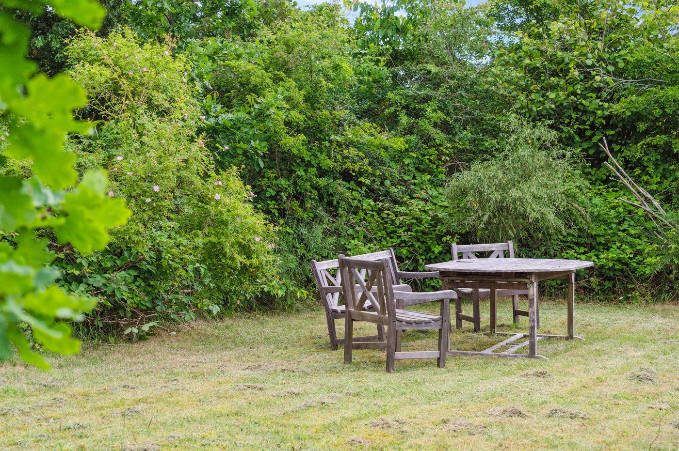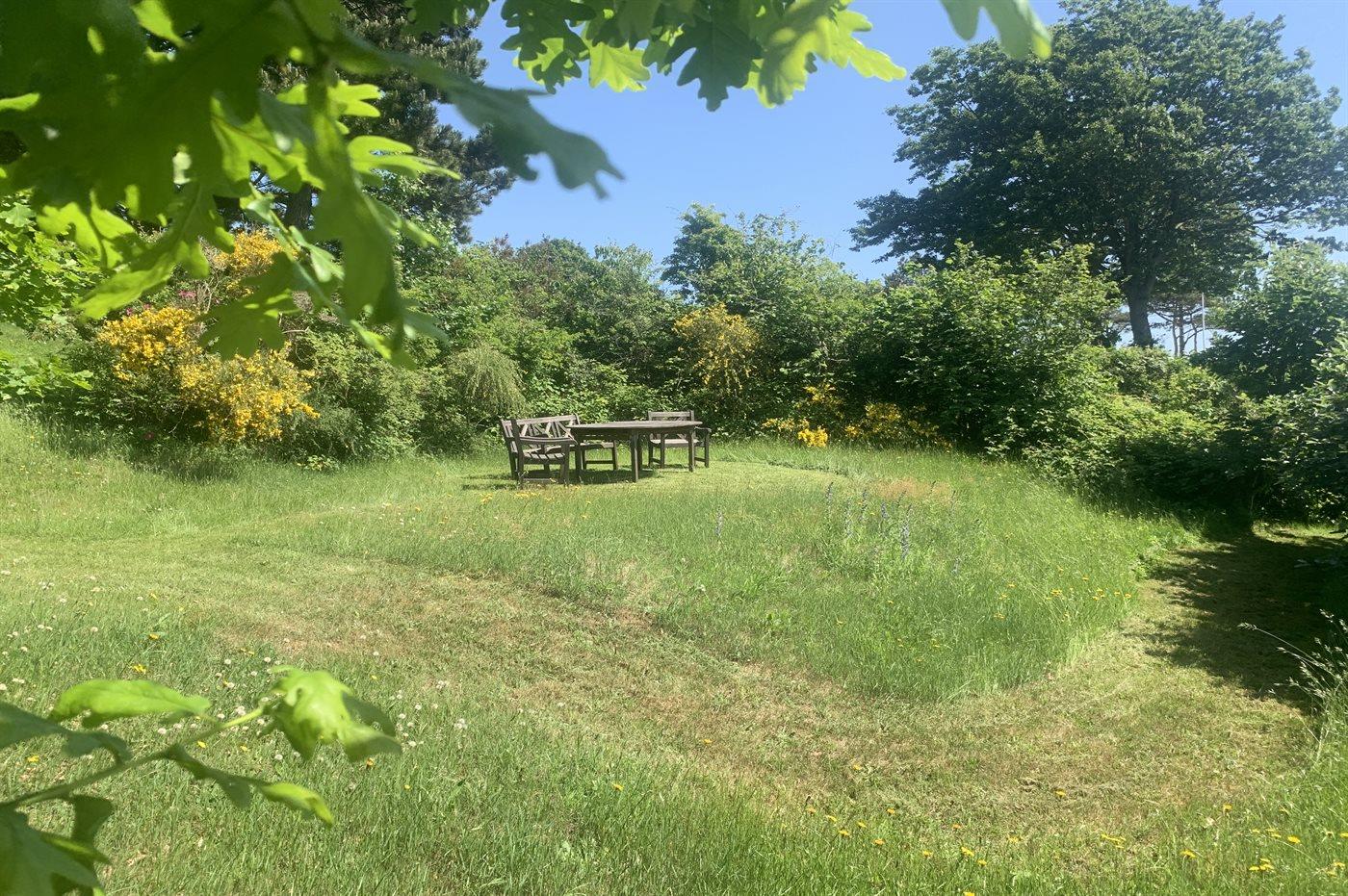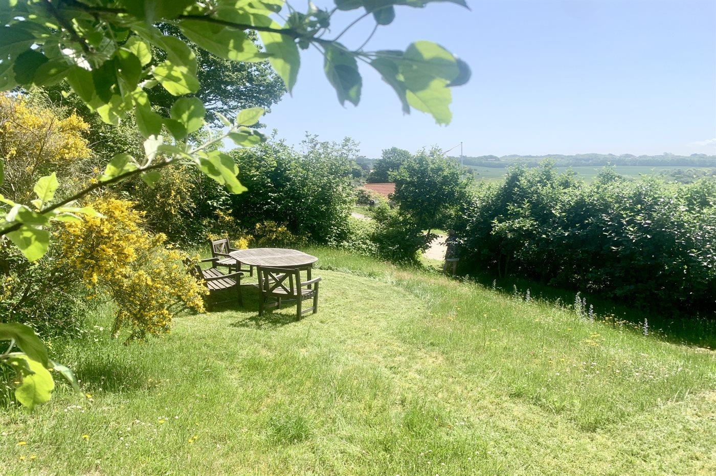 Charmerende sommerhus ved Helgenæs med havudsigt, bålplads og rolig naturgrund, perfekt til familieferie.
