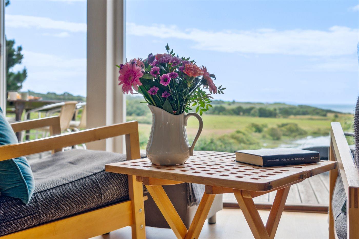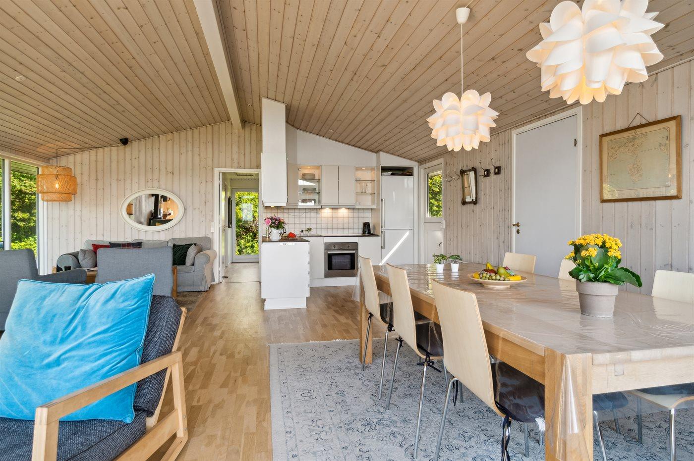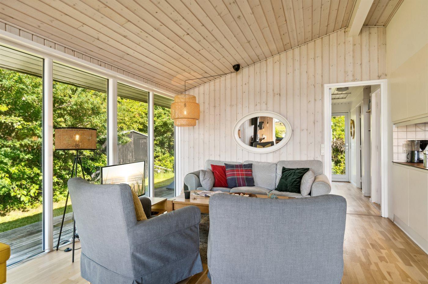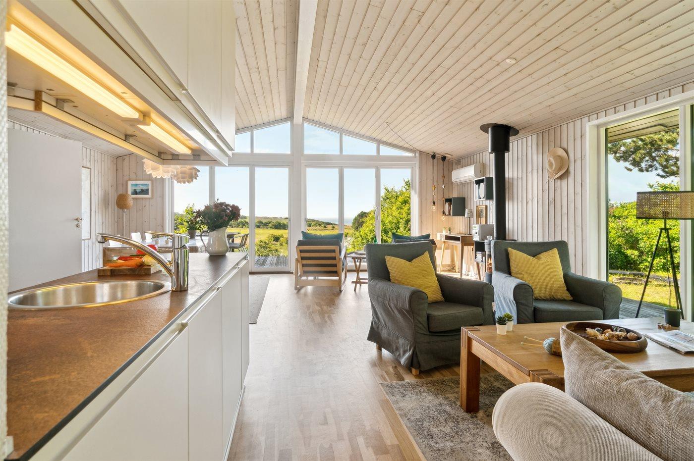 Sommerhuset er godt indrettet og fremstår med en fin planløsning, så det passer f.eks. til en børnefamilie eller en mindre familie med bedsteforældre. Her er også mulighed for at medbringe op til to kæledyr, så rammerne er helt oplagte til en god ferie. Husets hjerte er den dejlige og lyse stue med en ligeledes fin udsigt til havet, og der er direkte adgang til den skønne terrasse fra stuen.