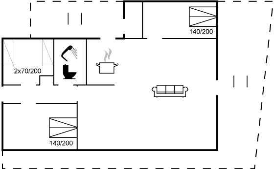 Der er i alt 3 soveværelser. Sovepladserne fordeler sig på: 4 sovepladser i dobbeltsenge. 2 sovepladser i enkeltsenge.