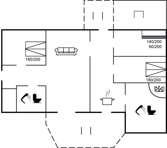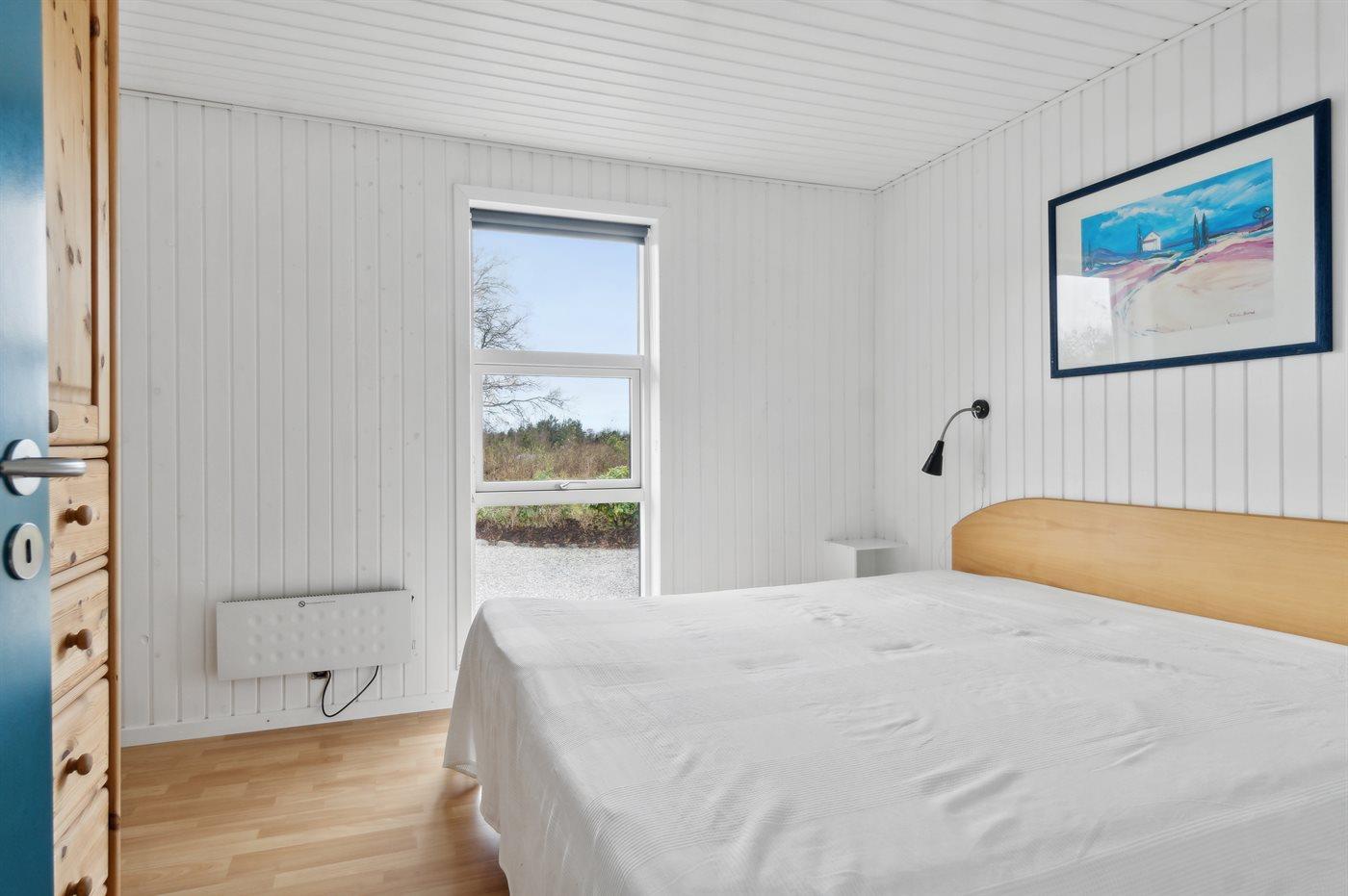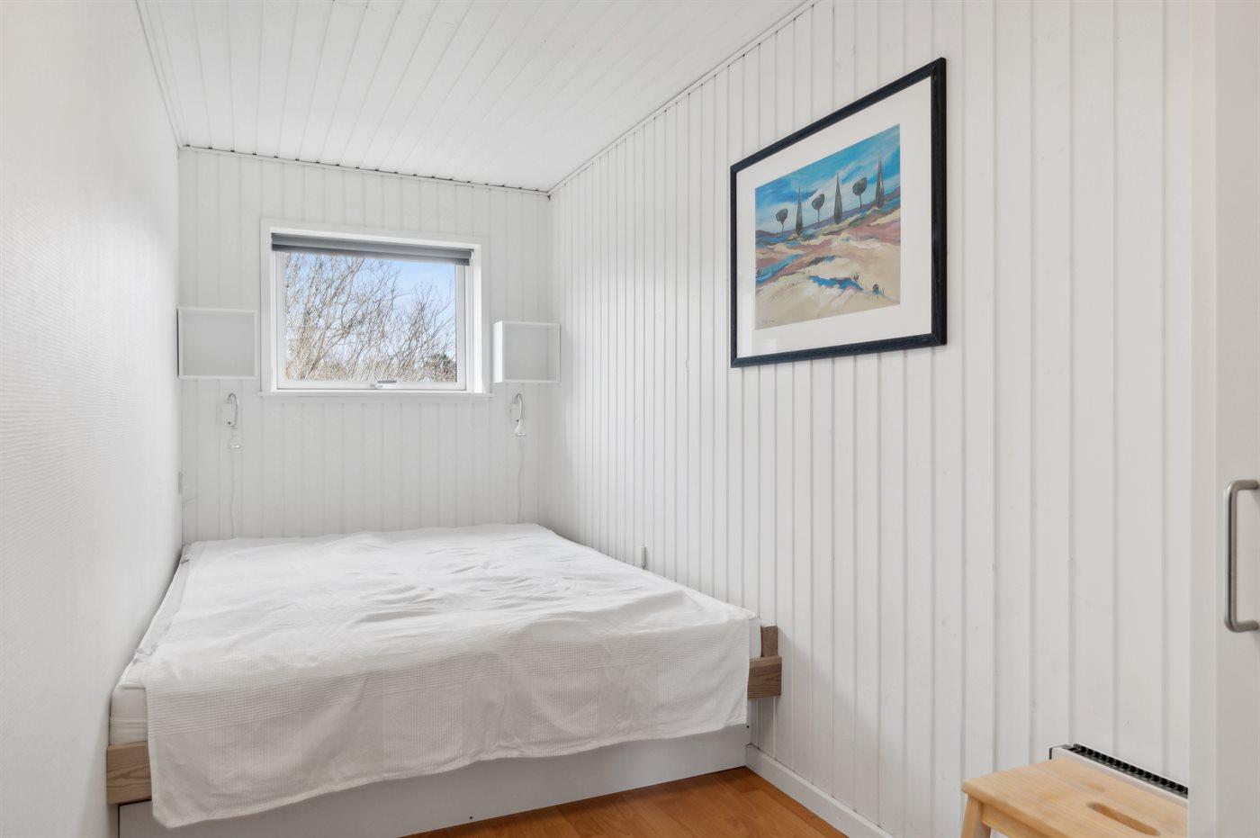 Der er i alt 3 soveværelser. Sovepladserne fordeler sig på: 4 sovepladser i dobbeltsenge. 3 sovepladser i køjesenge. Derudover er der 1 stk. barneseng.