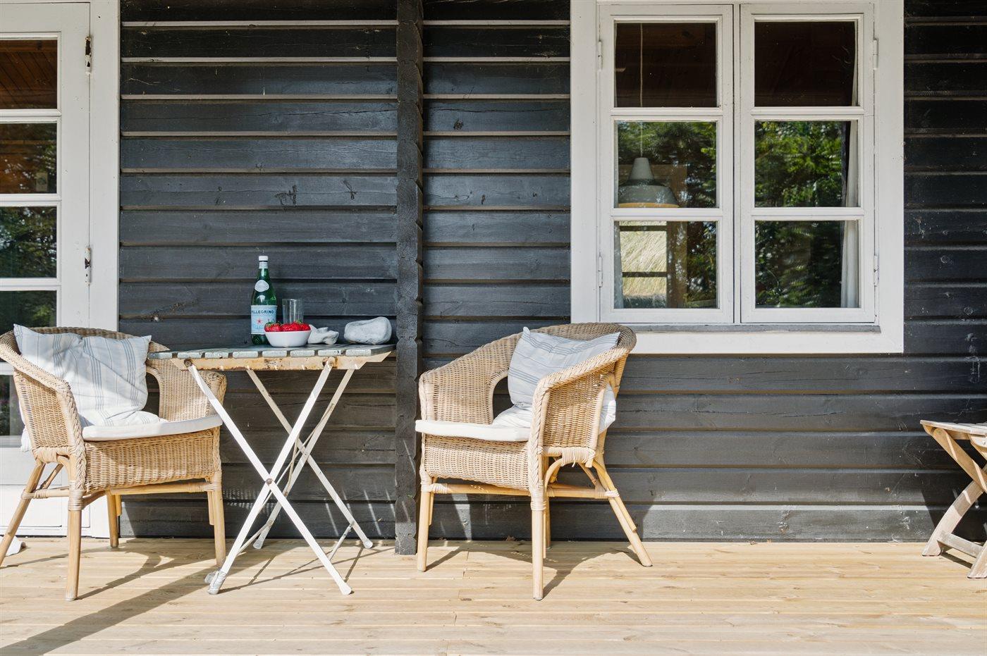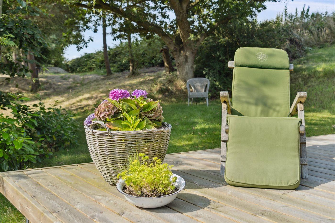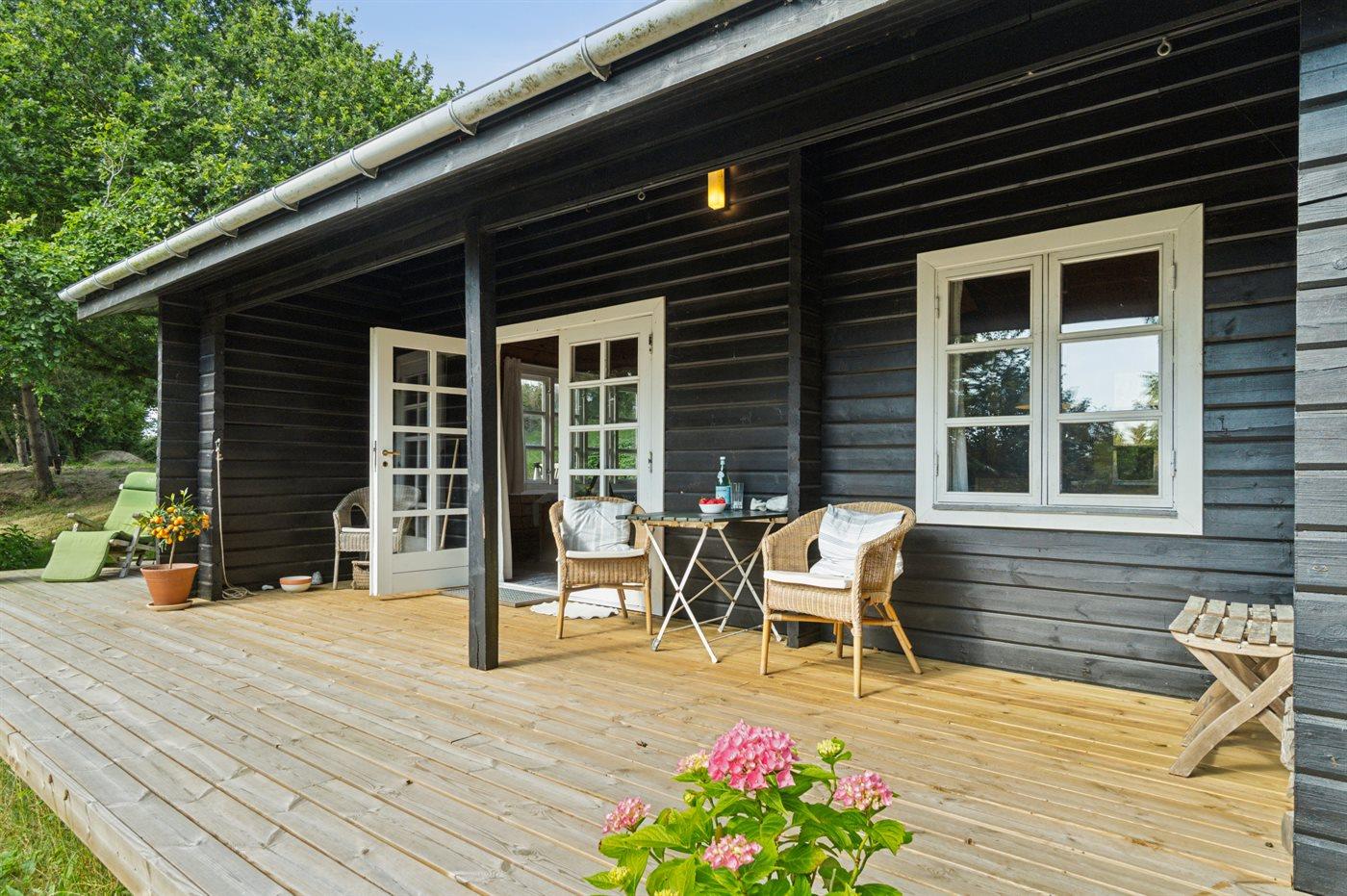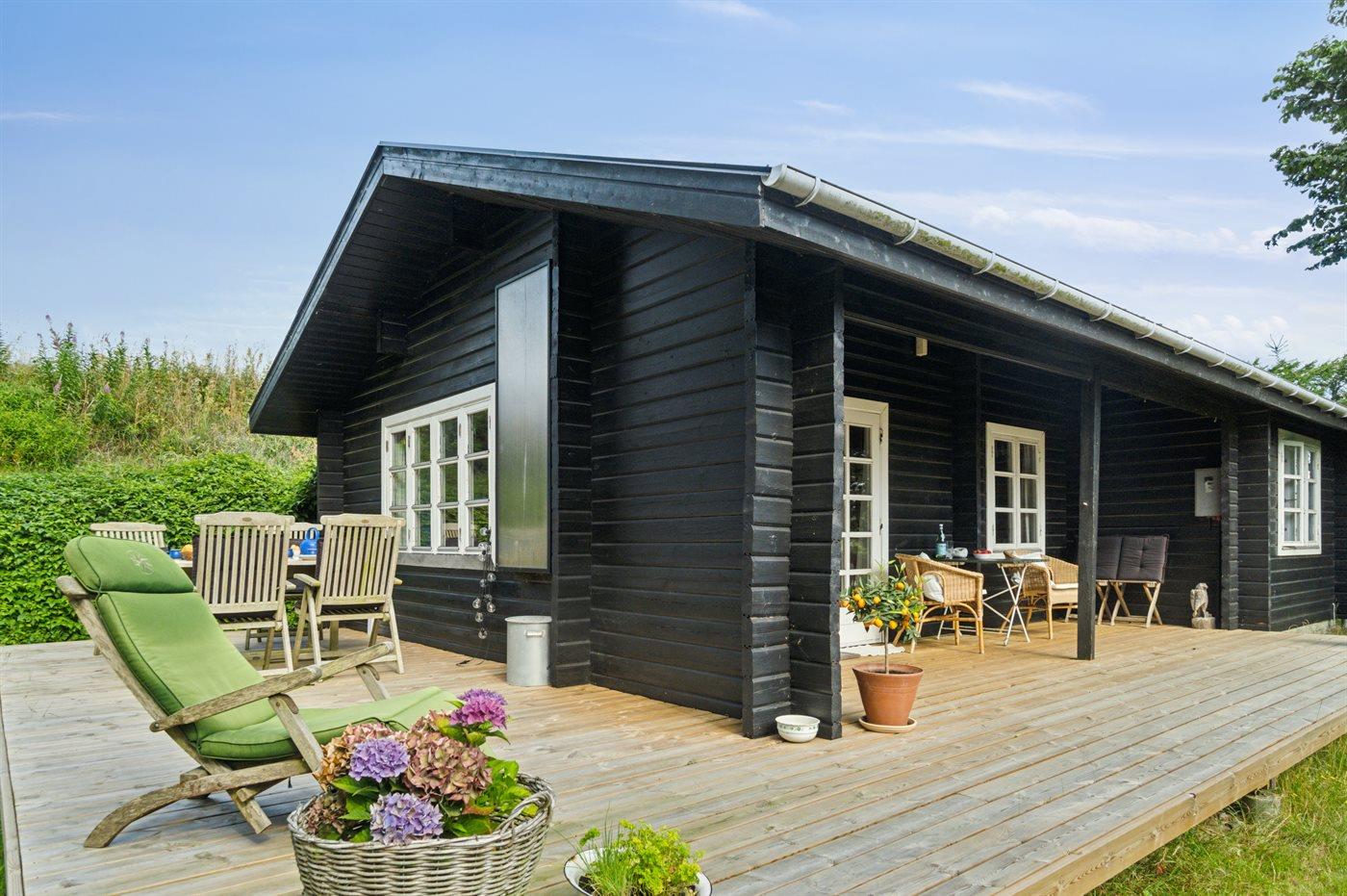 Hyggeligt træsommerhus på toppen af Helgenæs