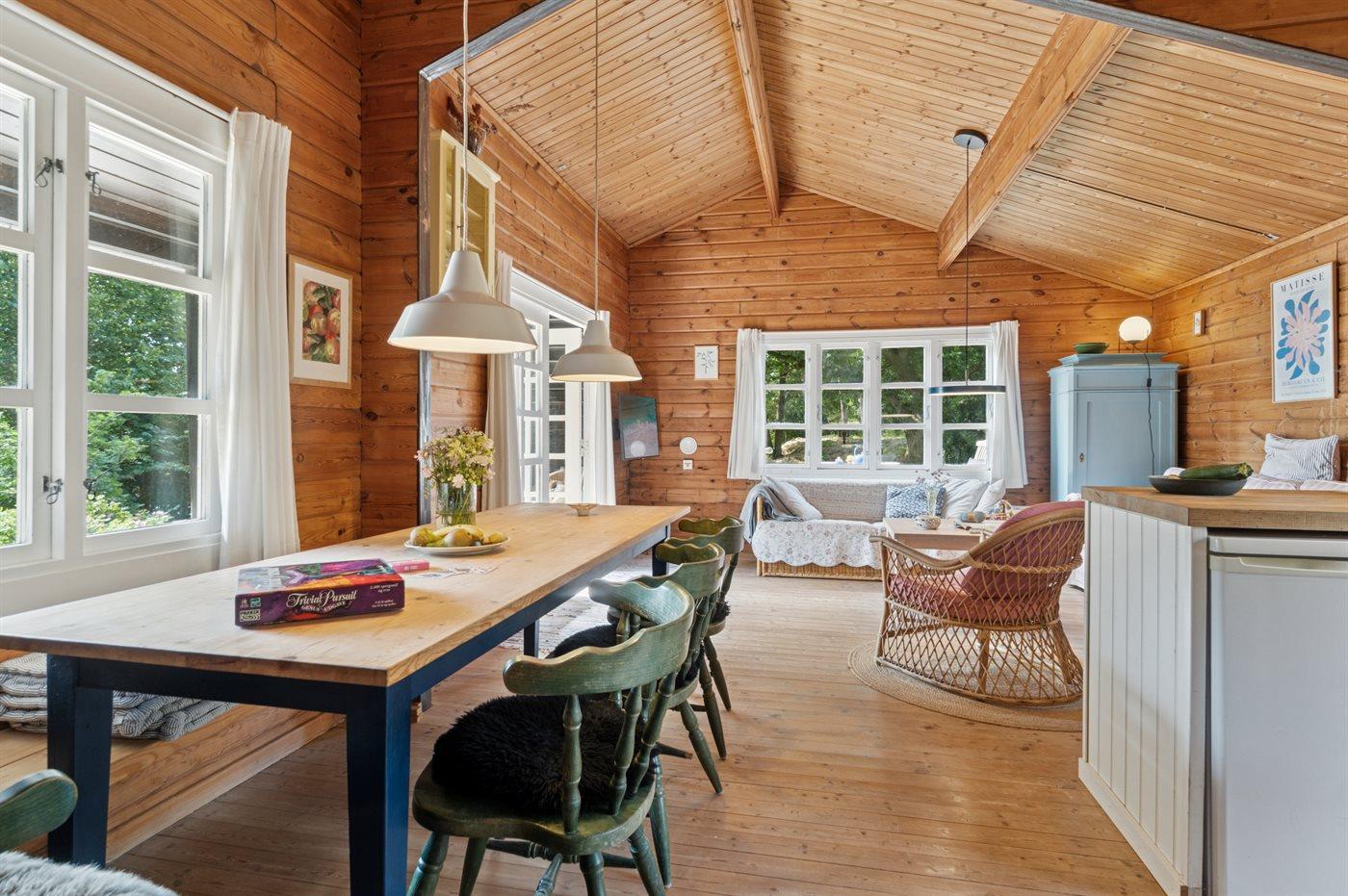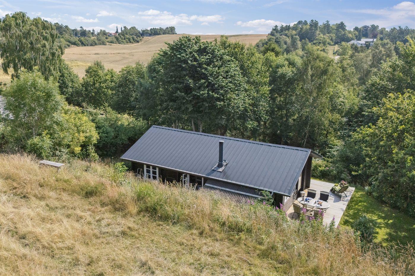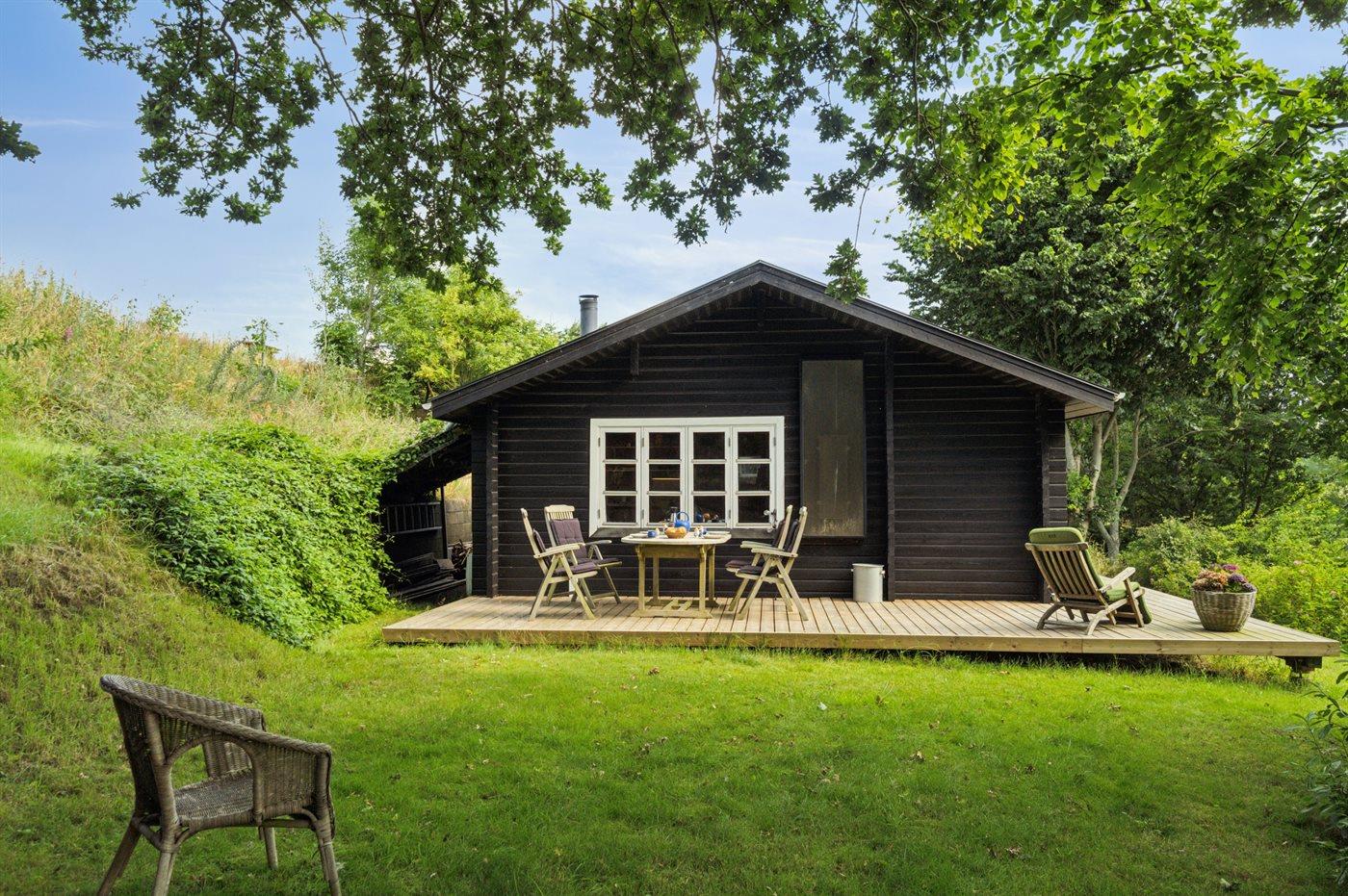 Hyggeligt træsommerhus med natur og havudsigt