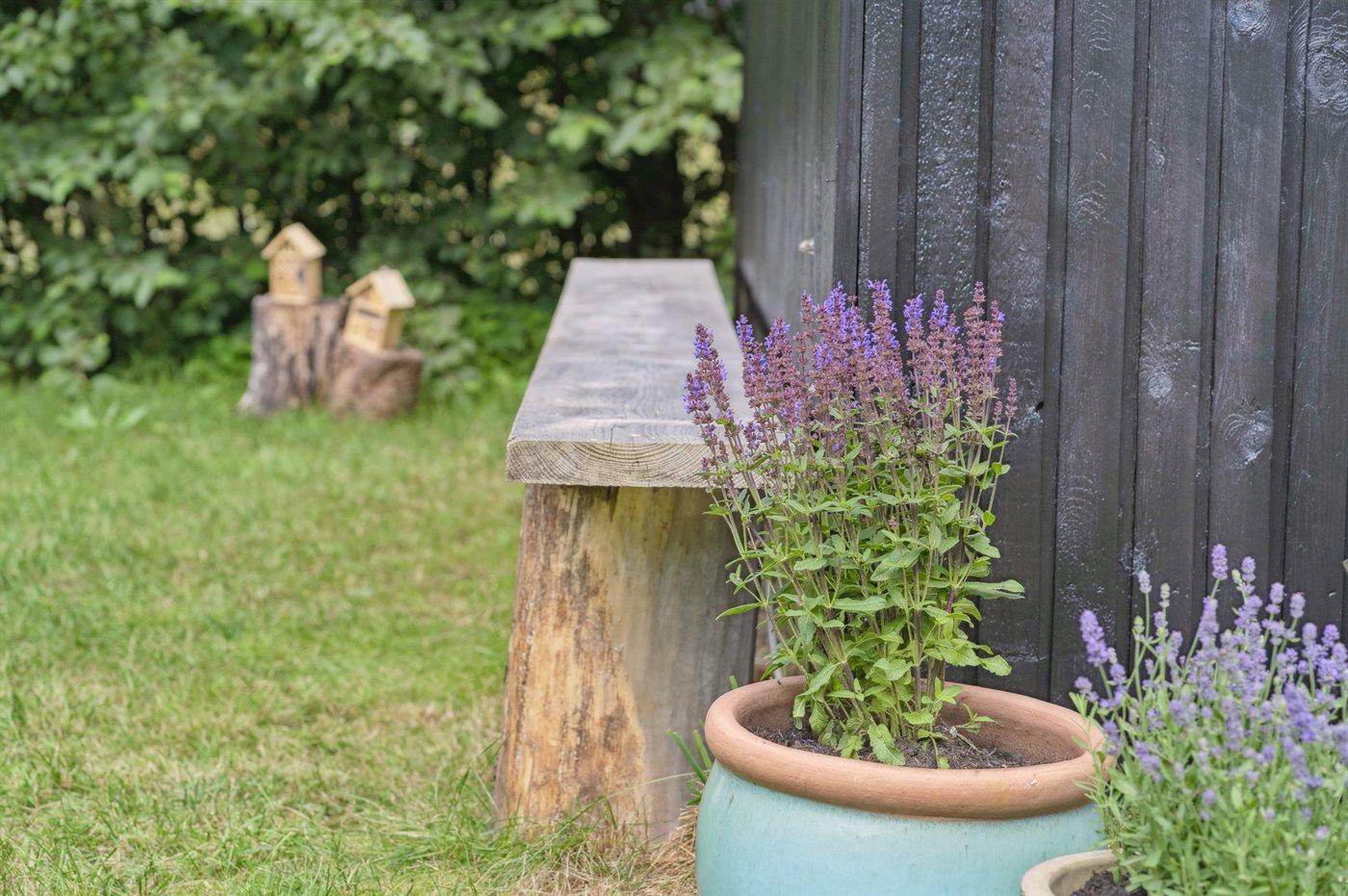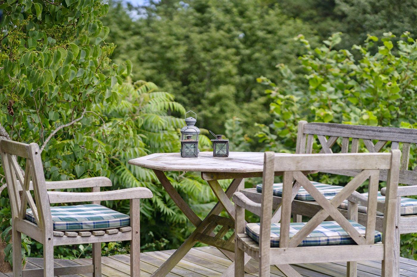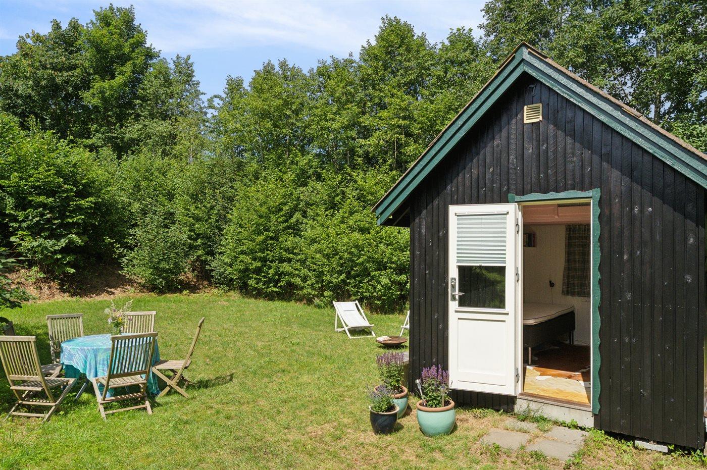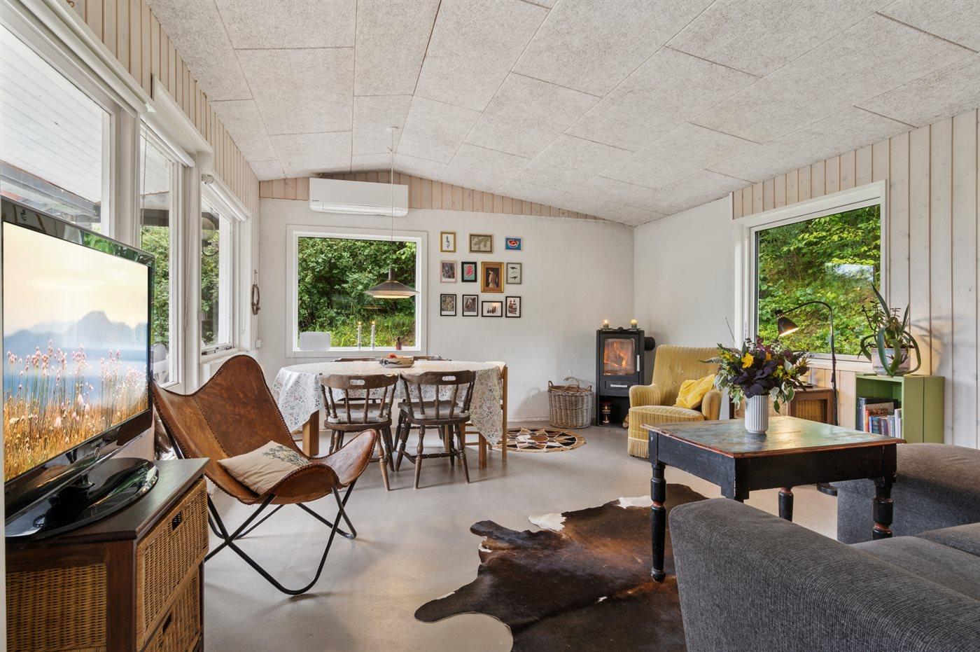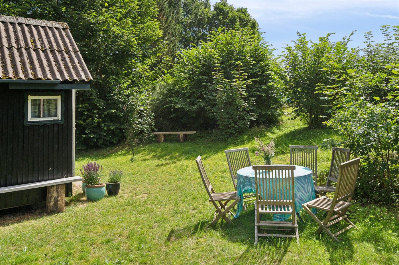 Hyggeligt sommerhus i naturskønne omgivelser på Helgenæs med bålsted, terrasse og tæt på havet.