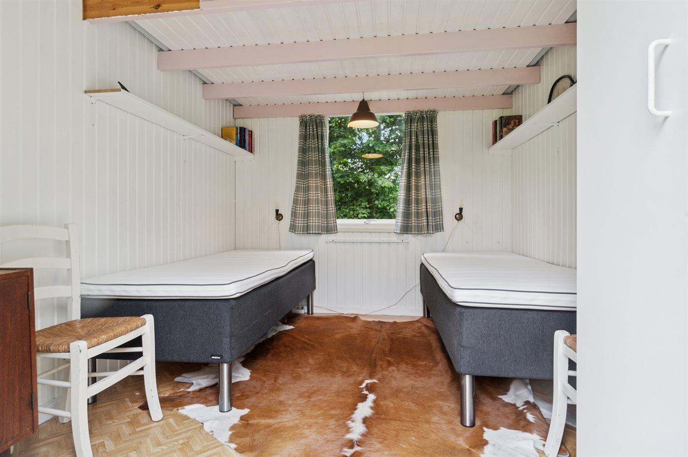 Der er i alt 3 soveværelser. Sovepladserne fordeler sig på: 4 sovepladser i dobbeltsenge. 2 sovepladser i enkeltsenge. 2 af disse sovepladser befinder sig i et anneks.