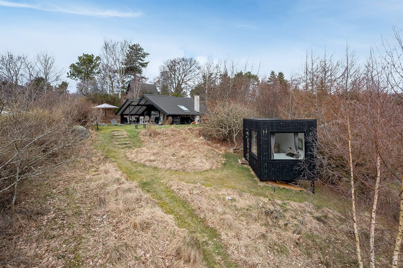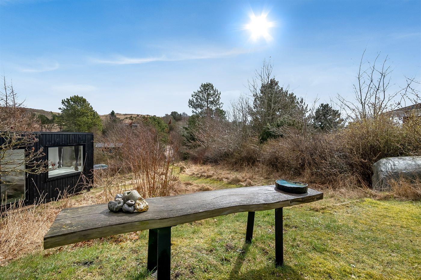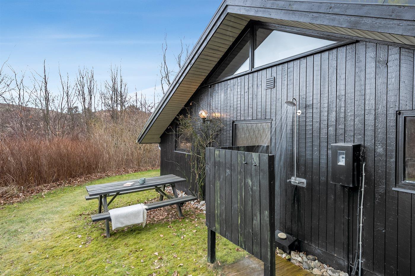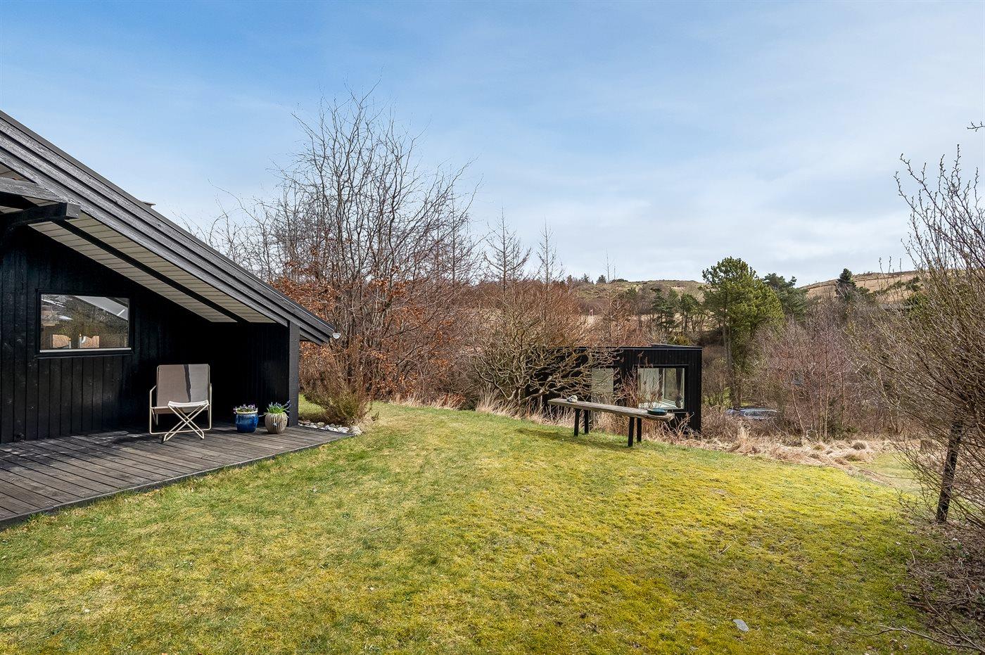 Ferieboligen er beliggende på en 1226 m² stor naturgrund. Der er 550 m til havet. Nærmeste forretning er beliggende i en afstand af 3500 m. Til ferieboligen hører åbent terrasseareal. Desuden er der overdækket terrasse. Bålsted. Udendørs bruser. Grill til rådighed. Parkering ved ferieboligen.