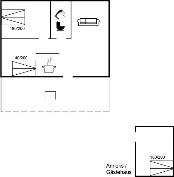 To af sovepladserne findes i et nyopført og velisoleret anneks, som giver en ekstra grad af komfort og privatliv. Derudover er der endnu et lille opholdsanneks, som giver gode muligheder for at trække sig tilbage med en bog eller for bare at nyde roen.