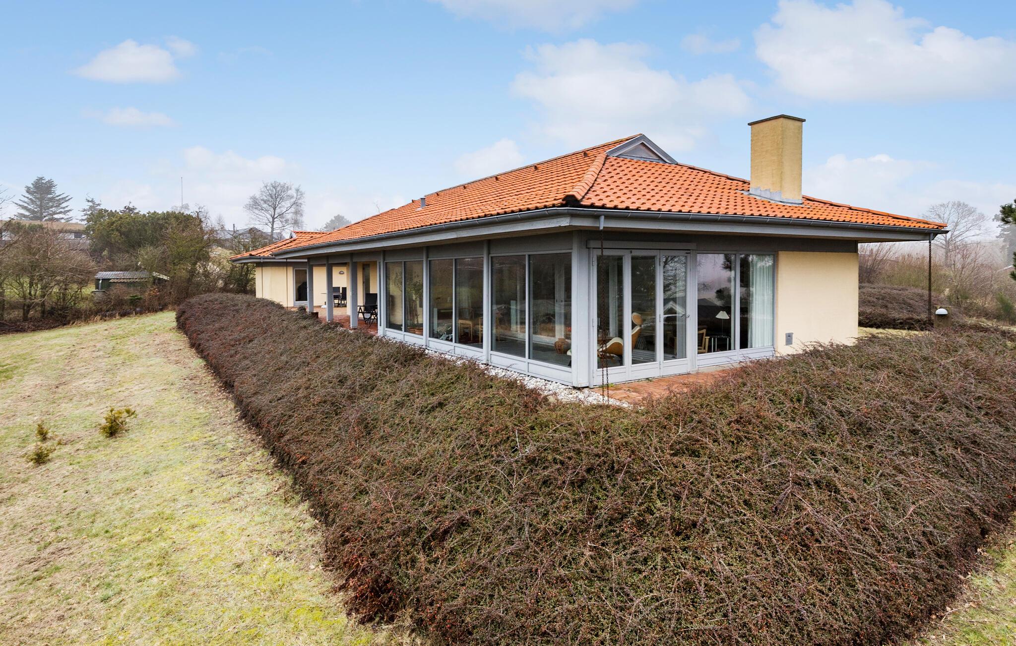 Stilfuldt feriehus på Helgenæs med havudsigt, sauna og stor terrasse med plads til afslapning.