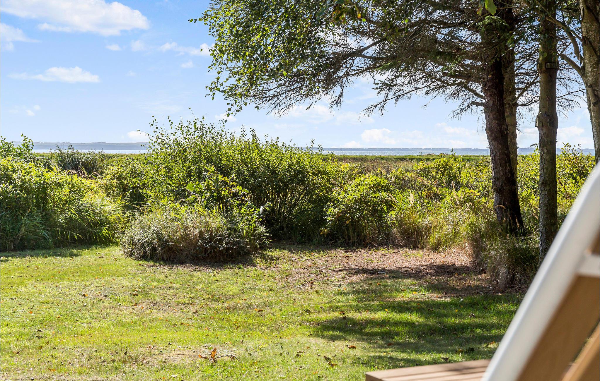 Hyggeligt træhus ved Helligsø Strand med panoramaudsigt over Limfjorden og skøn naturgrund.