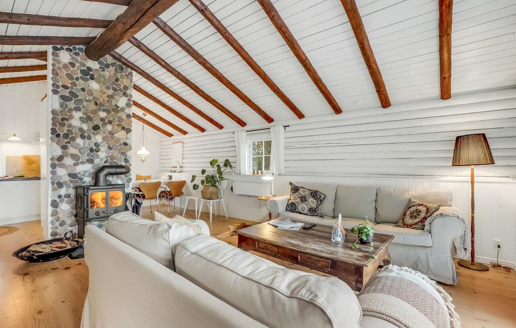 Dette charmerende træhus ligger i Helligsø Strand. Det er velegnet til en familie. Ved siden af hovedhuset er der endnu et soveværelse i annekset. Den lyse og åbne stue, som har en varm brændeovn i midten, indbyder til at se film sammen, spille spil eller svinge grydeskeerne i fællesskab. Den store træterrasse med udsigt over fjorden er et særligt godt sted til hvile og afslapning. Læg jer på liggestolene og læs en god bog eller se jeres børn lege i haven.