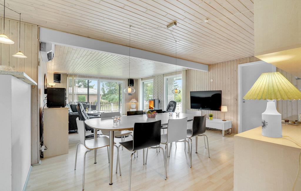 Huset er komfortabelt og attraktivt indrettet med skønne faciliteter til en vellykket ferie. Der er plads til otte personer fordelt på tre soveværelser. Her får I gode rammer om et ophold uanset årstid. Der er Chromecast i huset, så I kan streame fra jeres egne enheder og holde hyggelige filmaftener. Brændeovnen i stuen spreder behagelig varme og en hyggelig atmosfære.