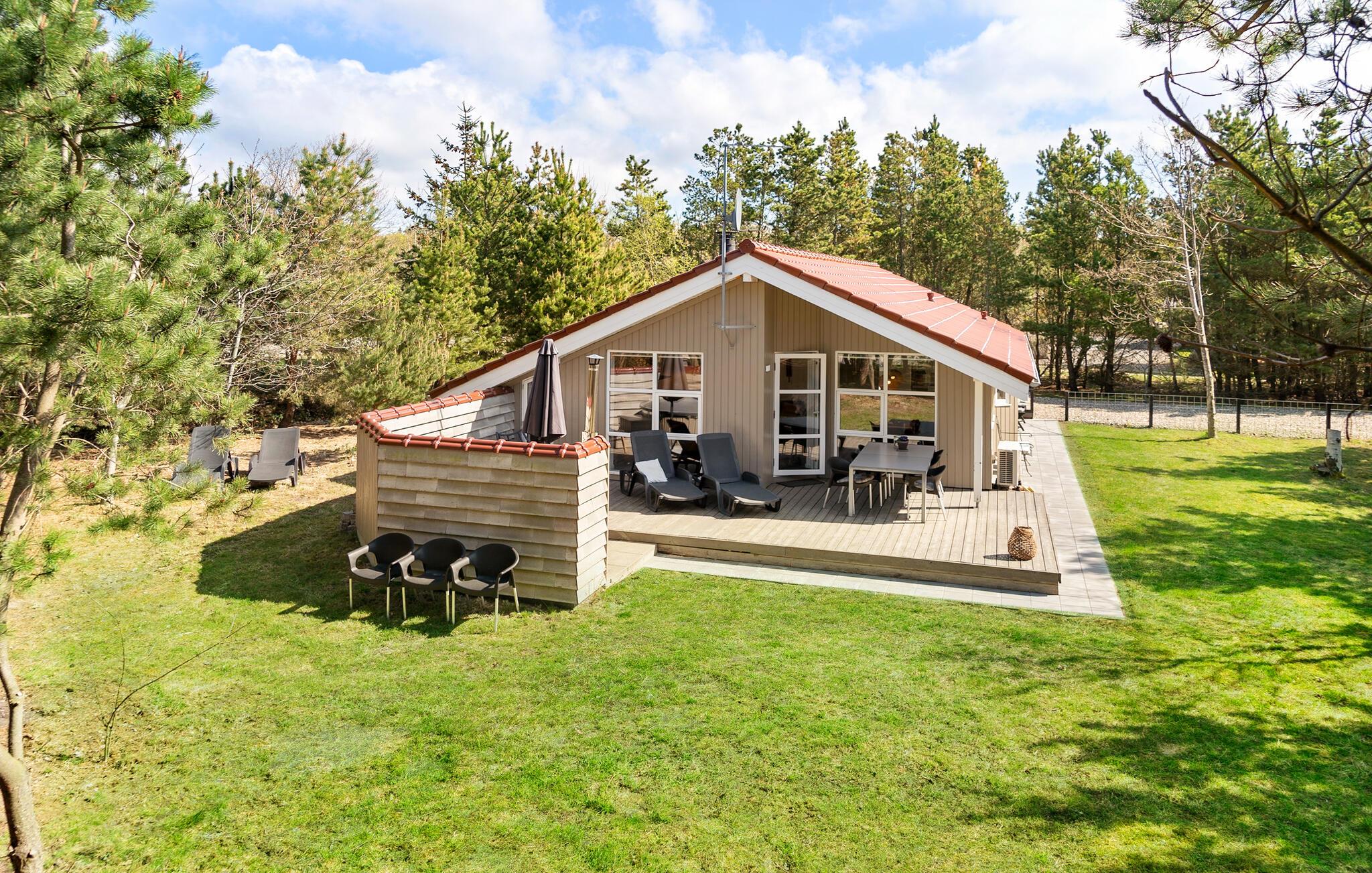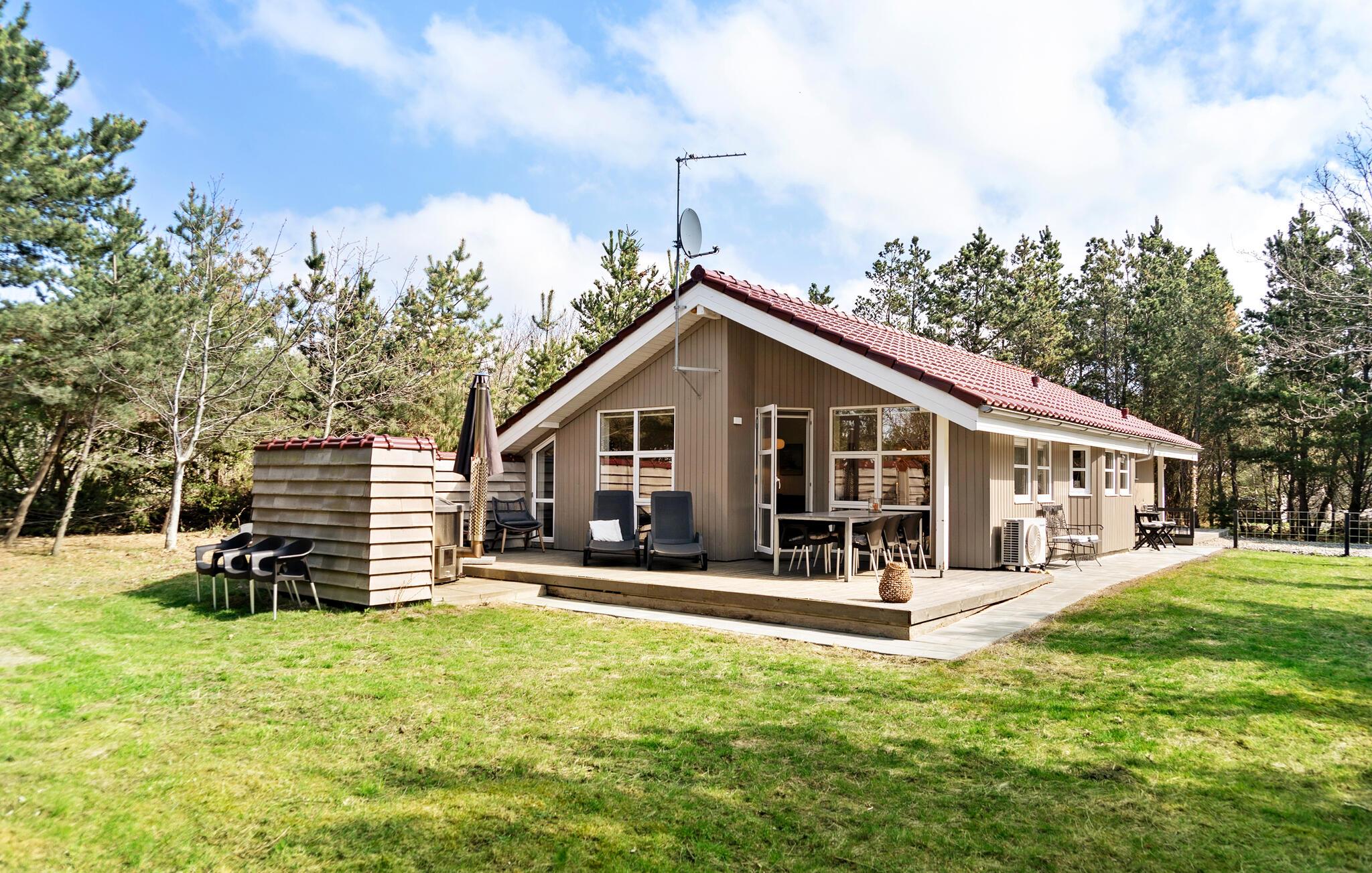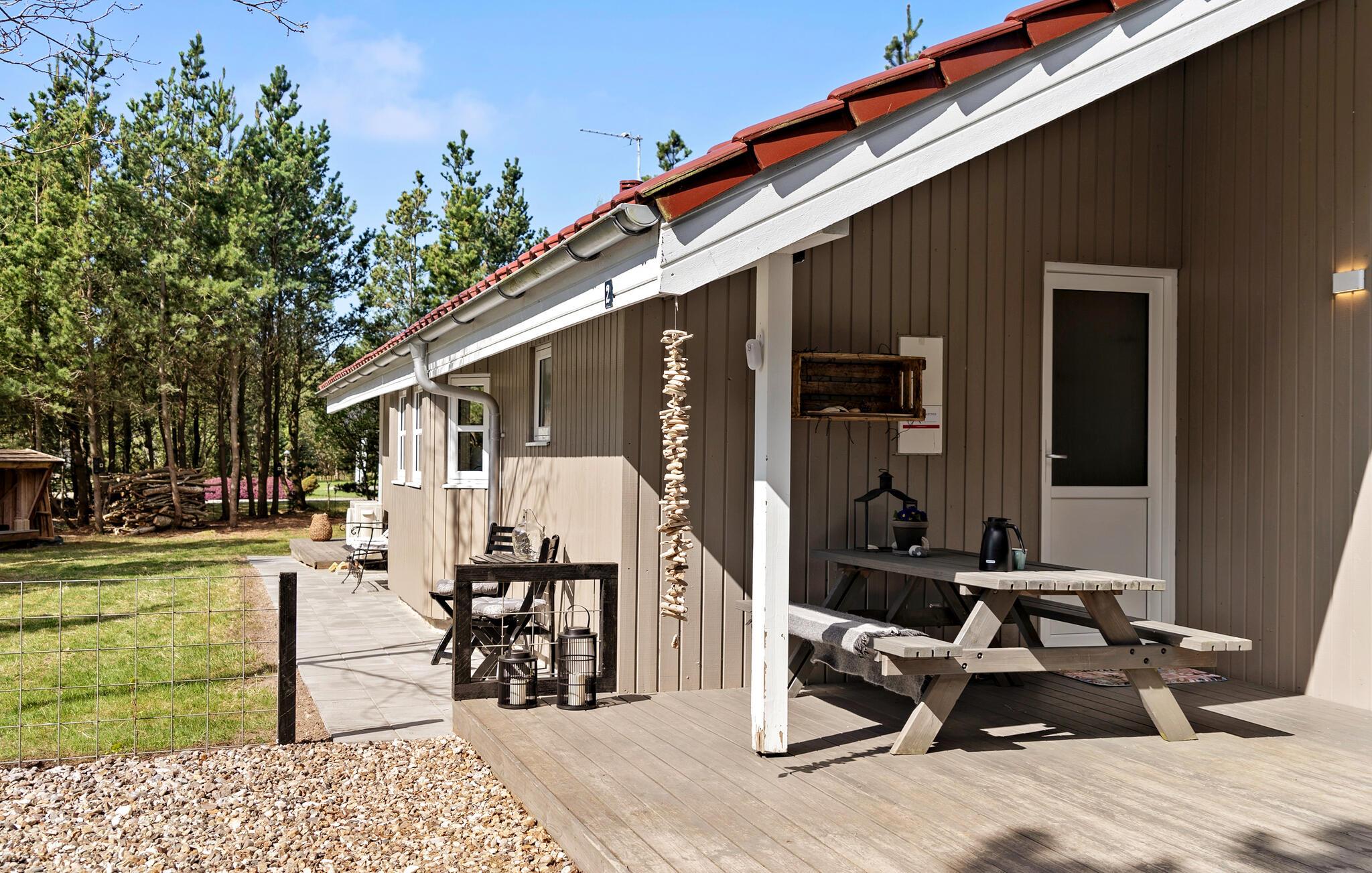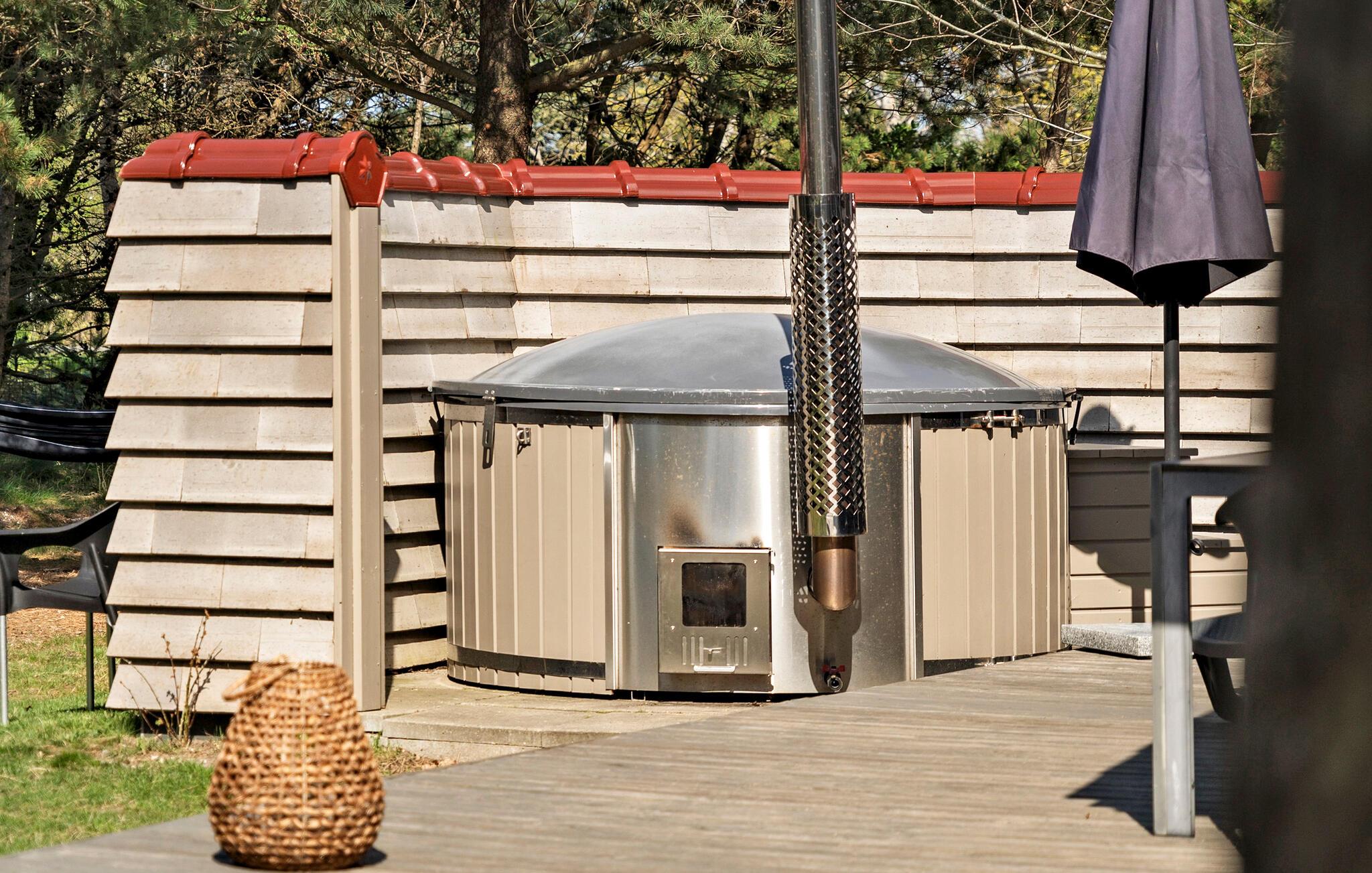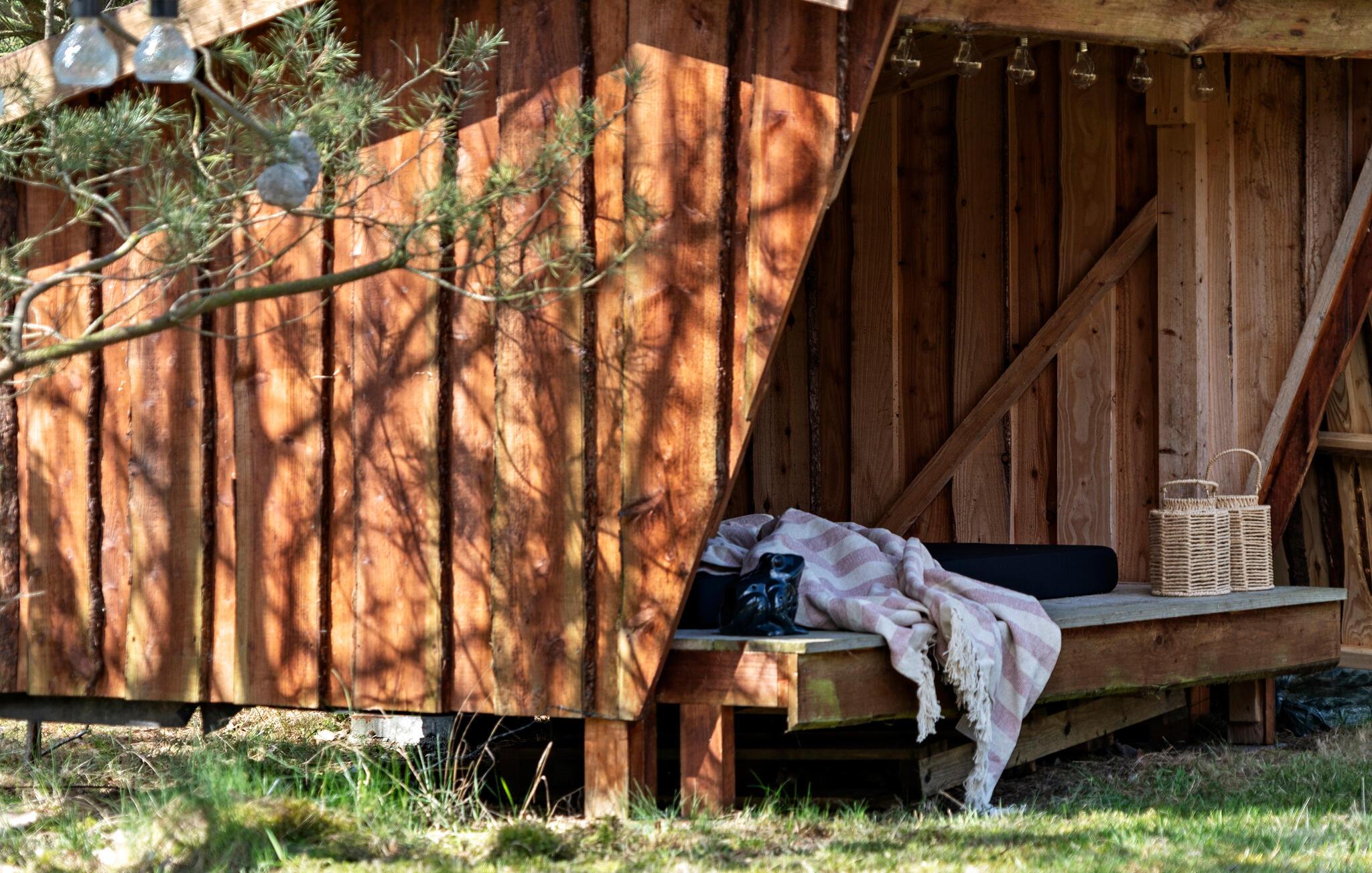 Gå ud på den delvist overdækkede terrasse og tilbring dagen, som I ønsker. Grill sammen, slap af i hængekøjen under træerne eller find på sjove tumlelege på græsplænen med jeres børn. Afslut aftenen i vildmarksbadet under åben himmel eller få varmen i den rustikke tøndesauna med udsigt over haven.