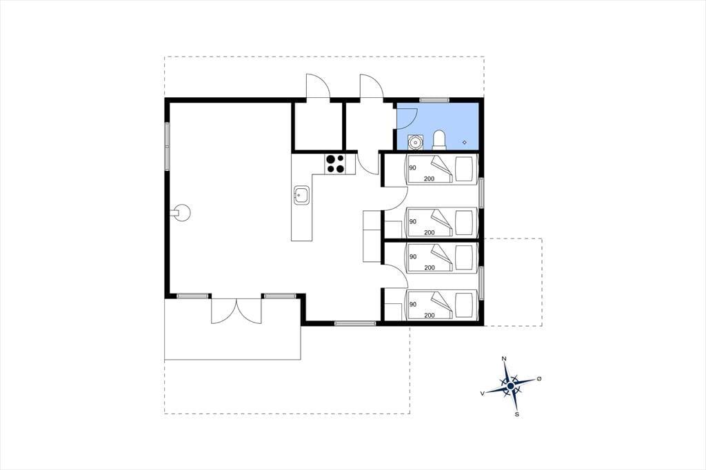 Sommerhuset er på 62 m2 og har en fornuftig planløsning til fire personer. Om natten kan I fordele jer på to soveværelser, der begge er udstyret med to enkeltsenge, og morgenbadet kan foregå på et pænt og enkelt badeværelse med bruseniche. Når I vil slappe af inden døre, kan I slå jer ned i stuen, der er indrettet med brændeovn, tv med parabol og komfortabelt møblement. Køkkenet er integreret med stuen, og uanset om I står og forbereder aftensmaden eller sidder samlet omkring spisebordet, kan I nyde udsigten til de smukke kystomgivelser.