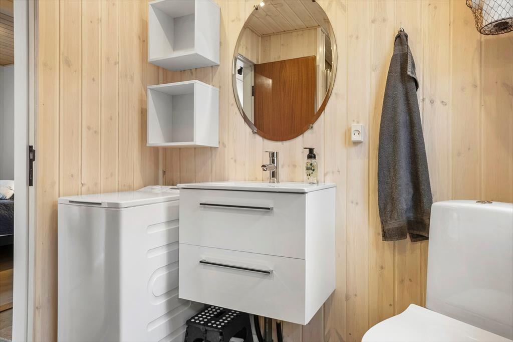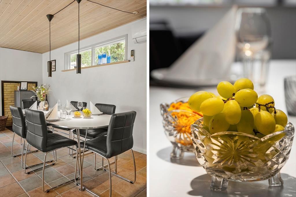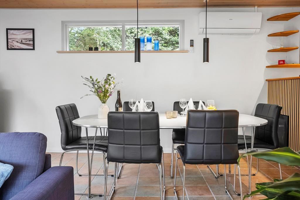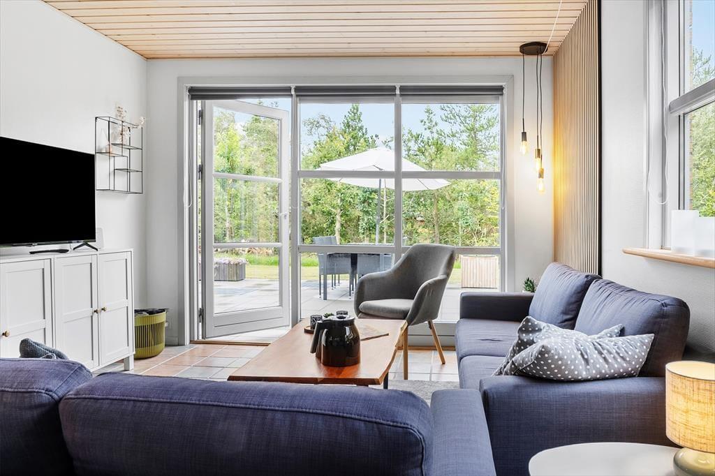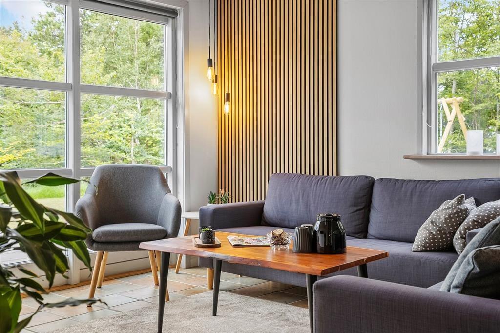 Sommerhuset er lyst, moderne og hyggeligt indrettet med en stemning, der indbyder til ro og nærvær. Køkken og stue ligger i åben forbindelse, så familien kan samles om madlavning, spil og hyggelige stunder, mens ilden knitrer i brændeovnen. På kølige dage er det netop brændeovnen, der sætter den helt rette feriestemning – tænk at kunne krybe sammen i sofaen med tæpper, en god film eller en spændende bog, mens varmen spreder sig i hele rummet. Husets indretning giver god plads til både voksne og børn, og I kan glæde jer til at vågne op til lyset, der strømmer ind gennem vinduerne, og starte dagen i et fredeligt tempo.