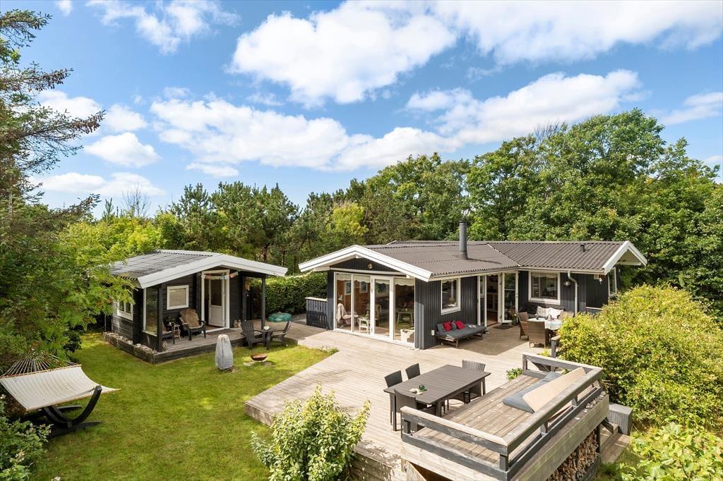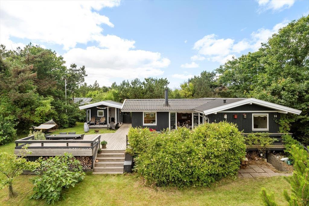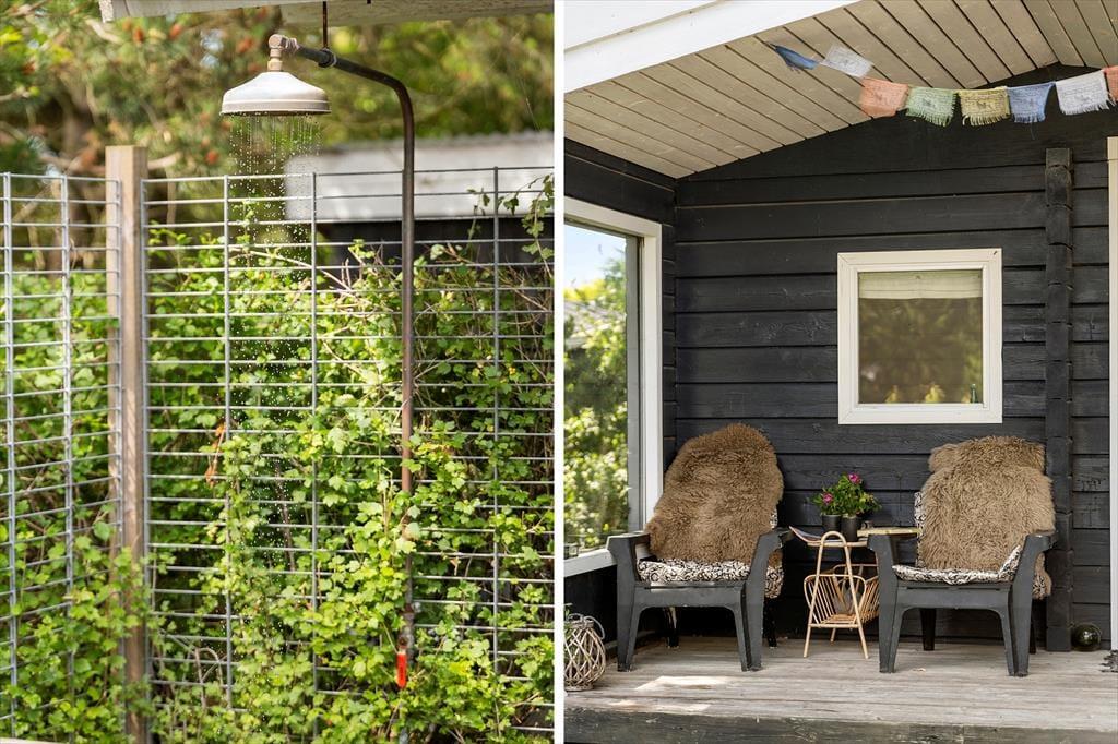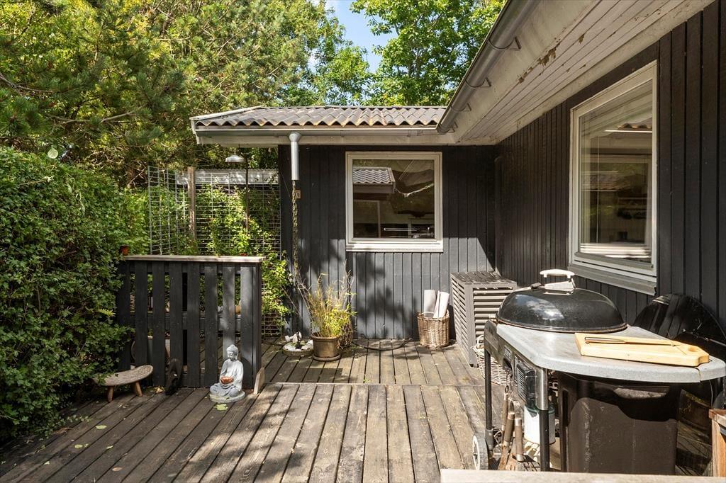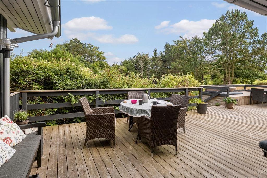 Udelivet har masser af plads at udfolde sig på her. Huset ligger på en dejlig grund med både græsplæne, have og en smuk udsigt over det åbne landskab. Den flotte terrasse bliver hurtigt samlingspunktet, når solen skinner – her kan du finde en god lækrog til eftermiddagskaffen eller dække op til aftensmad under åben himmel. Efter en dag ved stranden eller på opdagelse i området, kan du skylle sand og salt af dig under den udendørs bruser. Og når mørket falder på, er det oplagt at tænde op i bålstedet og lade flammerne danne ramme om snobrød, fortællinger og fælles ferieminder. Her er kort sagt lagt op til mange dejlige stunder under åben himmel.
