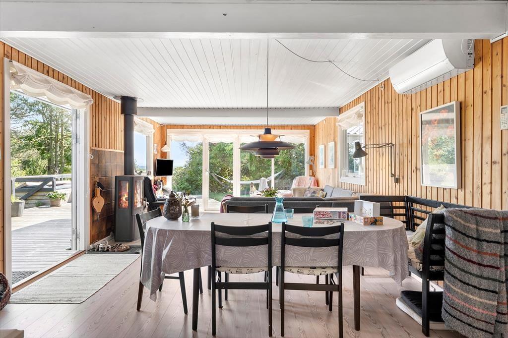 Dette dejlige sommerhus på Fjordternevej 10 i Helligsø Drag er et perfekt valg, hvis du drømmer om en ferie, hvor naturen, hyggen og de nære stunder er i centrum. Her bor du tæt på både hav og fjord – og i et roligt område, hvor der ikke er langt til hverken indkøb eller oplevelser i naturen. Fra huset og haven er der kig til det omkringliggende landskab, og med brændeovn, udebruser, bålsted og en flot terrasse får du de helt rigtige rammer til at nyde en afslappet ferie – med eller uden hund.
