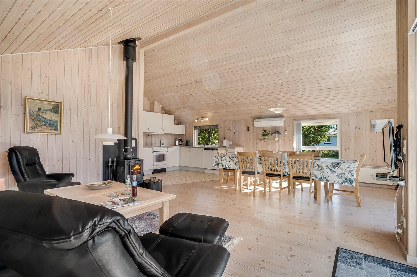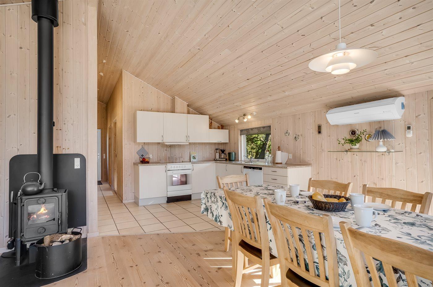 Sommerhuset egner sig til 6 personer. Ferieboligen er på 86 m² og er bygget i 2005. Det er tilladt at medbringe 2 husdyr. Ferieboligen er udstyret med energibesparende luft til luft varmepumpe. Der er gulvvarme i alle klinkegulve. Ferieboligen har vaskemaskine. Tørretumbler. Frysekapacitet på 20 liter. Der er desuden brændeovn.