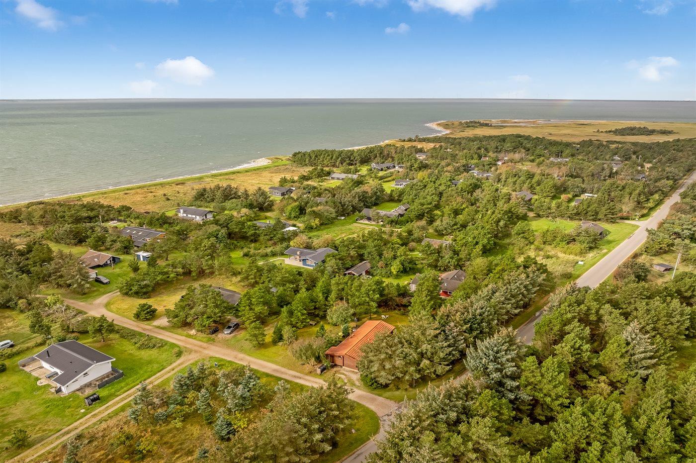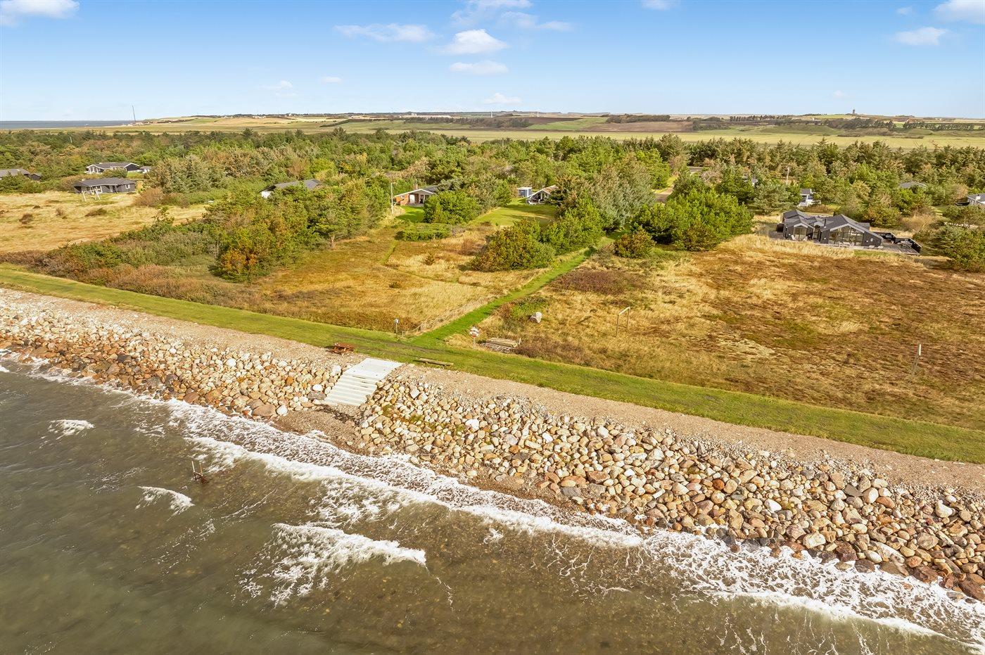 Ferieboligen er beliggende på en 1243 m² stor naturgrund. Der er 200 m til fjorden. Nærmeste forretning er beliggende i en afstand af 10000 m. Der er en golfbane i en afstand af 10000 m. Til ferieboligen hører åbent terrasseareal. Grill til rådighed. Parkering ved ferieboligen.