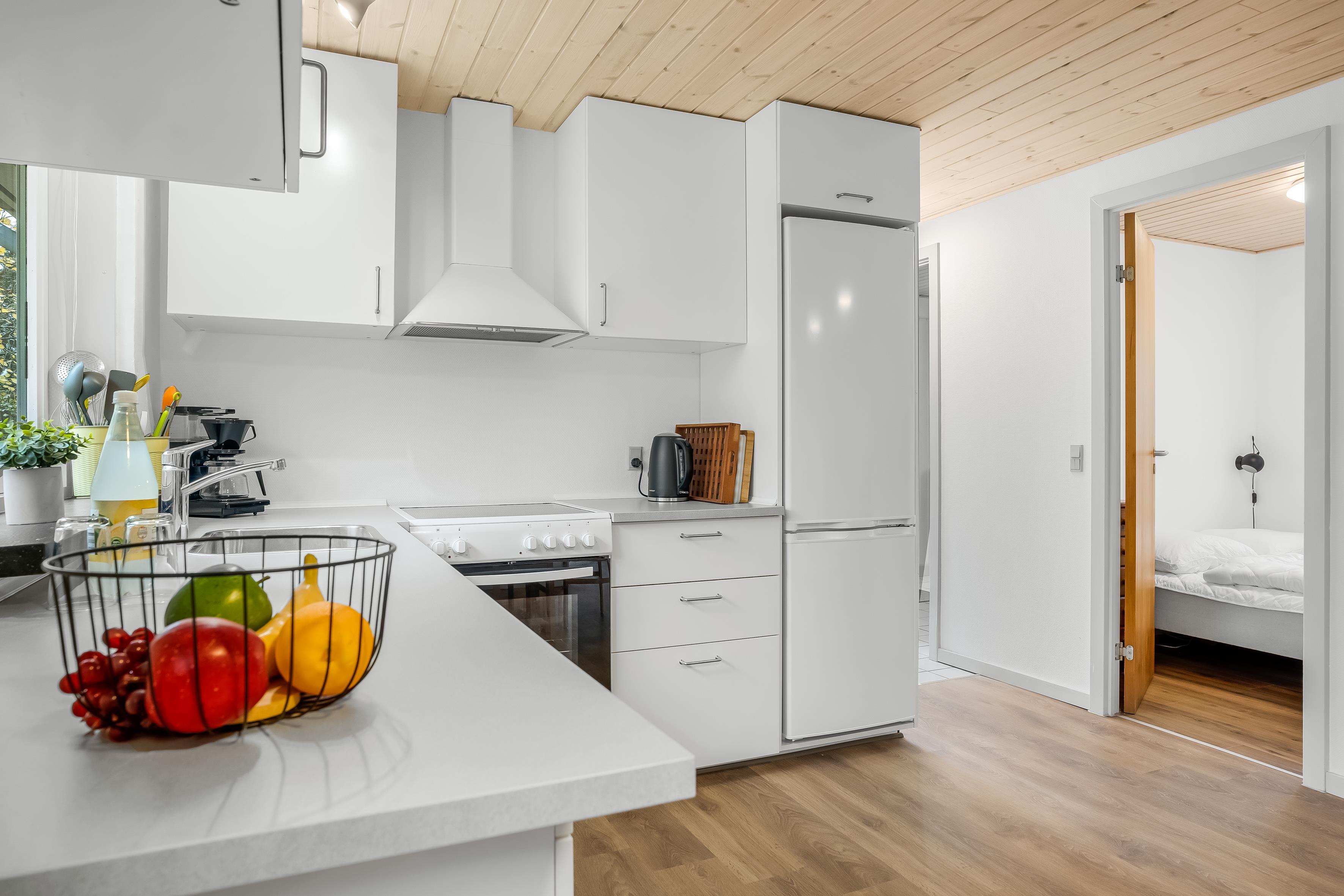 For dem, der elsker at tilberede mad, er køkkenet udstyret med moderne faciliteter, herunder en ovn, mikrobølgeovn, keramisk komfur, opvaskemaskine, og et stort køleskab med fryser på 30 liter. Kaffemaskinen er også klar til at brygge din yndlingskaffe. Der er desuden en vaskemaskine og tørretumbler, hvilket gør det nemt at holde huset rent og pænt under dit ophold.