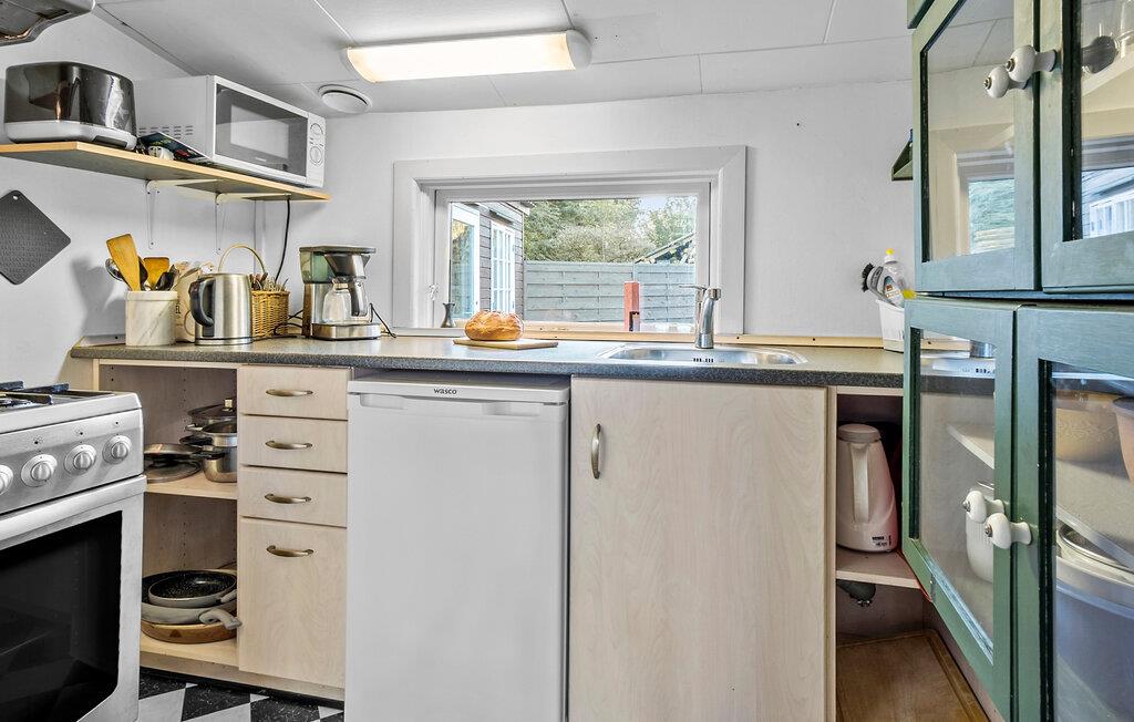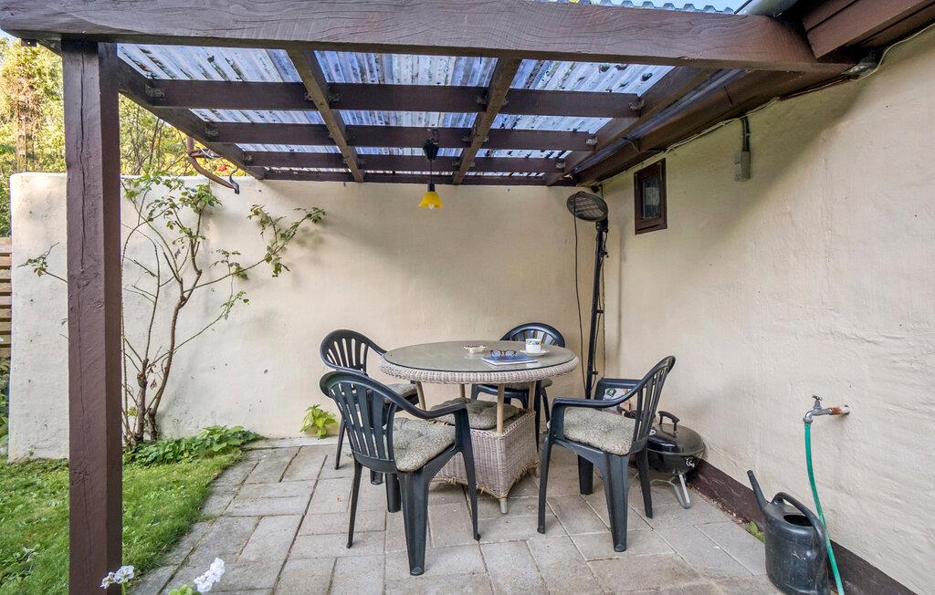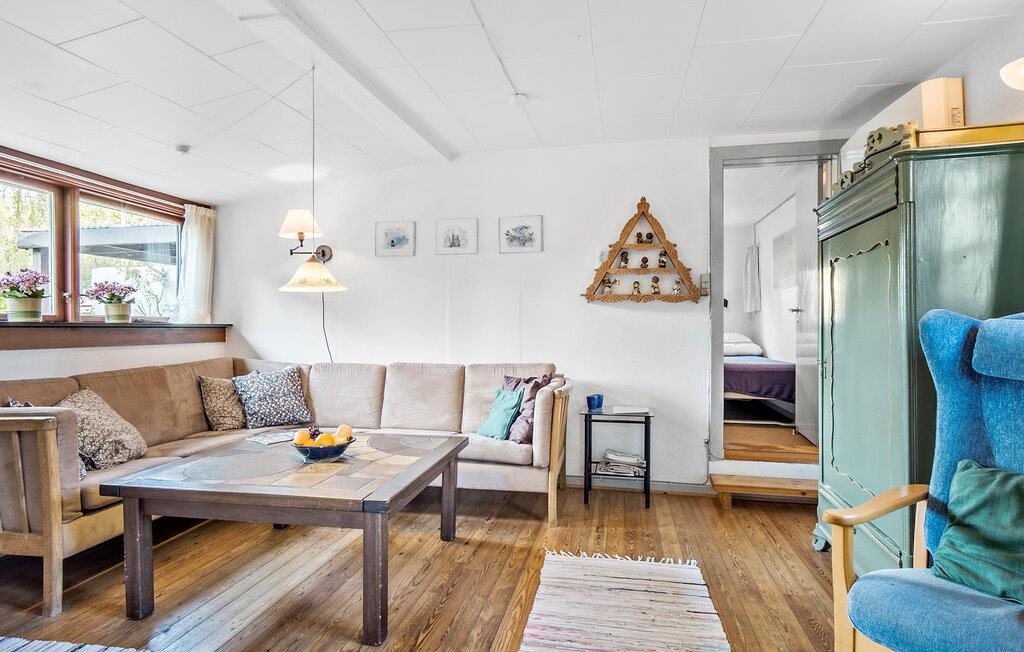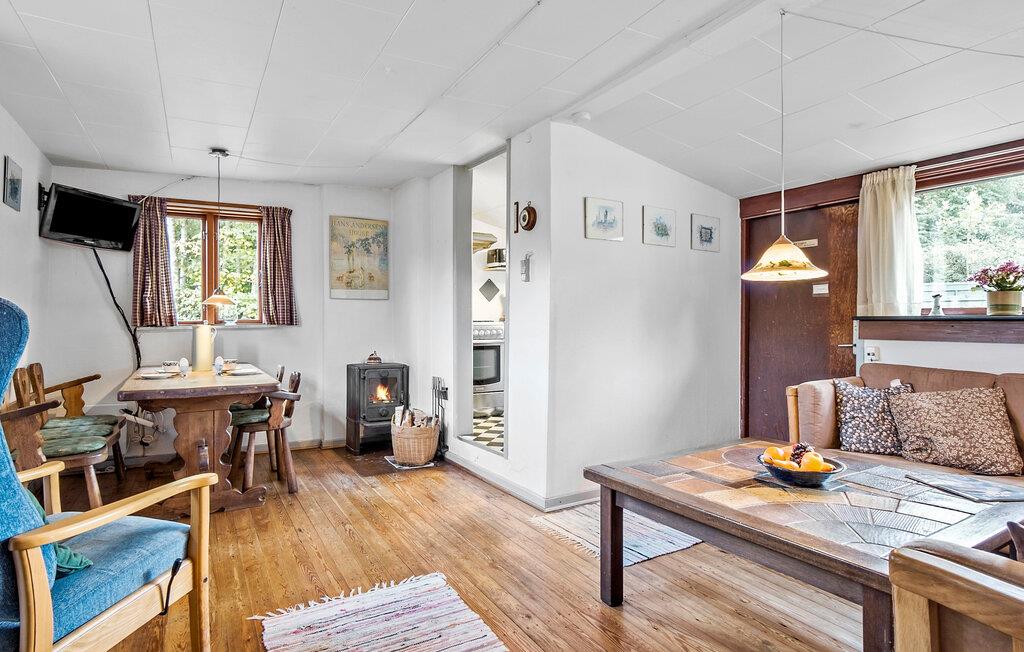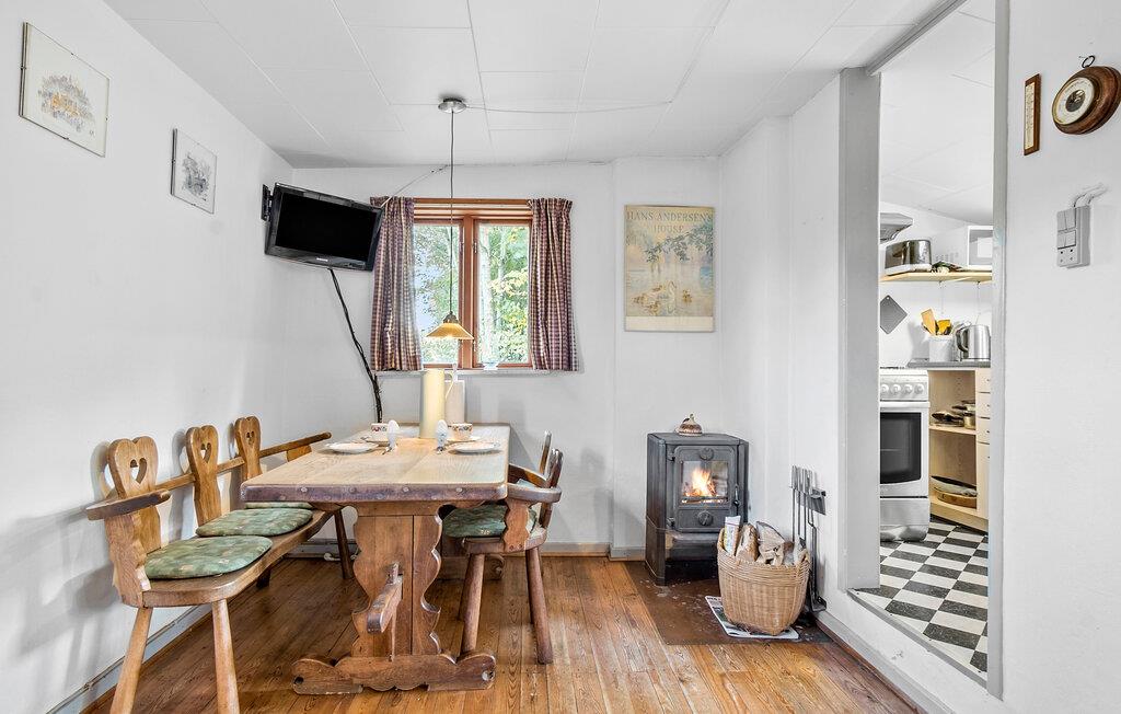 Jeres charmerende feriehus giver jer den ideelle mulighed for at trække jer tilbage midt i naturen. Start dagen med en afslappet morgenmad under åben himmel på terrassen. Lyt til fuglesangen og nyd den fredelige atmosfære, mens I nyder jeres morgenkaffe. Inde i huset venter en hyggelig stue med en rummelig sofa, der er ideel til afslapning efter en dag i naturen. På kølige aftener sørger brændeovnen for en behagelig varme og en hyggelig atmosfære. Den tilstødende spisestue indbyder til fælles måltider, som I let kan tilberede i det veludstyrede køkken.