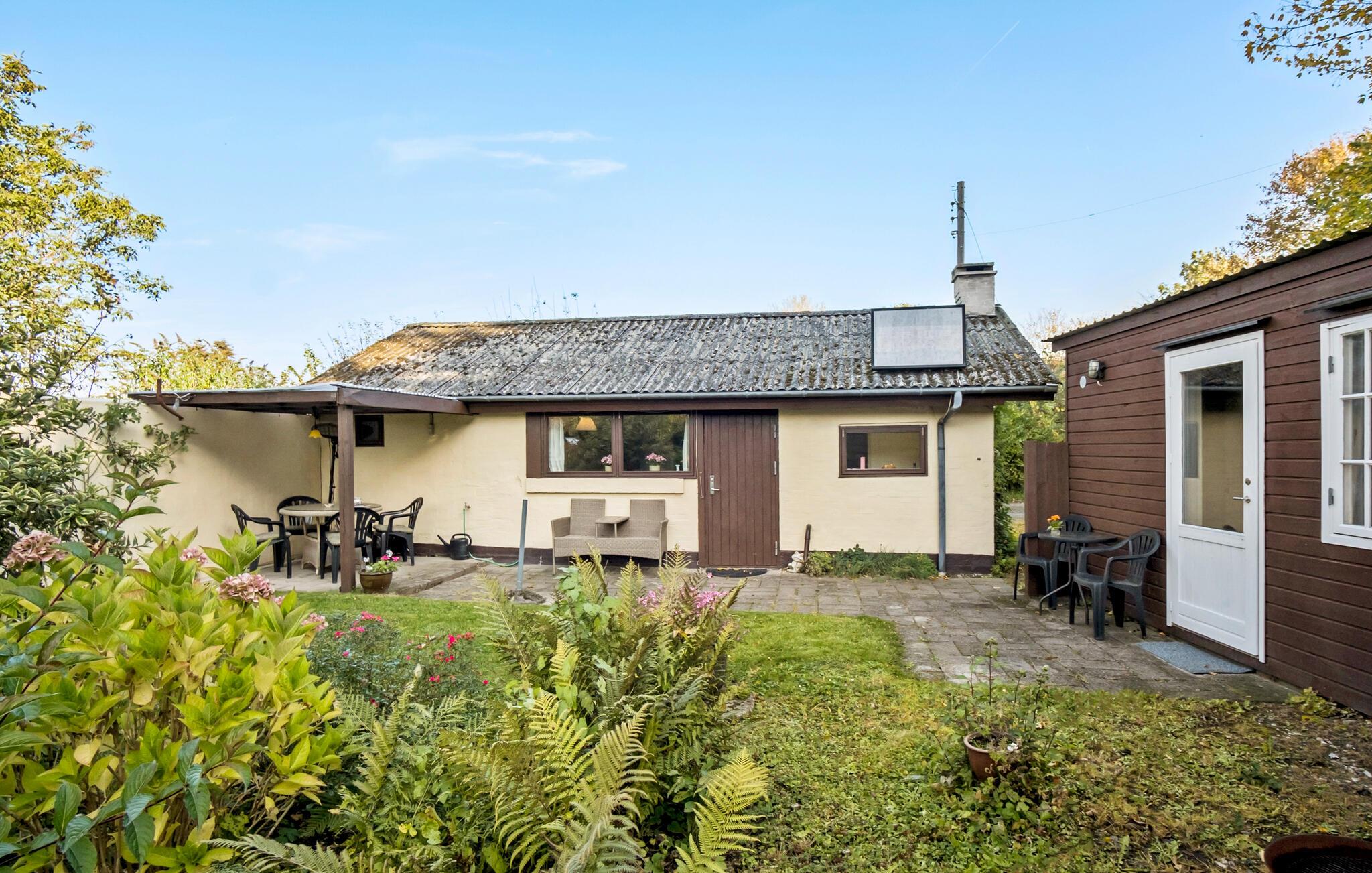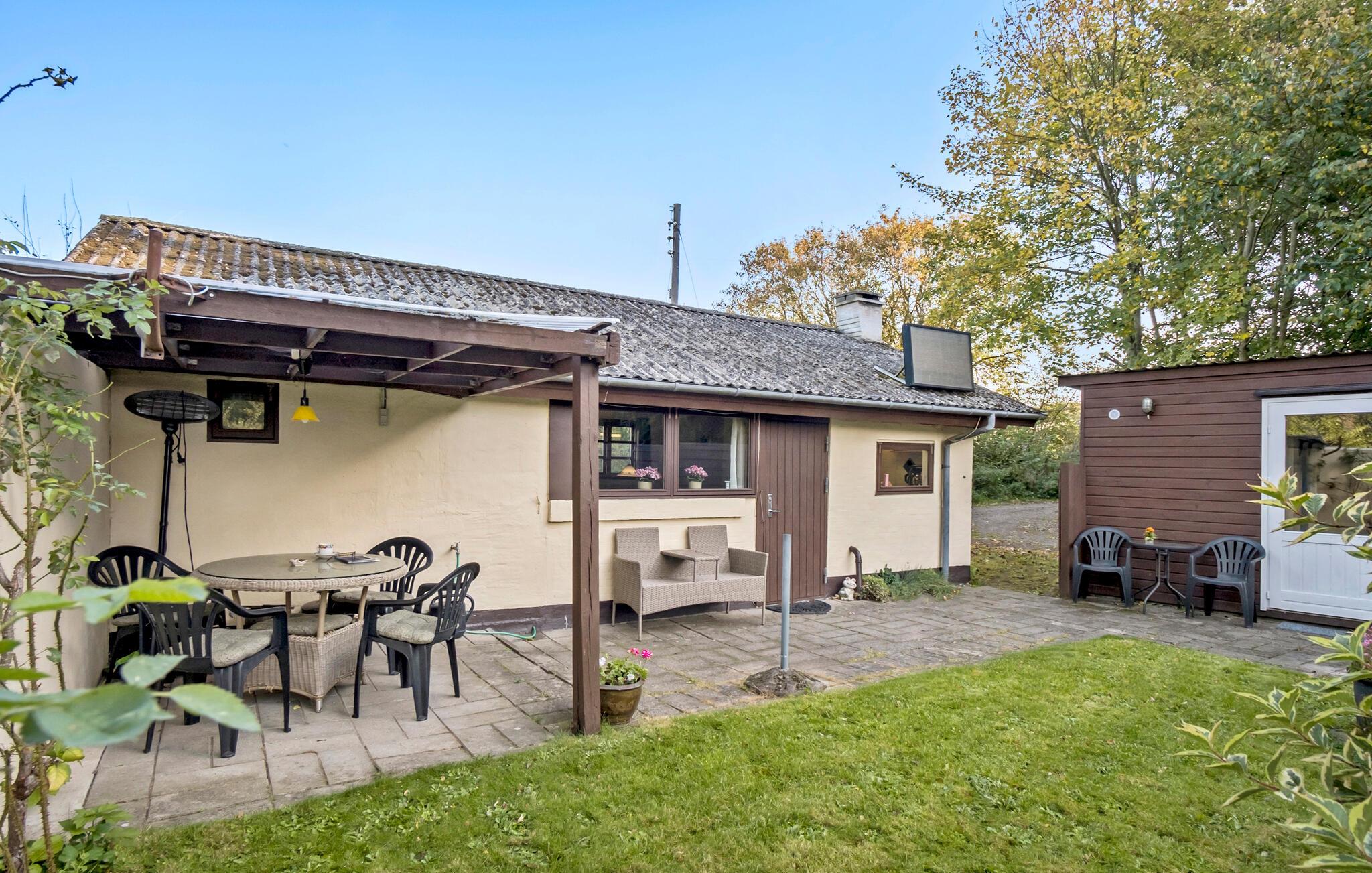 Charmerende feriehus nær Helnæs Bugt med have, brændeovn og internet.