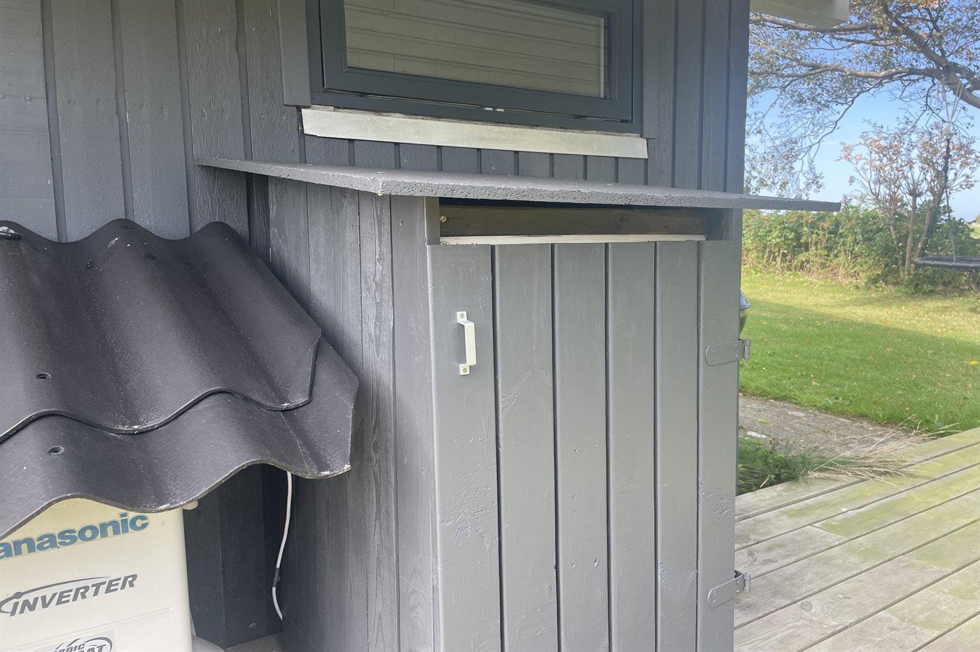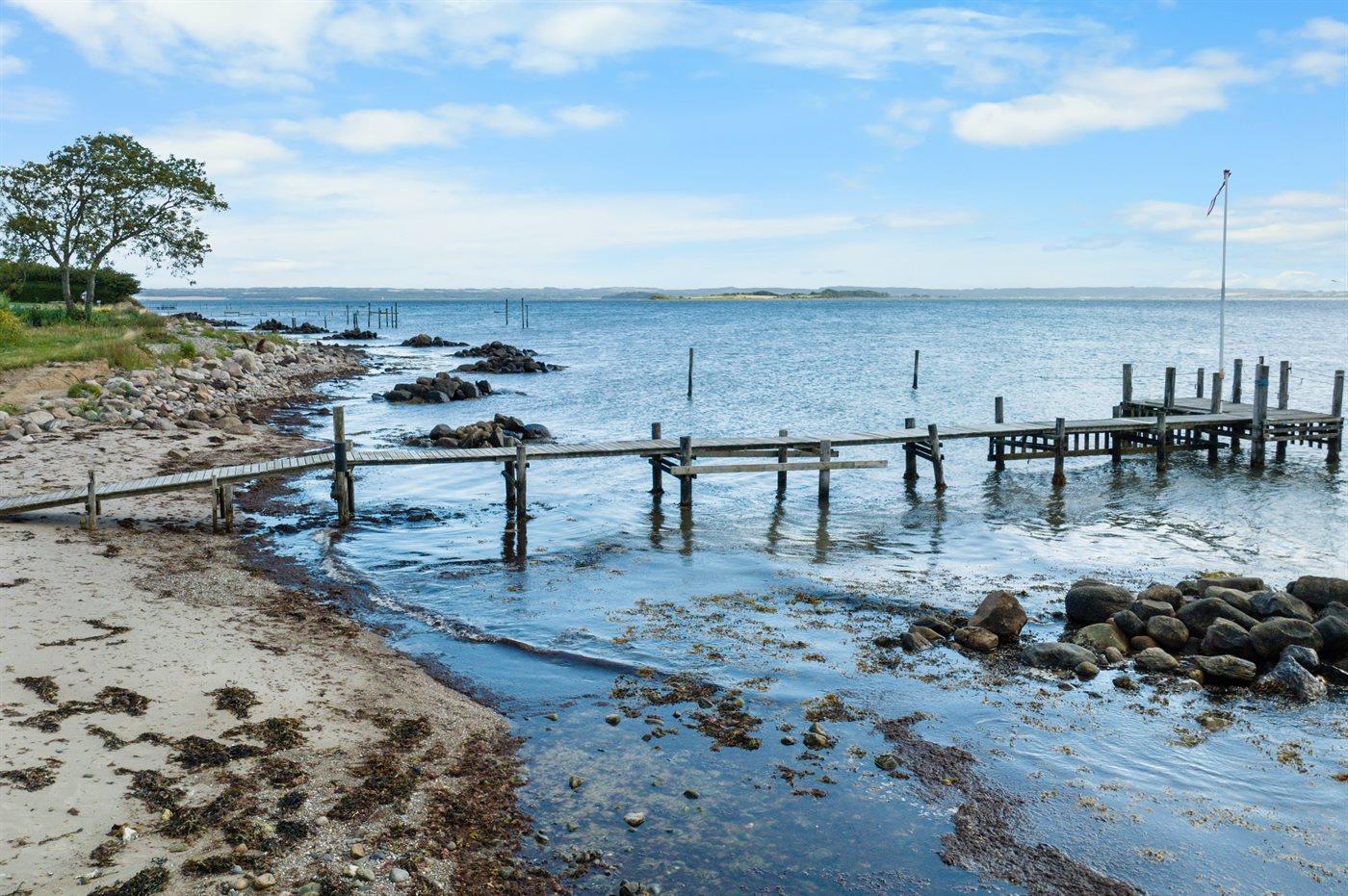 Omkring huset er der flere terrasseområder, hvoraf den overdækkede del er med havudsigt mod sydøst. Ved stranden er der i sommerperioden opsat fælles badebro.