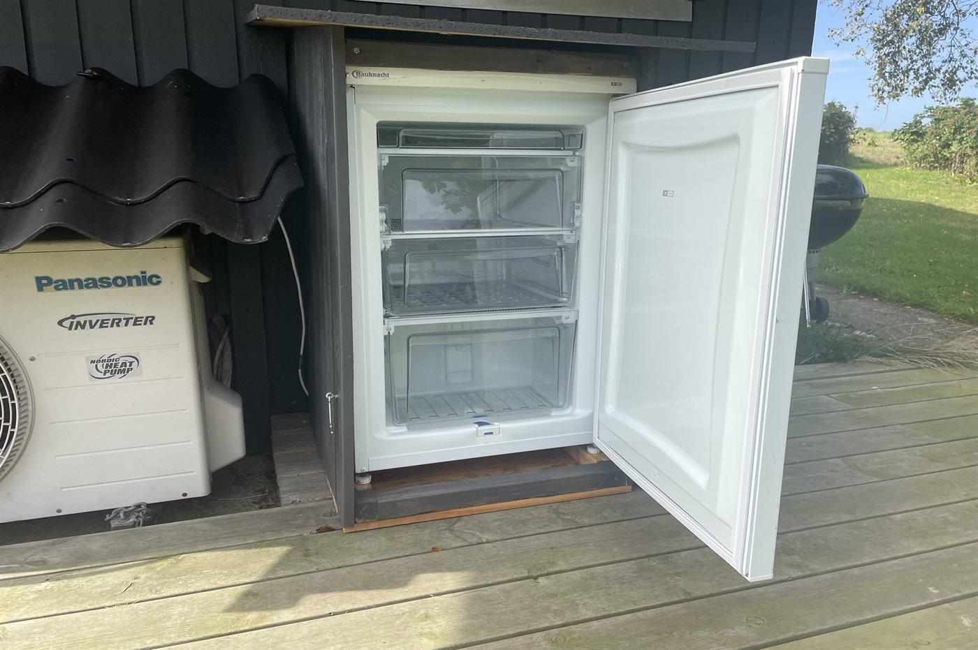 Køkkenet er udstyret med 1 køleskab. Der er 4 induktionskogeplader, varmluftovn samt opvaskemaskine.
