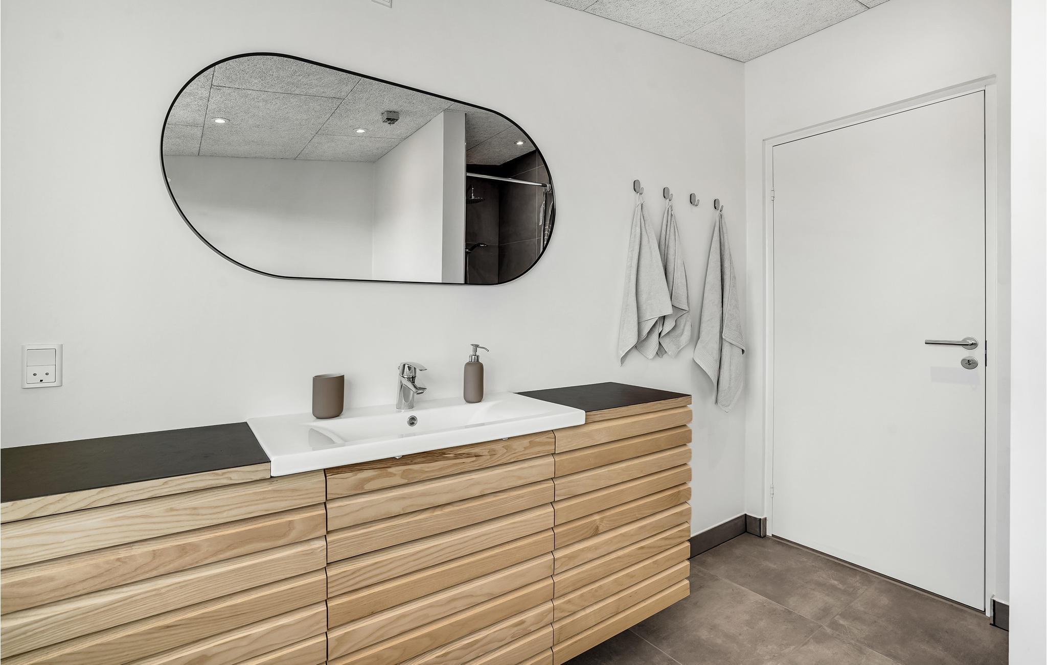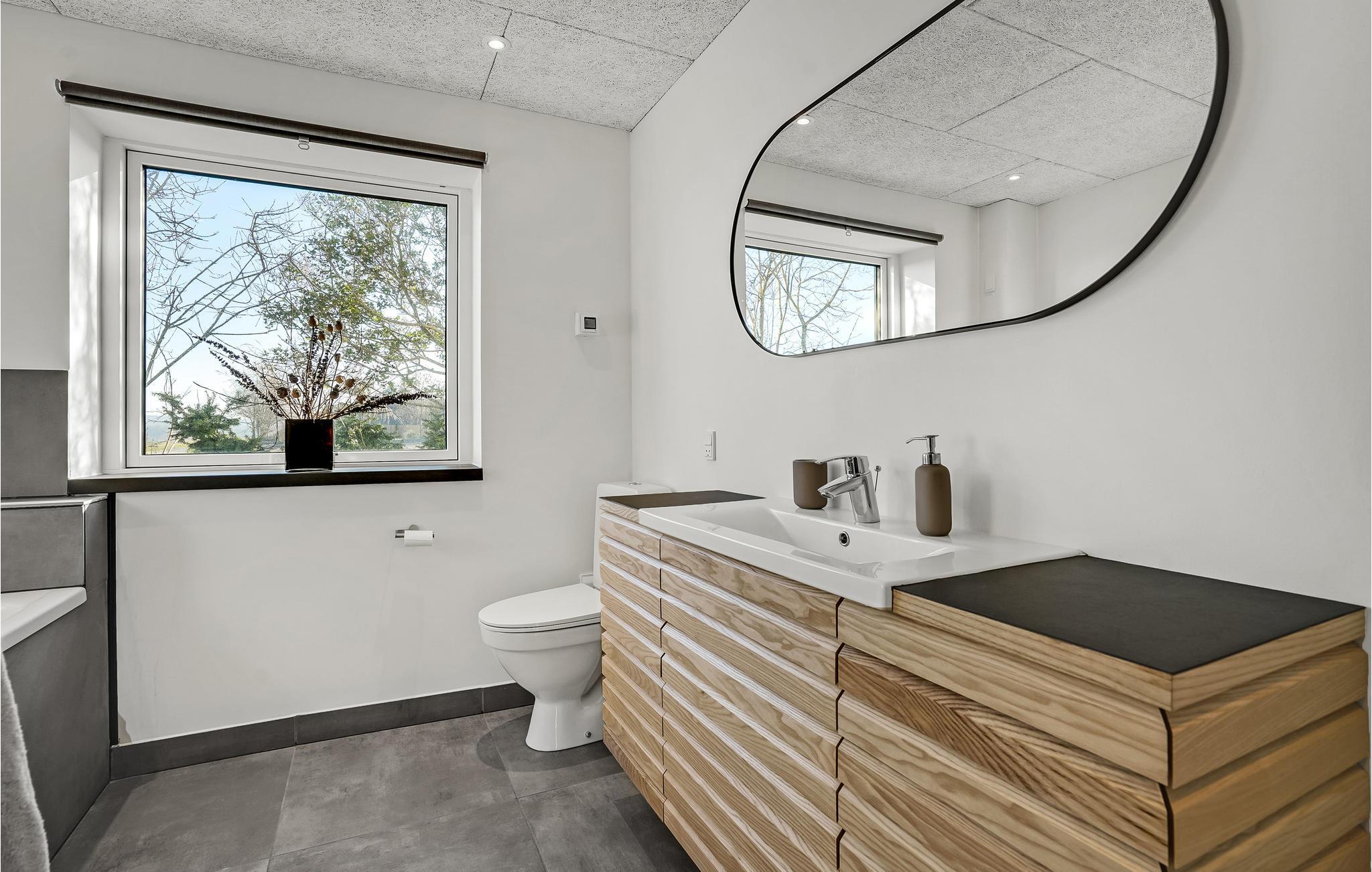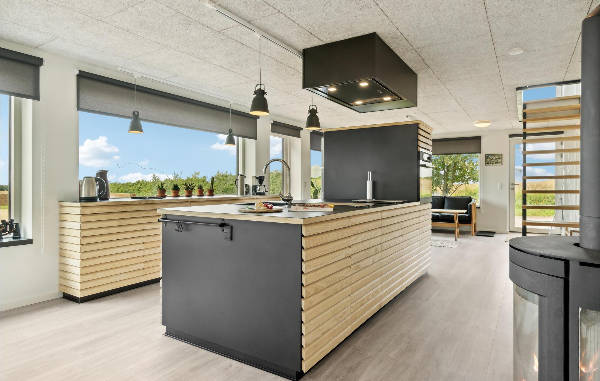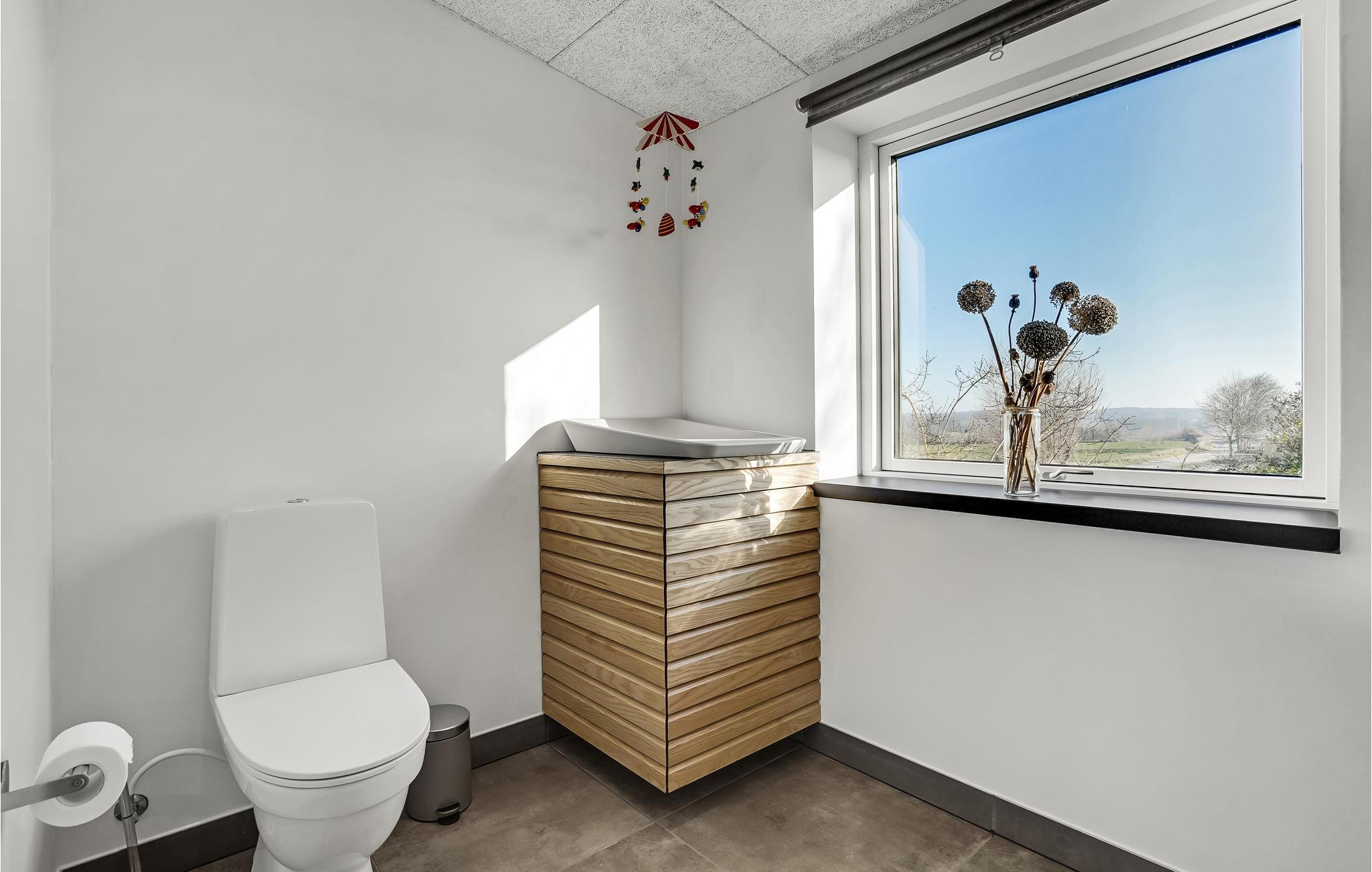 Glæd jer til en helt særlig ferie med base i dette forrygende hus, som er fordelt over to etager. Boligen emmer af kvalitet og har plads til en stor familie eller jeres gode venner og deres børn. Der er to rummelige stuer med fantastisk udsigt til naturen, så I kommer sikkert til at tilbringe en god del af tiden her med brætspil, gode bøger og rolige middage. I køkkenet kan I sagtens være flere i gang, så madlavningen kan blive et hyggeligt fællesprojekt. De store vinduespartier gør boligen oplagt til jer, der gerne vil kigge på fugle, for fra øverste etage er der et godt overblik hele vejen ud over Helnæsbugten og til marker og landskab.