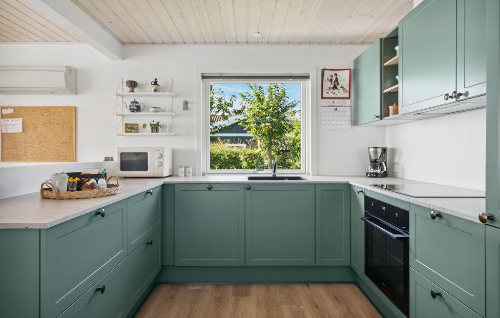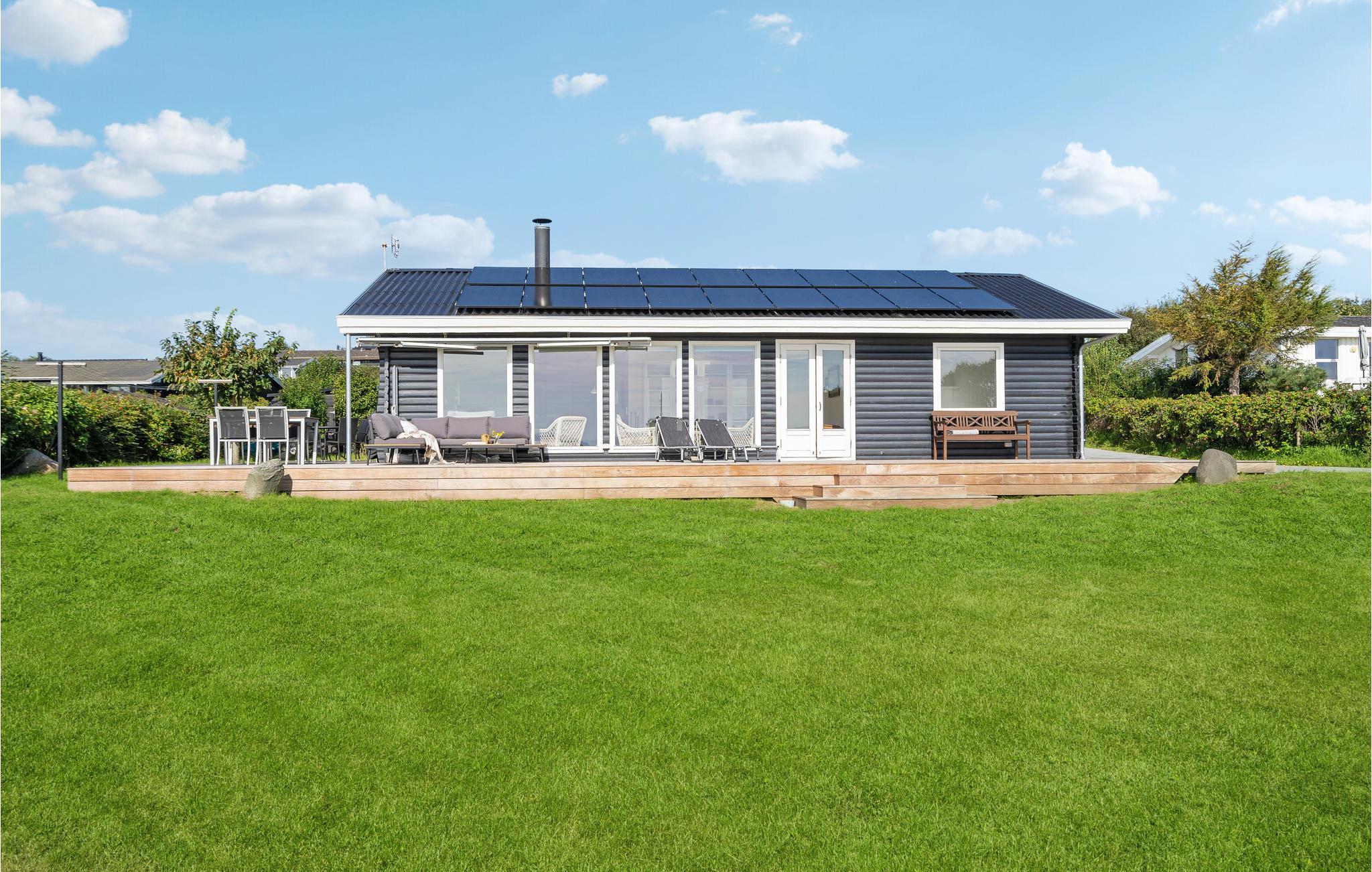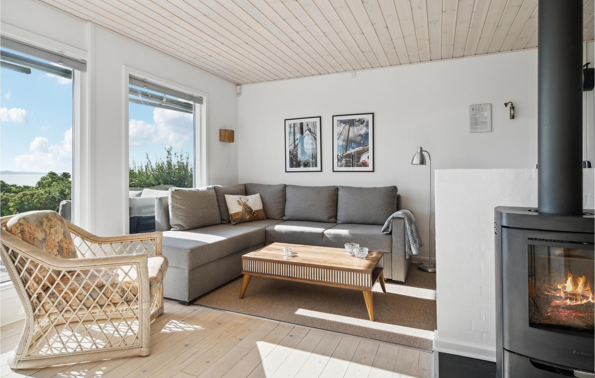 Velkommen til Helnæs og dette store energivenlige sommerhus, hvor I kan tilbringe nogle skønne dage i langsomt tempo. Læn jer tilbage i den hyggelige stue og nyd udsigten over grunden og vandet. Køkkenet er udstyret med flotte, moderne faciliteter, så det bliver en ren fornøjelse at hygge sig med madlavningen. I opholdsrummet er der et dejligt lys og stemningsfulde indretningsløsninger, så her får I gode rammer til måltiderne og de rolige aftener på sofaen. Mens børnene hopper på trampolin eller spiller fodbold, kan I sætte jer med en god bog eller lave strækøvelser på terrassen. De lune dage slutter med grillmad og den fantastiske udsigt over bugten.
