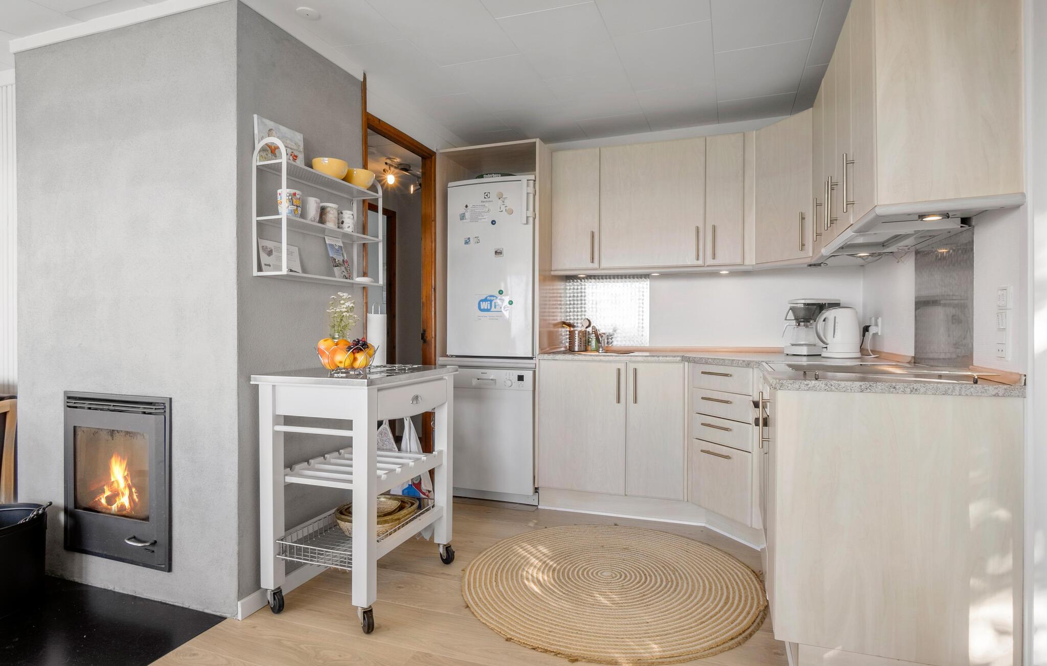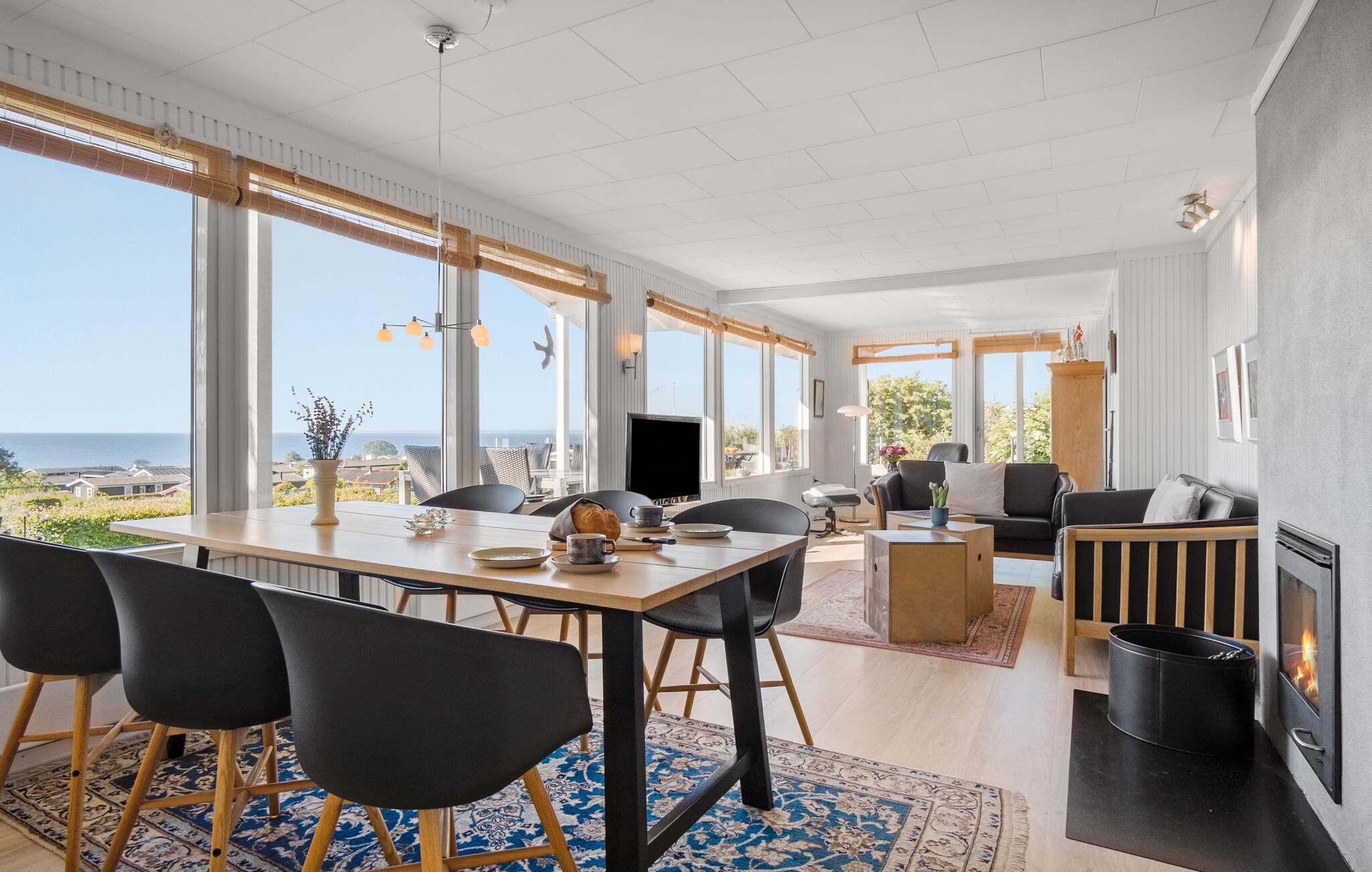 Hyggeligt og højt beliggende feriehus med en imponerende panoramaudsigt over havet og området. Både fra de dejlige terrasser og stuen kan man se trafikken af sejl- og motorbåde på Lillebælt. Den store stue, som er udstyret med brændeovn til de kølige dage og aftener, ligger i forbindelse med det åbne køkken. Feriehuset har nyere køkken og bad. Helnæs er en naturskøn egn, som bl.a. byder på gode fiske- og bademuligheder. Her kan I gå og cykle dejlige ture gennem kuperede landskaber, hvor udsigten forandres omkring hvert hjørne. Køb friske produkter i de mange gårdbutikker, friskopgravede nye kartofler, solmodne bær og frugt og andre lækkerier som kan nydes hjemme i huset.
