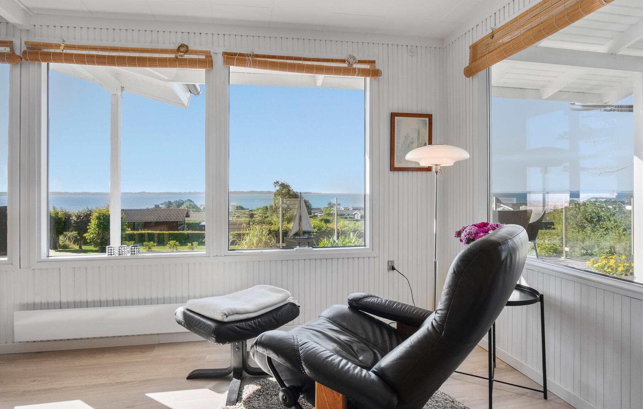 Hyggeligt feriehus på Helnæs med panoramaudsigt over Lillebælt og dejlige terrasser til afslapning.