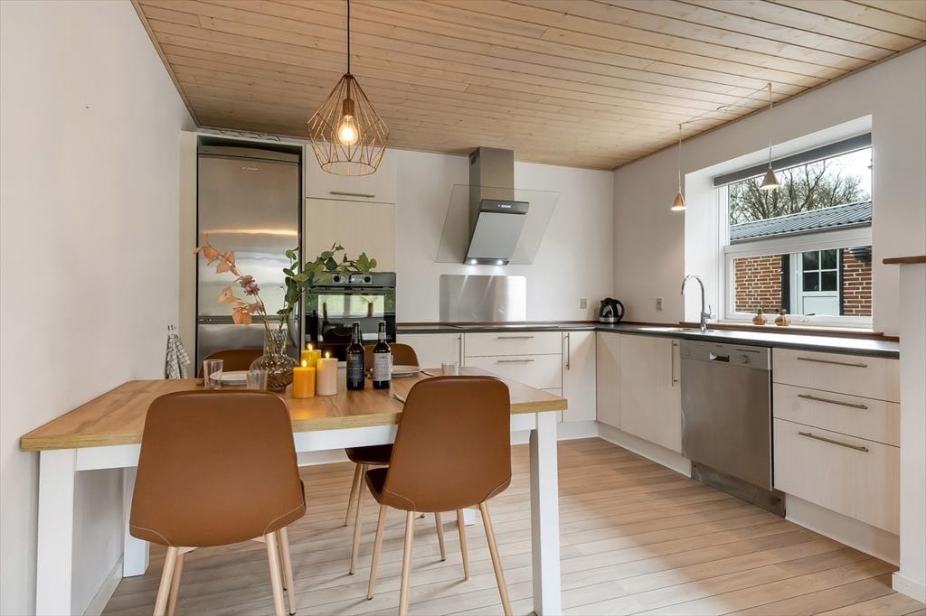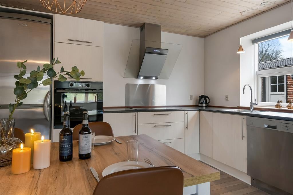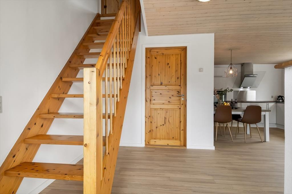Indenfor mødes du af en lys og hyggelig atmosfære, hvor der er tænkt på, at ferielivet skal være både enkelt og rart. Indretningen er præget af varme farver og små detaljer, der hurtigt får stedet til at føles hjemligt. Når du træder ind ad døren, kan du lægge hverdagens stress bag dig og i stedet nyde stilheden, samværet og de små ferierutiner, der giver en særlig ro i kroppen. Det åbne opholdsrum indbyder til afslapning og fællesstunder – hvad enten det er over en god middag, en stille stund med en bog eller en hyggelig snak ved spisebordet. Og har du din firbenede ven med, er det skønt at vide, at der også er plads til at finde sig godt til rette med en lun kurv i et hjørne.