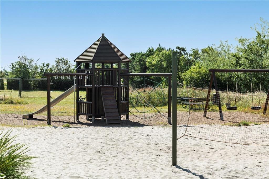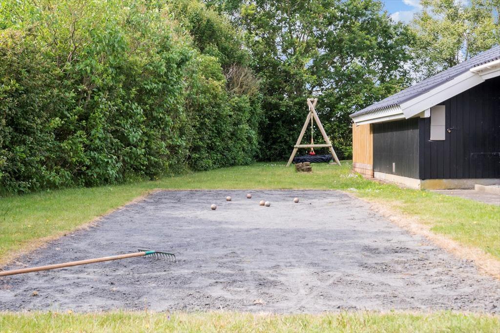 Om sommeren er det selvfølgelig oplagt at bruge en stor del af ferien ude i det fri. På den 954 m2 store grund er der gynge og sandkasse til børnene, og hele familien kan hygge sig med at spille petanque på havens dertil indrettede bane. I den grusbelagte indkørsel og i carporten er der god plads til at parkere en eller flere biler, mens I selv kan nyde solskinnet i en god havestol på den store, sydvendte terrasse.