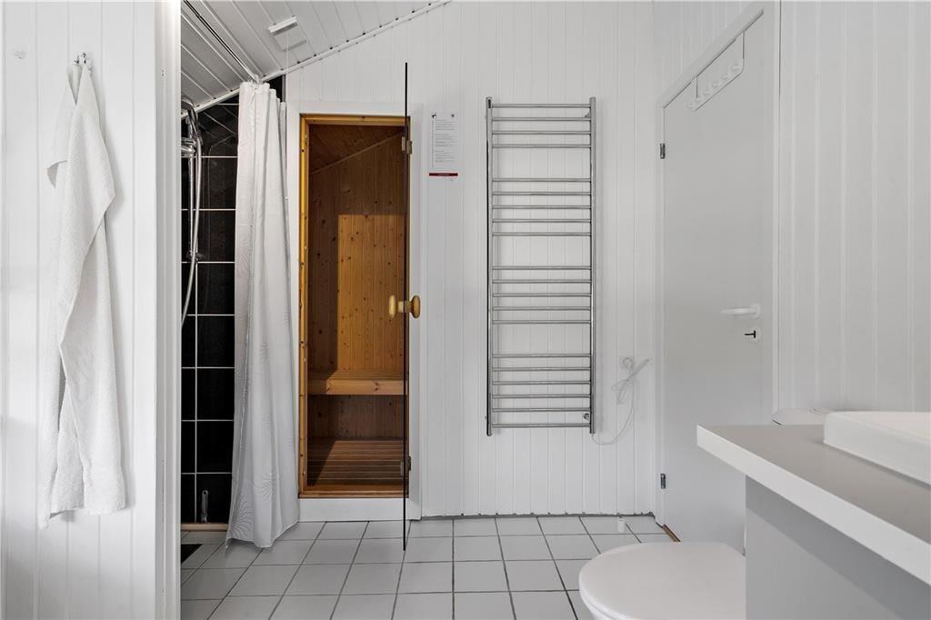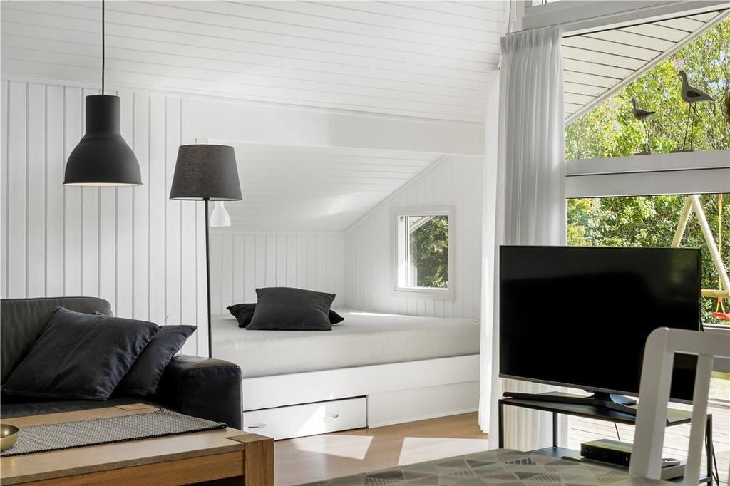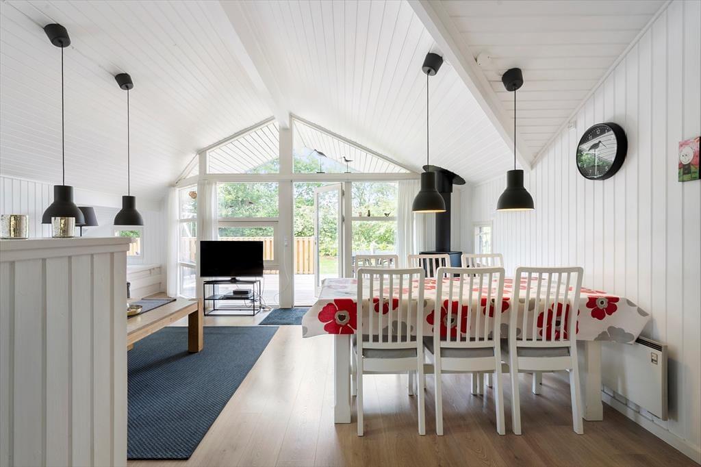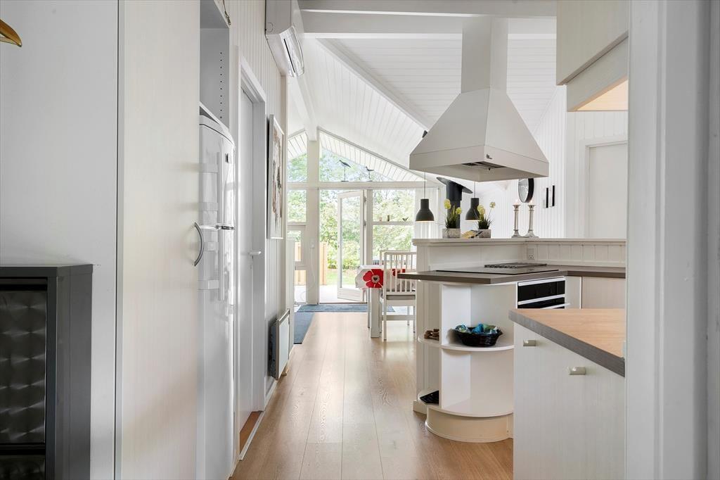 Inden døre kan I brede jer på 87 m2, som blandt andet er fordelt på tre gode soveværelser, et gæstetoilet og et badeværelse, som er lækkert indrettet med både spabad og sauna. Et køkken er der naturligvis også, og det er et pænt og lyst eksemplar, der ligger i forlængelse af en stor og stemningsfuld stue. Den åbne forbindelse er en dejlig detalje, for det betyder, at I sagtens kan tage del i hyggesamtalerne, selvom aftensmaden skal forberedes. Efter et godt måltid mad ved spisebordet, kan I slænge jer i stuens sofaer eller i alkoven. Er det køligt udenfor, er det hyggeligt at tænde op i brændeovnen – og hvis temperaturerne derimod er sommerlige, kan I åbne havedøren og invitere den friske luft indenfor.