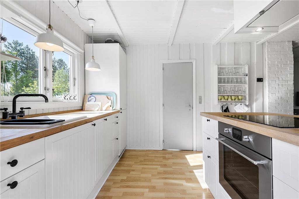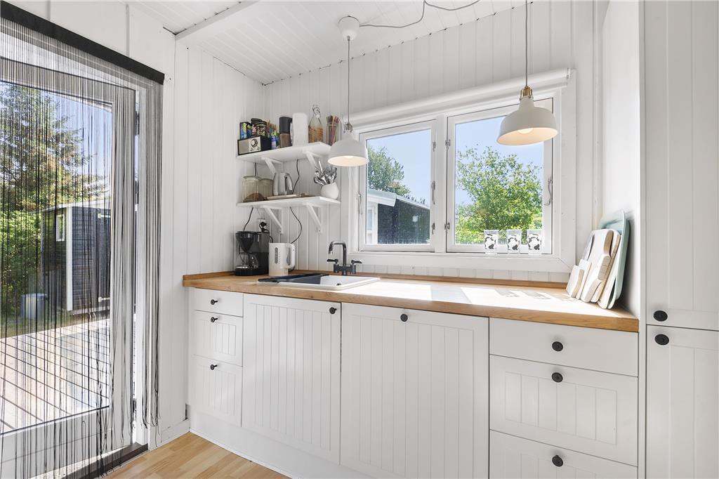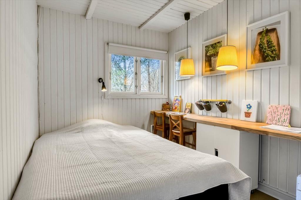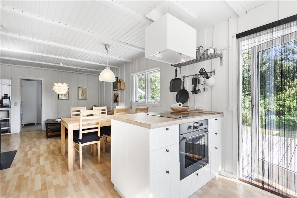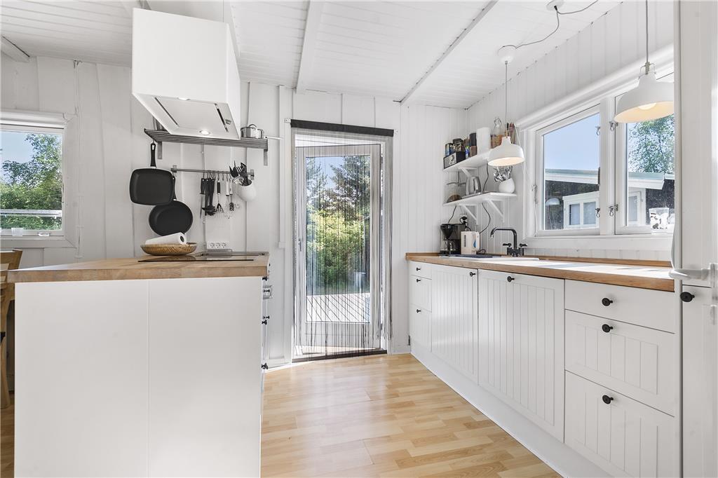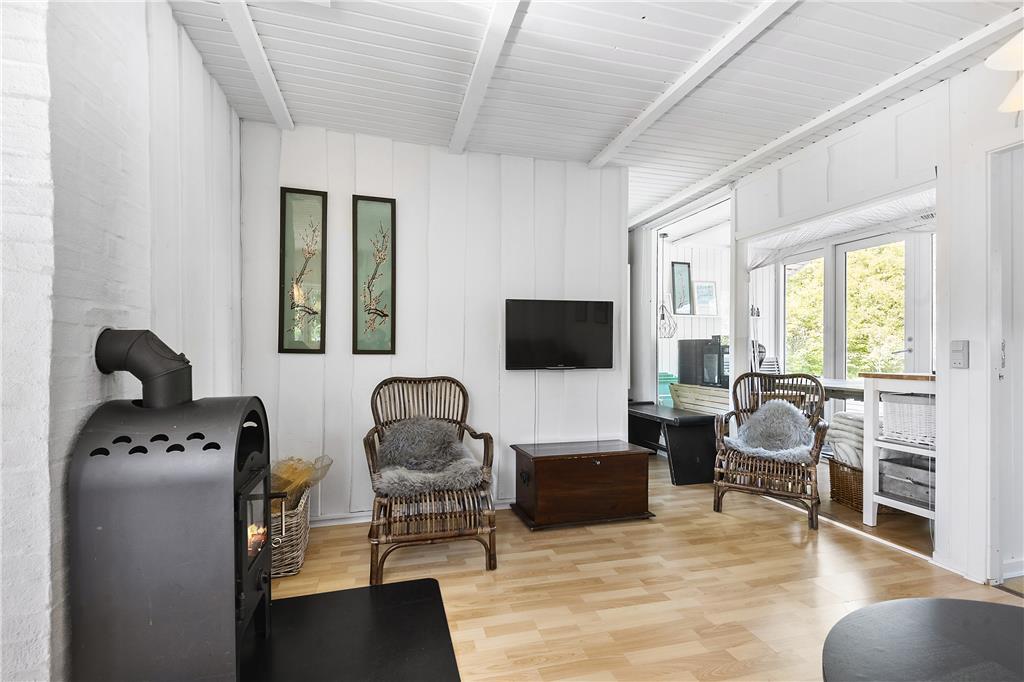 Kvadratmeterne er godt udnyttet i sommerhuset, der byder på et flot badeværelse med vaskemaskine, tørretumbler og bruseniche, tre gode soveværelser og en stor stue med integreret køkkenafdeling. Alle rum fremstår pæne og velholdte, og de lyse farvetoner bidrager til den indbydende atmosfære. Udsigten betyder selvfølgelig også noget, for når I står og kræser om maden i det velindrettede køkken, minder synet af grundens grønne træer jer om, at I befinder jer langt væk fra hverdagsliv og rutiner. Feriefornemmelsen er desuden helt i top, når I tænder op i brændeovnen, laver varm kakao og finder brætspil eller gode bøger frem fra feriebagagen.