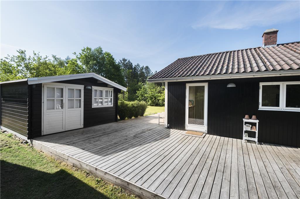 Skal hele dagen ikke tilbringes henslængt i sofaen, kan I rykke ud i haven, når solen skinner. Den ugenerede grund er enkelt og hyggeligt anlagt med en stor græsplæne, bålsted og et herligt terrassemiljø, der breder sig stort set hele vejen rundt om sommerhuset. Det betyder, at I kan sætte jer lige der, hvor solforholdene er allerbedst, og havemøbler, liggestole og parasoller sørger for, at driverlivet bliver særdeles komfortabelt.