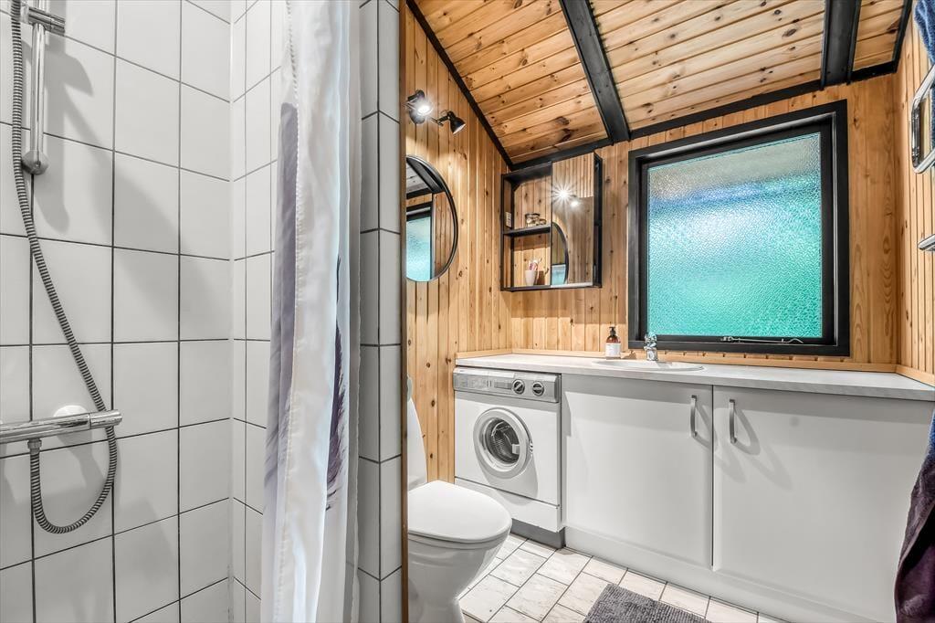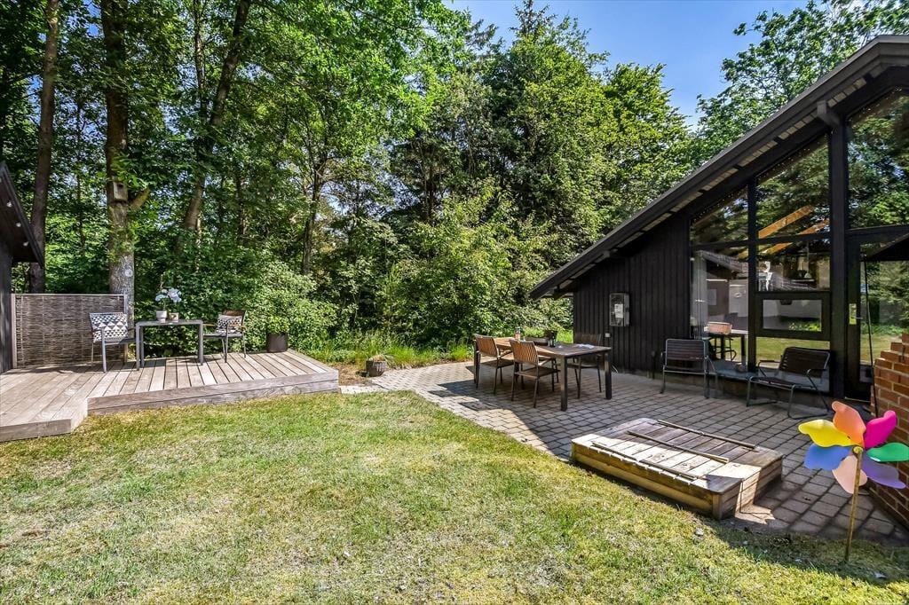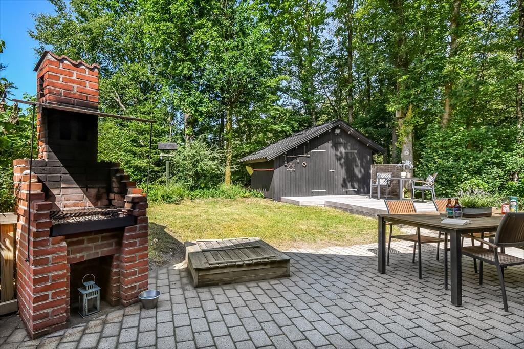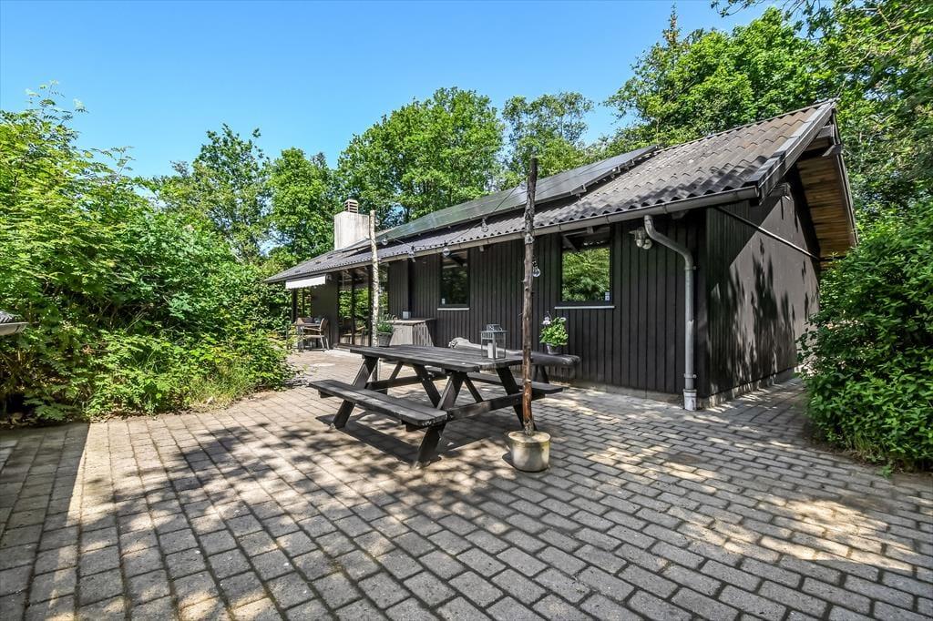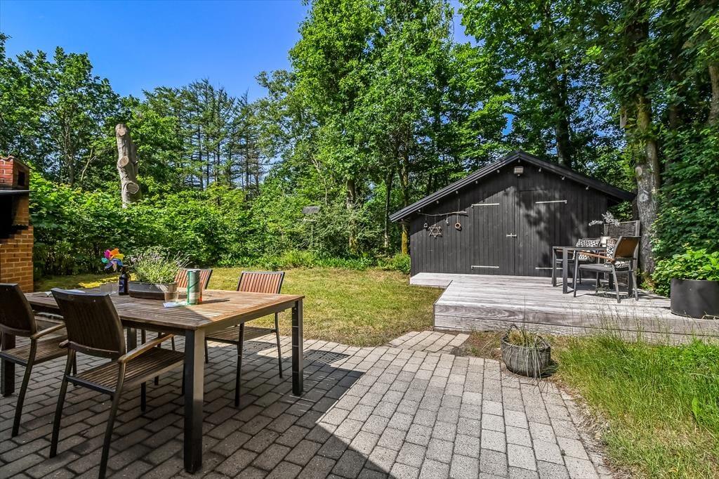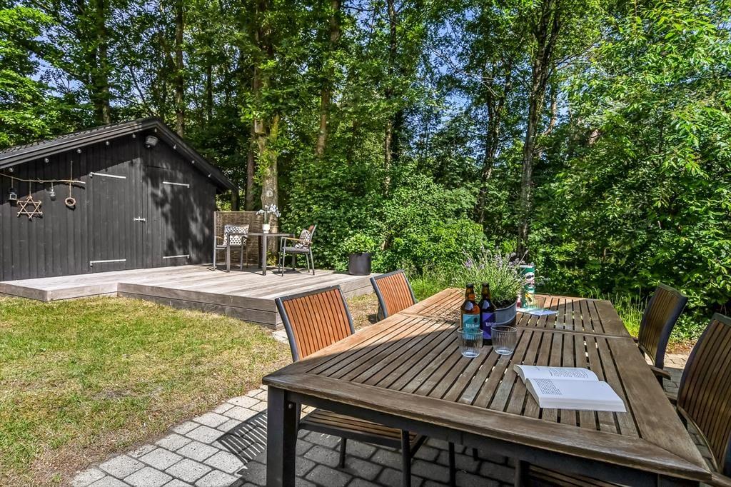 På den store naturgrund er der skruet helt op for idyllen, når løvtræerne bugner af bladgrønt, fuglene kvidrer, og sommersolen står højt på den høje, blå himmel. Her i feriens ugenerede og rolige helle har du flere opholdspladser at vælge imellem, som udover dejlige terrasser også inkluderer et lækkert vildmarksbad. På en kølig dag er det herligt at læne sig tilbage i det varme vand, når du vender hjem fra en cykel- eller fisketur, og om sommeren bliver de lyse aftner blot endnu mere magiske, når du kan sidde her med dem, du holder allermest af.