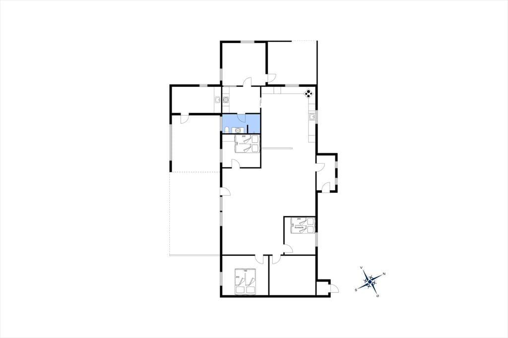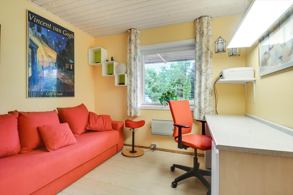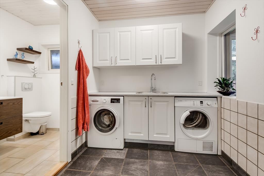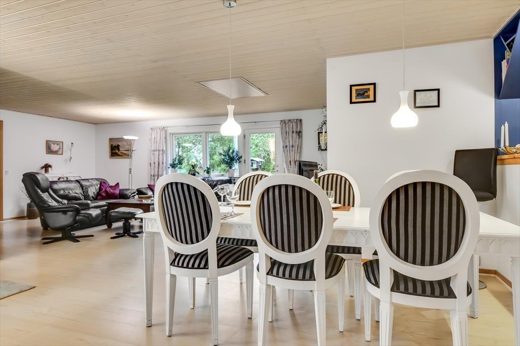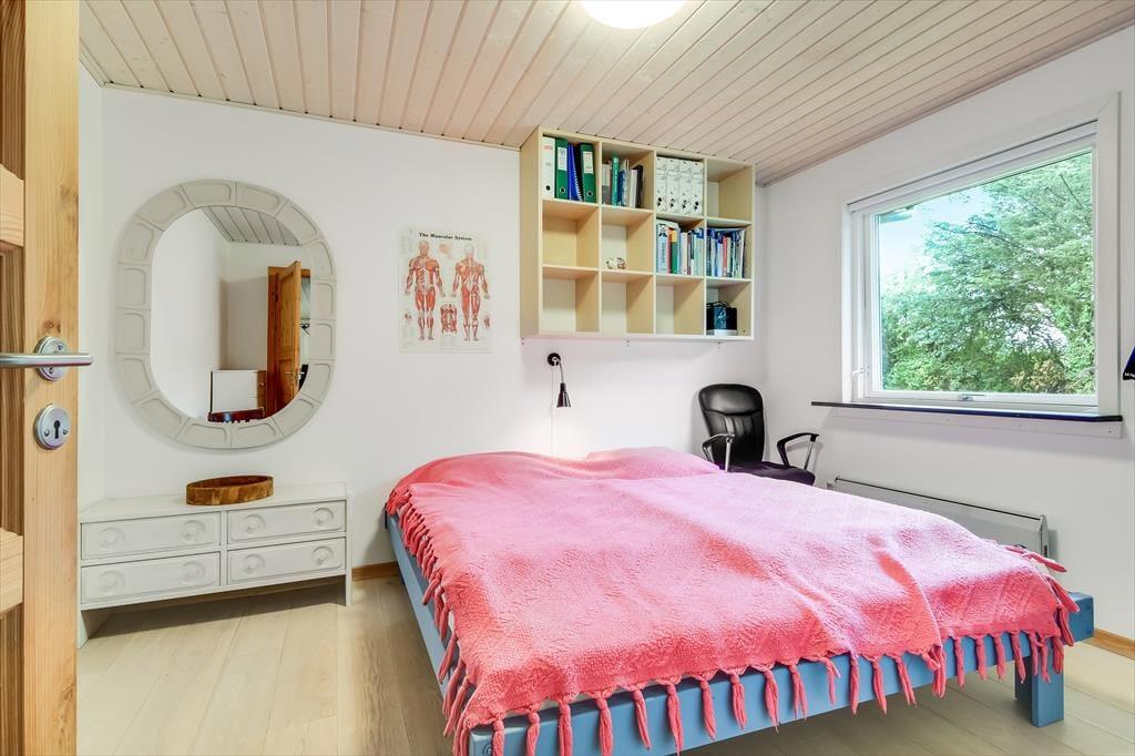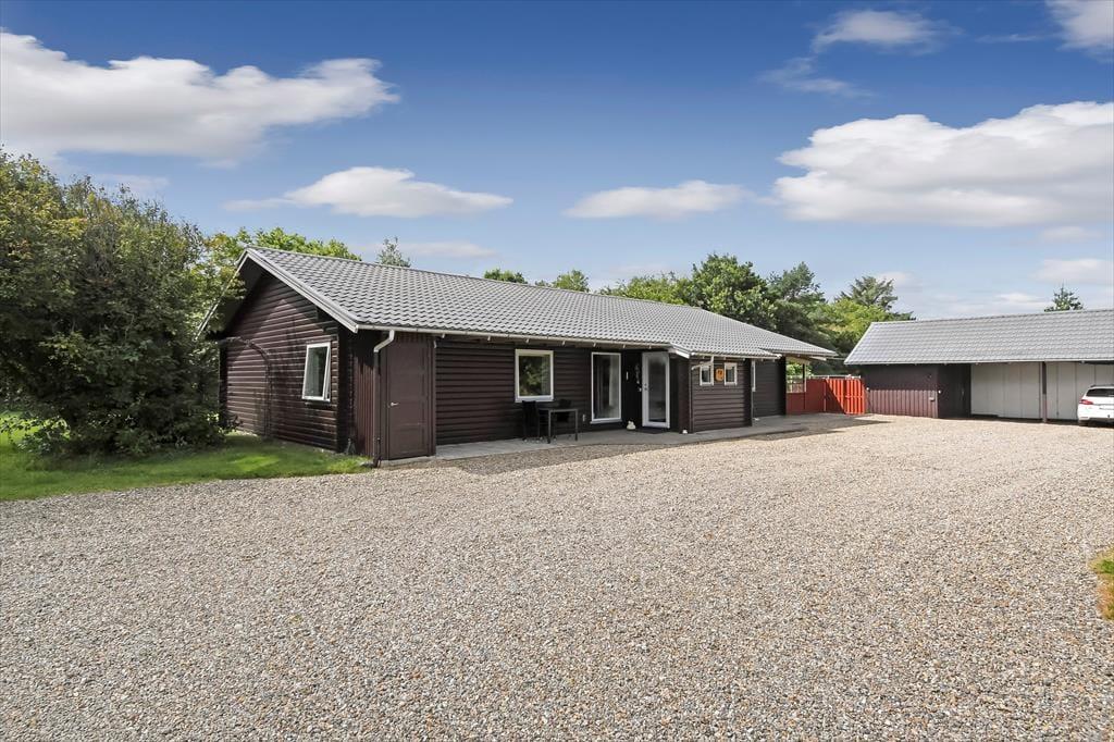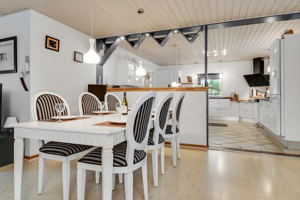 Sommerhuset har tidligere været anvendt til helårsbeboelse, så du og dine kære kan holde ferie her både sommer og vinter – og I får hele 142 m2 at brede jer på inden døre. Køkken og stue ligger centralt i huset, og den åbne forbindelse gør det nemt at nyde det sociale samvær, også selvom nogen familiemedlemmer slapper af og andre hygger sig med madlavningen. Hvis du har musikalske talenter i familien, kan du glæde dig over stuens musikinstrumenter, mens sofaerne og det store fladskærms-tv fungerer som et perfekt setup til jer, der elsker at holde filmaftener eller se serier. I forlængelse af husets bryggers findes ligeledes et rum netop designet til de firbenede gæster. De tre soveværelser er godt fordelt, så alle kan se frem til en rolig nats søvn.