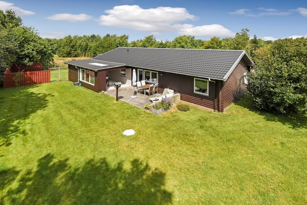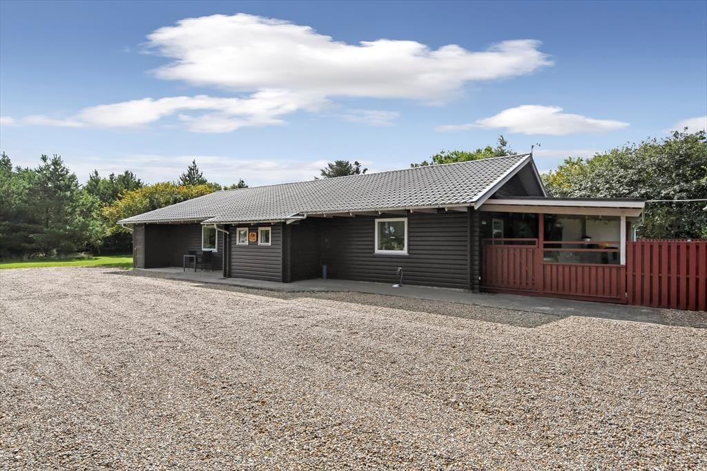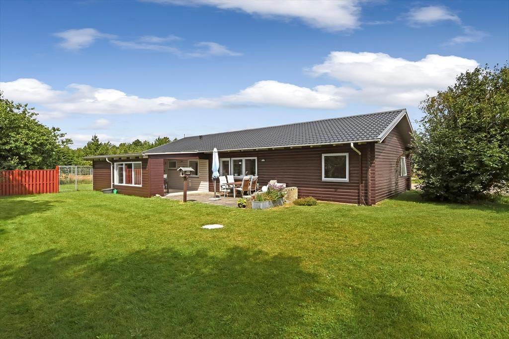 Ikke bare børn og voksne, men også familiens hunde kan se frem til at få den skønneste ferie i dette store og rummelige sommerhus i Hemmet. Huset er helårsanvendeligt og større end de fleste ferieboliger, og ude på den indhegnede grund er der masser af plads til leg, boldspil og afslapning.
