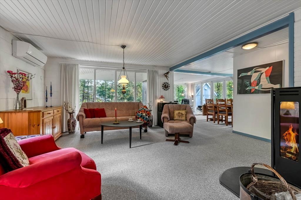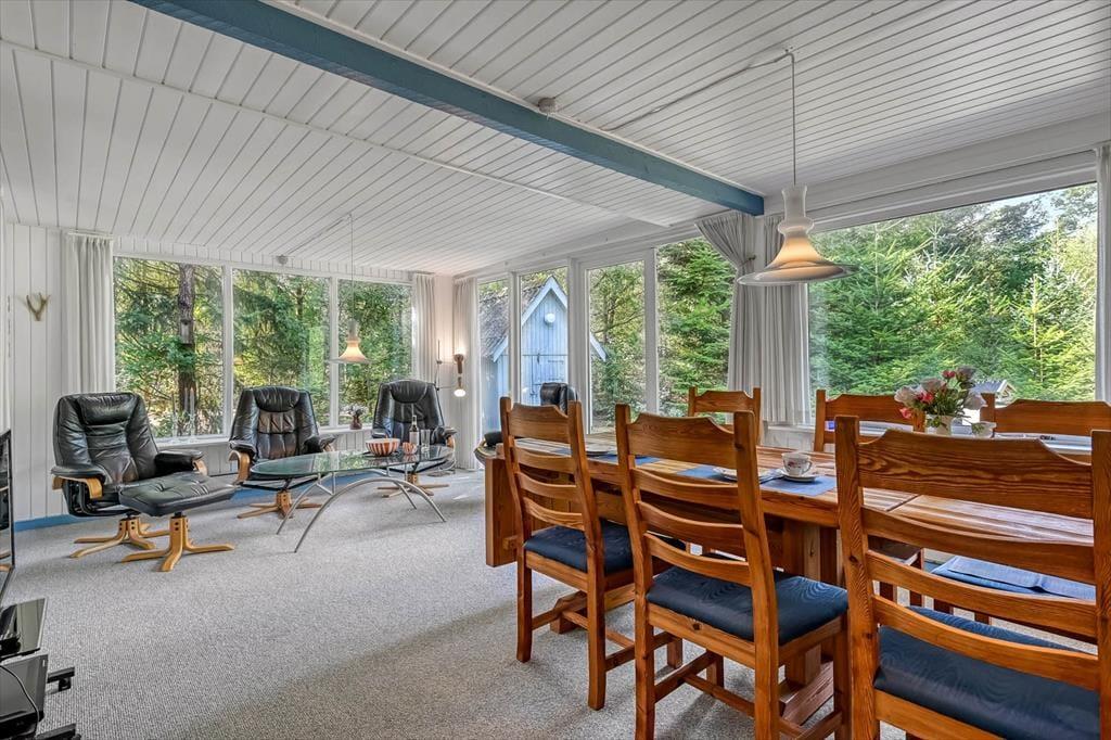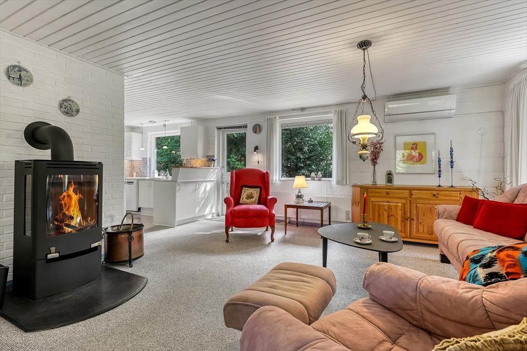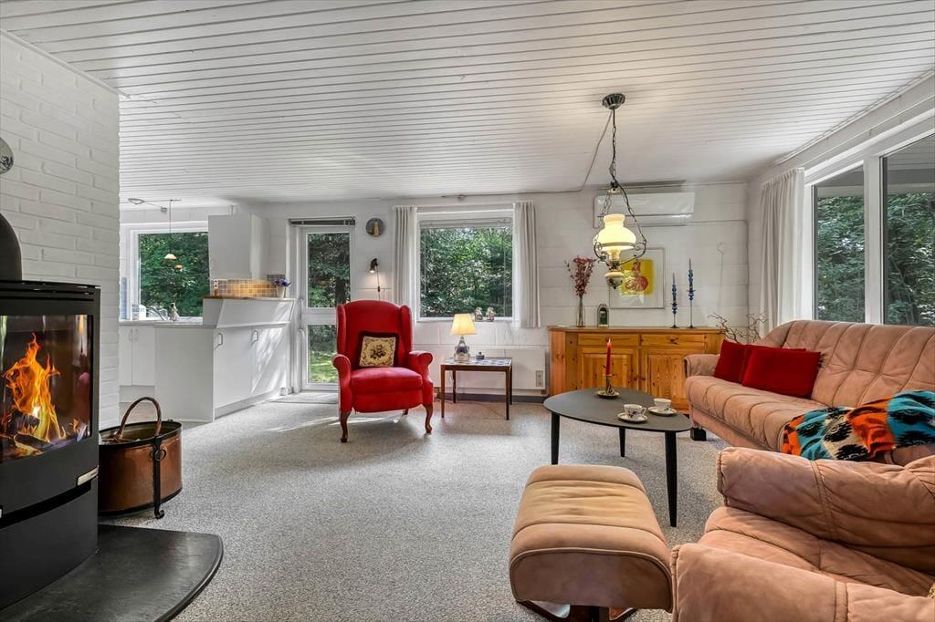 Indenfor i sommerhuset bliver du mødt af en varm og indbydende atmosfære, hvor alt indbyder til hygge og samvær. Stuen fungerer som familiens naturlige samlingspunkt, hvor du kan læne dig tilbage i de bløde møbler med en god bog, mens andre samles om spil eller en film. Brændeovnen sørger for knitrende varme, når mørket falder på, og giver rummet en helt særlig stemning på de kølige dage. Køkkenet ligger i åben forbindelse med stuen, så du kan nyde duften af frisklavet kaffe eller aftensmad, mens snakken går på tværs af rummet. Sommerhuset byder desuden på gode rammer til nætter med ro og søvn – både i hovedhuset og i det hyggelige anneks, som gør det let at fordele sig og skabe små oaser af privatliv. Alt i alt et hjemligt fristed, hvor komfort og nærvær går hånd i hånd.