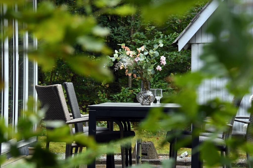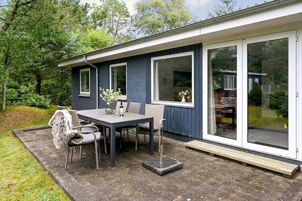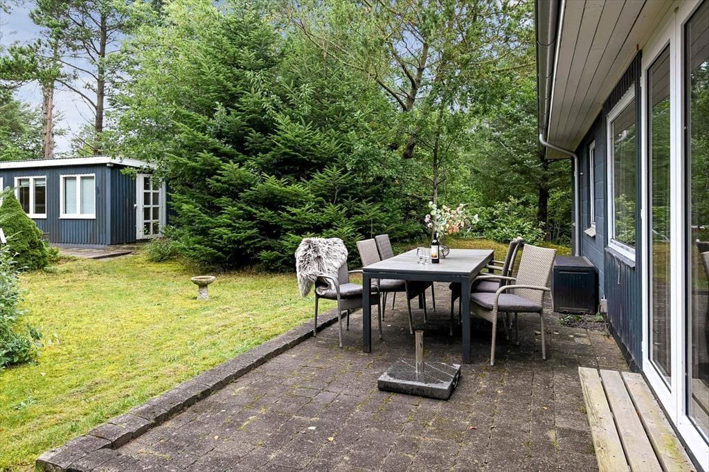 Når du træder udenfor, åbner der sig en idyllisk kulisse af høje træer, der omkranser grunden og skaber en atmosfære af fred og fordybelse. På terrassen kan du nyde de lange sommerdage med morgenkaffen i hånden, mens solens stråler glider gennem skovens grene, eller du kan dække op til en lækker middag under åben himmel. Børnene kan frit lege i den grønne natur, mens de voksne lader skuldrene falde ned og nyder ferietempoet. Hundene har også frihed til at snuse rundt og være en del af ferieeventyret. Om aftenen kan I samles under stjernerne og mærke den særlige ro, som kun findes, når man er langt væk fra hverdagens larm og tæt på naturen.