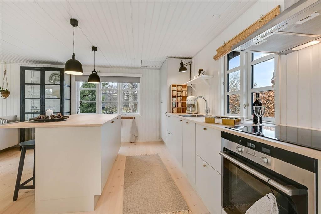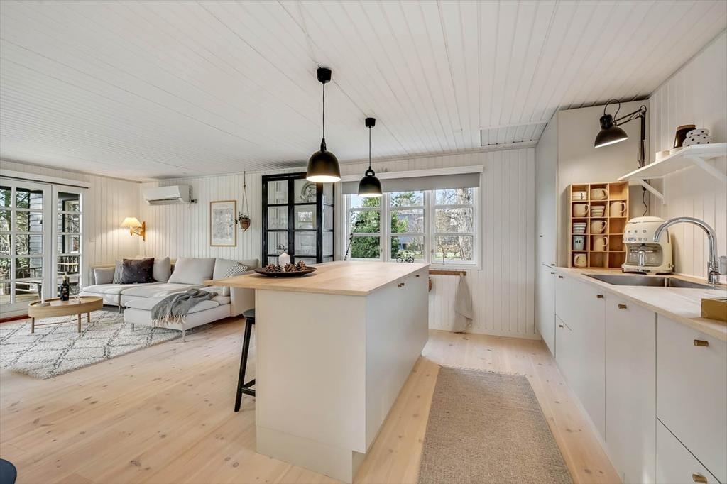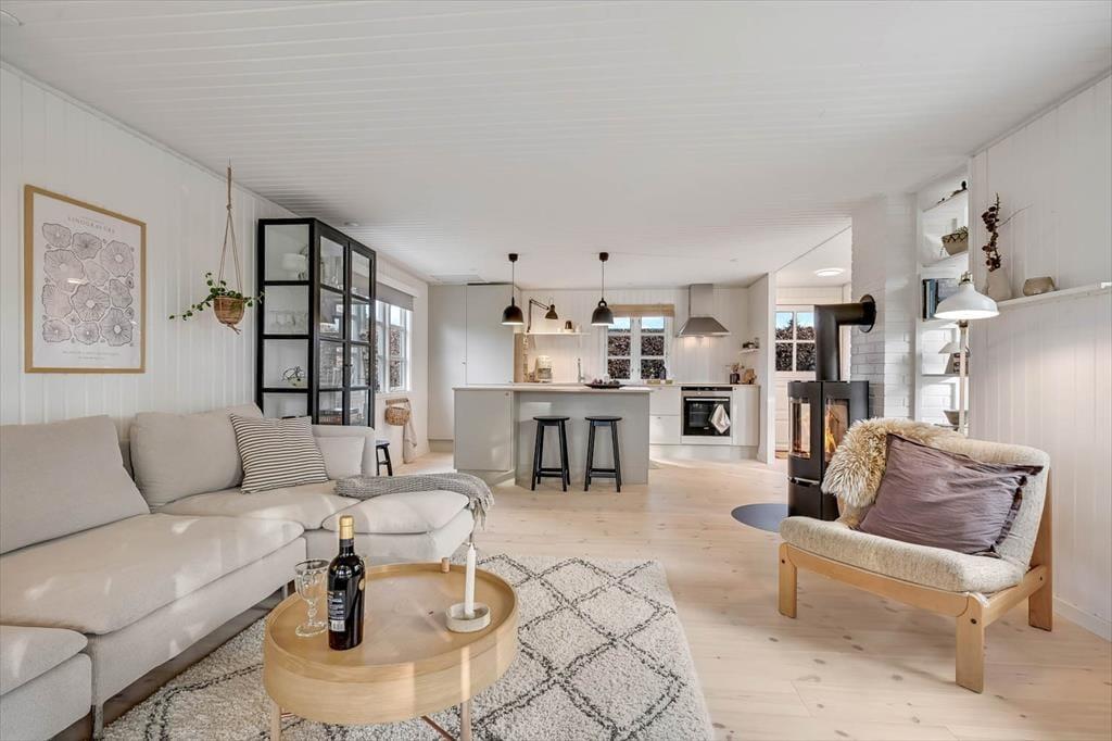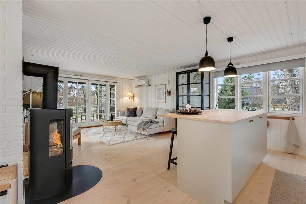 Hyggeligt sommerhus i Hemmet med brændeovn og kun 300 meter til stranden.