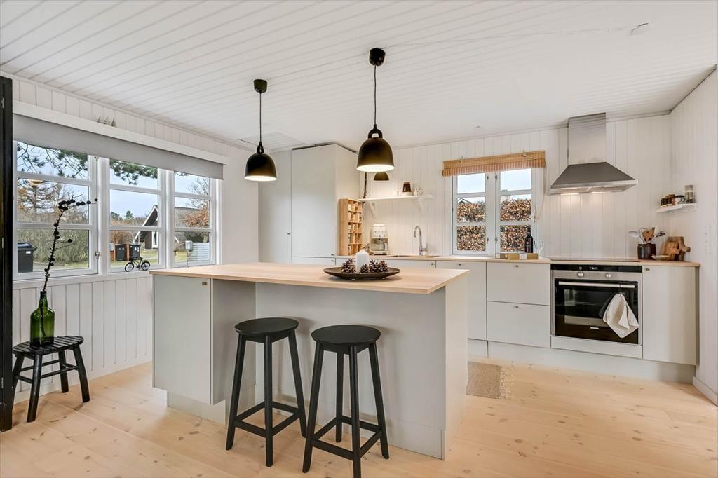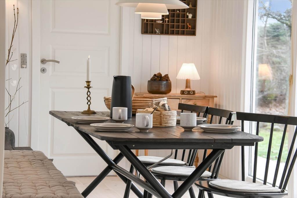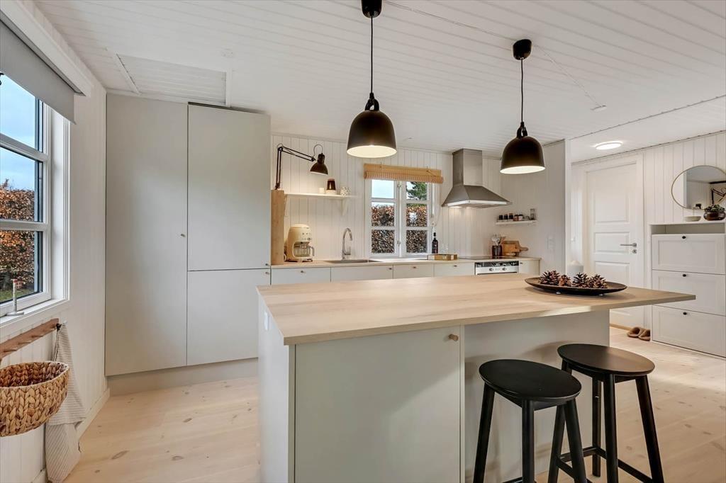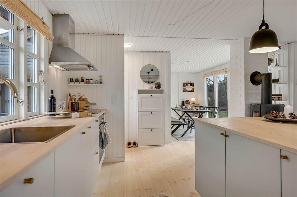 Sommerhus i Hemmet, Vestjylland, med plads til 6 voksne. Der er en hyggelig indretning med bl.a. brændeovn.
