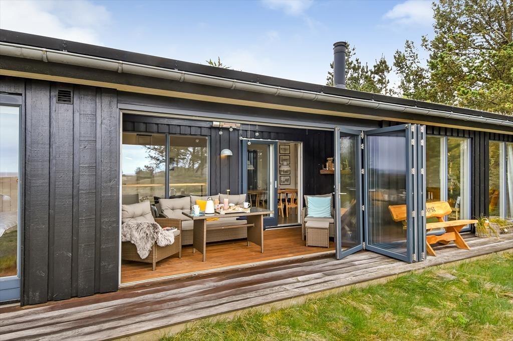 Når du holder sommerhusferie ved Hemmet Strand, er det oplagt at fylde dagene med badeture, lystfiskeri, surfing og andre udendørs aktiviteter. Men lige præcis her på Grævlingevej 24 er det nu også en god idé at afsætte masser af tid til at hygge sig inden døre, for huset er særdeles lækkert indrettet, og så lokker det med den flotteste udsigt til Ringkøbing Fjord og det naturskønne område.