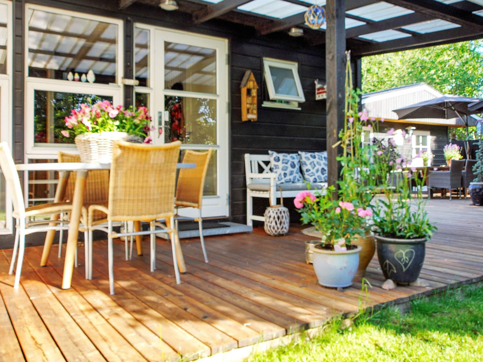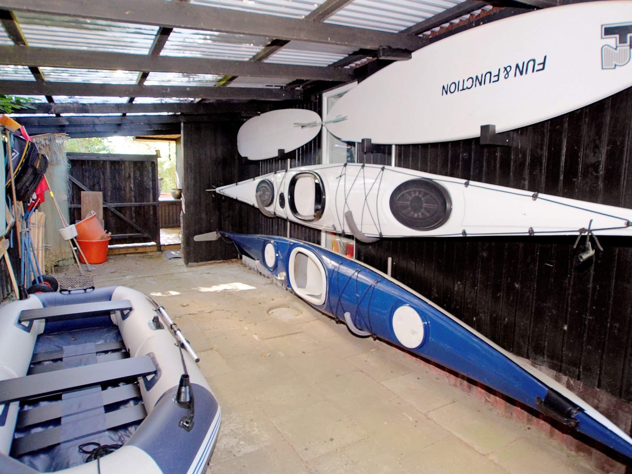 Fra stuen er der adgang til husets hjerterum – den stemningsfulde udestue – hvor man med garanti vil tilbringe mange timer i godt selskab eller med en god bog. Terrassen har desuden en udendørs bruser. To kajakker står til rådighed for gæsterne og kan benyttes frit (på eget ansvar og forsikring).