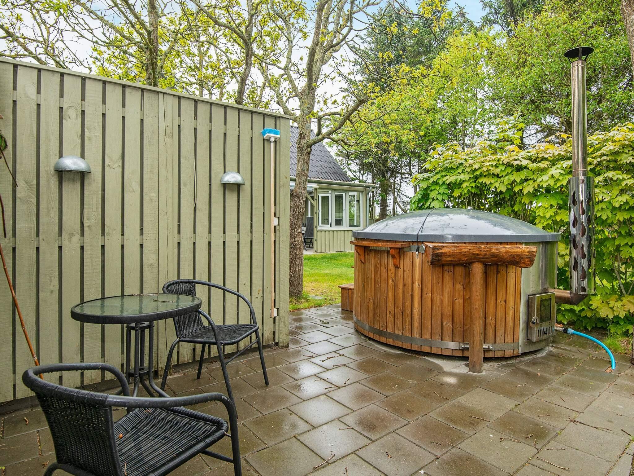 Sommerhus beliggende med uhindret panoramaudsigt henover græs-/lyngareal mod Ringkøbing Fjord. Stor naturgrund i første række til vandet med stier direkte til strandkanten. Ugeneret vildmarksbad og udendørs bruser afskærmet fra omverdenen af en trævæg. Indenfor er møblementet rigtig sommerhusagtigt, så I virkelig får lyst til at slænge jer. Opvarmes med brændeovn, luft/luft varmepumpe og el-varme. Stranden egner sig fortrinligt til badning og windsurfing. Tæt på sommerhuset løber cykelstien (del af Fjordstien), som går mellem Bundsbæk Mølle og Vikingelandsbyen Bork Vikingehavn. Udlejes ikke til ungdomsgrupper.