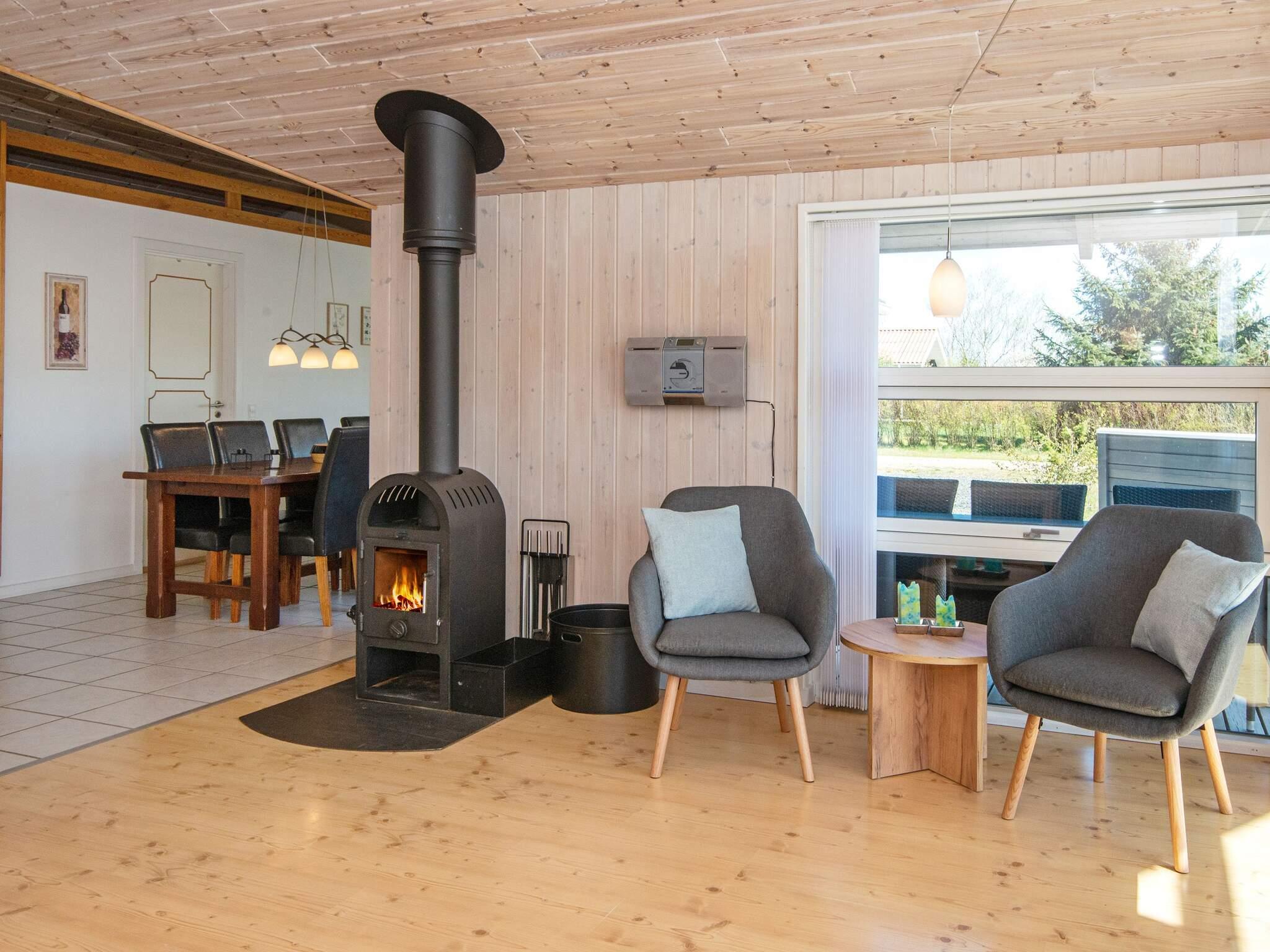1 Opholdsstue: Brændeovn, tv, kabel-tv, høj stol