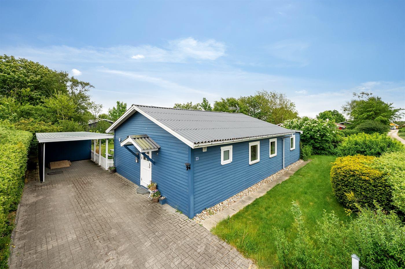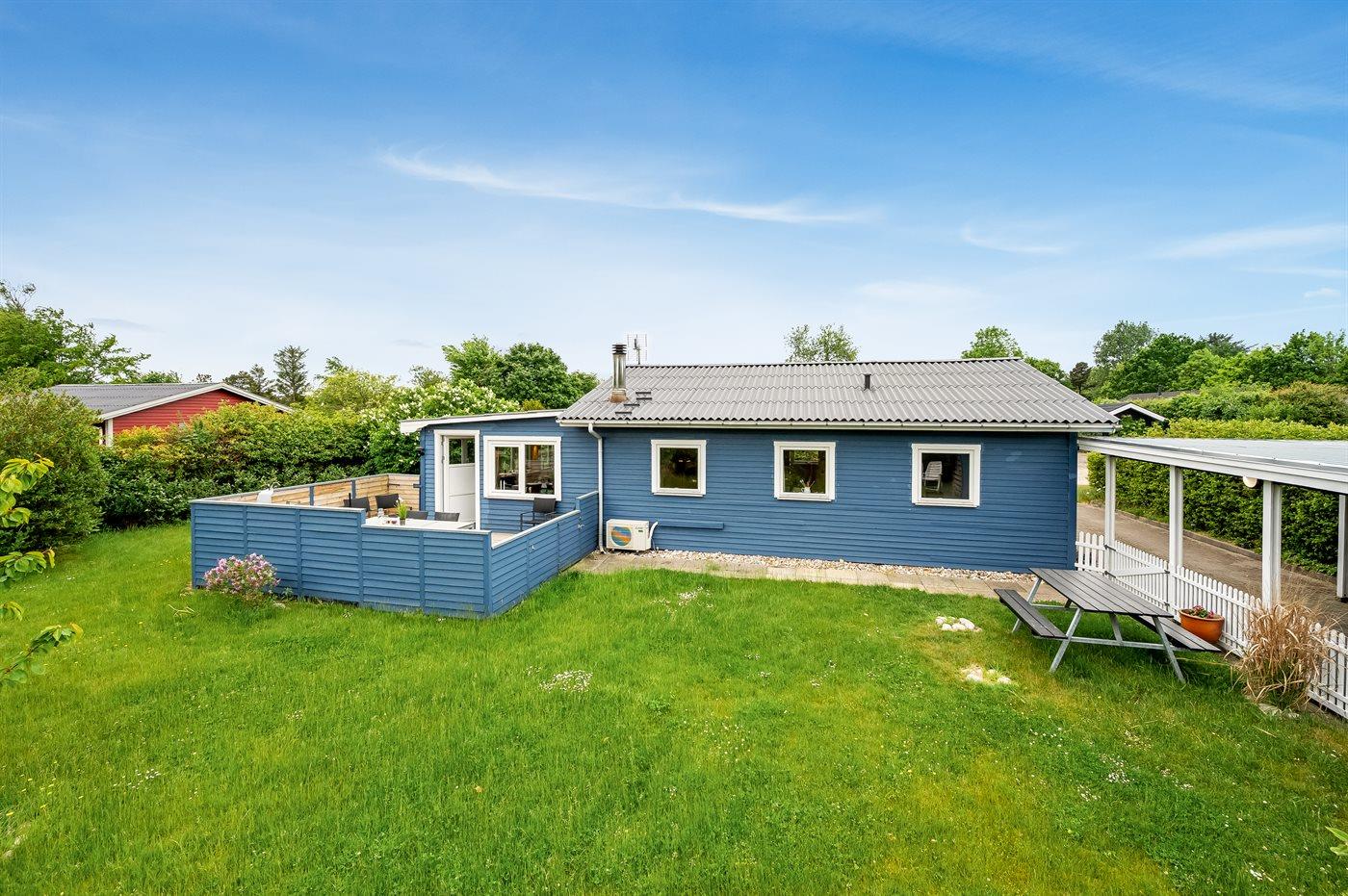 Ferieboligen er beliggende på en 900 m² stor naturgrund. Der er 11800 m til havet. Der er 650 m til fjorden. Nærmeste forretning er beliggende i en afstand af 4000 m. Til ferieboligen hører 15 m² terrasseareal. Desuden er der 30 m² overdækket terrasse. Ligeledes er der adgang til udestue. Der er redskabsrum. Bålsted. Der er carport til rådighed. Parkering ved ferieboligen.