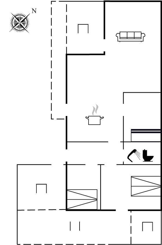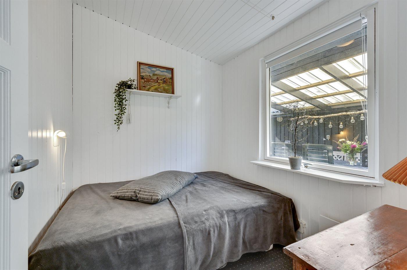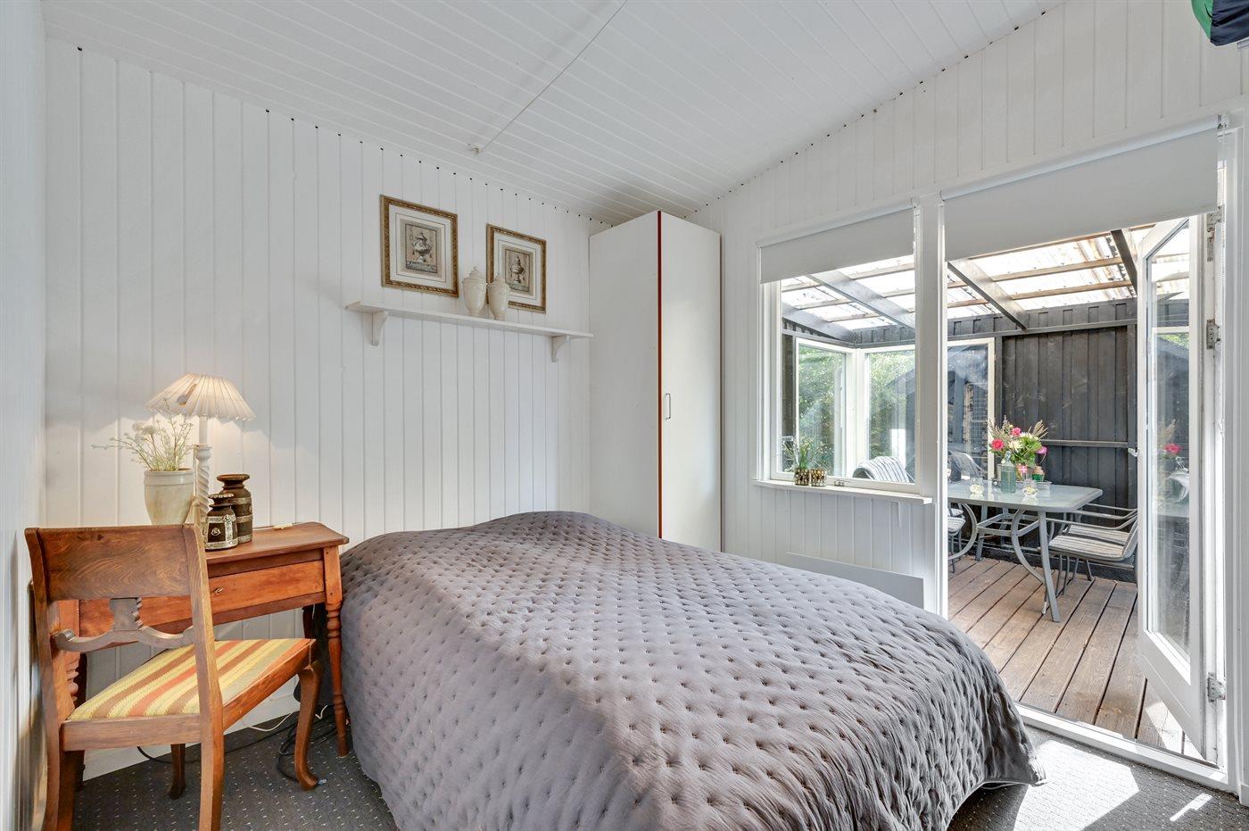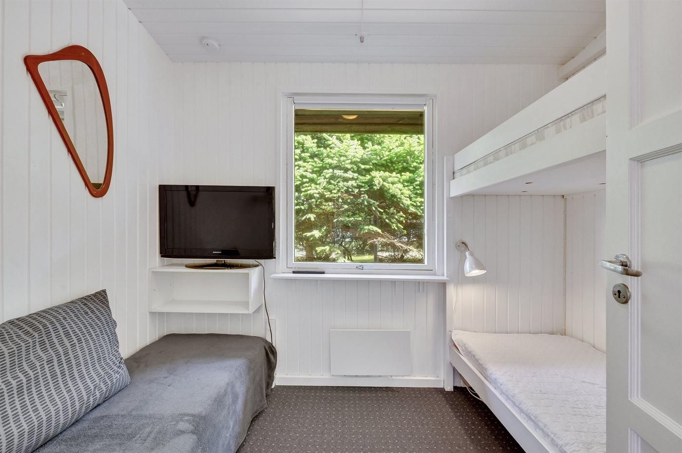 Der er i alt 3 soveværelser. Sovepladserne fordeler sig på: 4 sovepladser i dobbeltsenge. 2 sovepladser i køjeseng. Derudover er der 1 stk. barneseng.