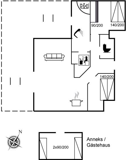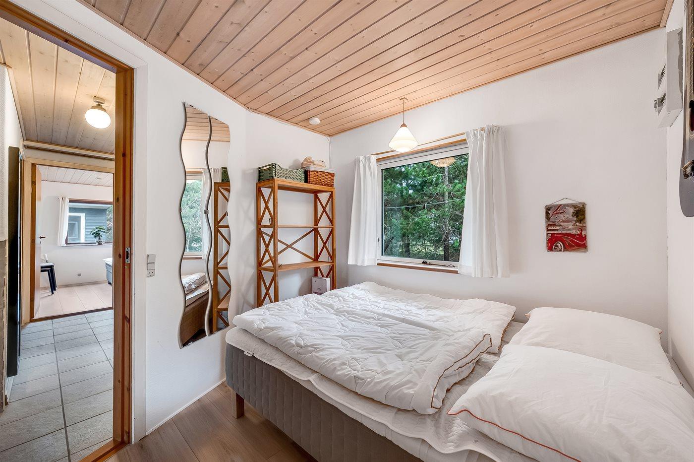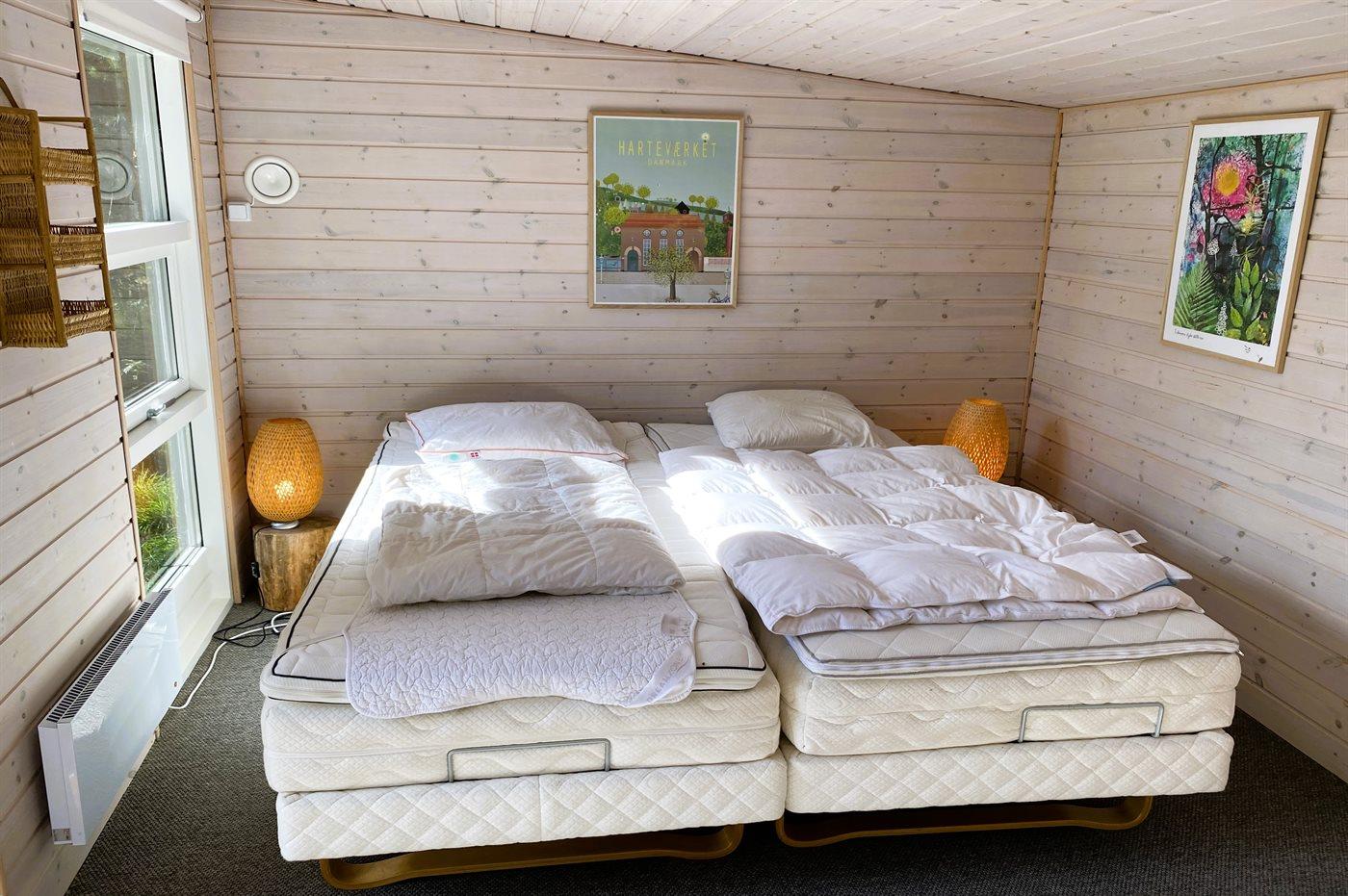 Der er i alt 3 soveværelser. Sovepladserne fordeler sig på: 4 sovepladser i dobbeltsenge. 2 sovepladser i enkeltsenge. 2 sovepladser i køjeseng. 2 af disse sovepladser befinder sig i anneks.